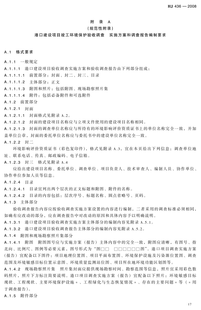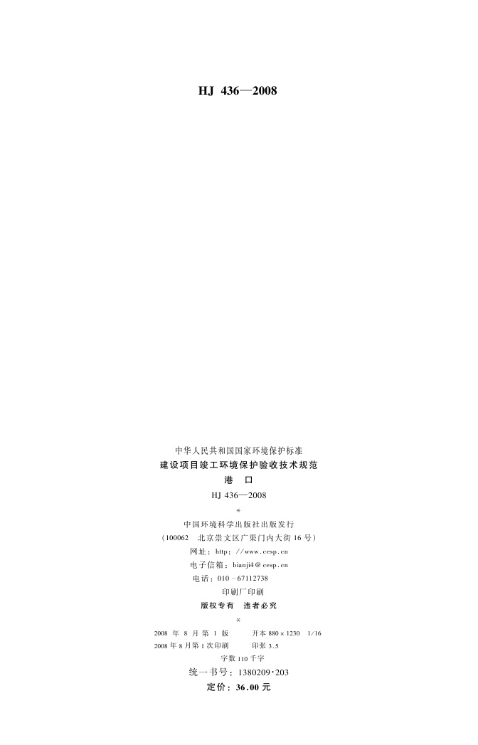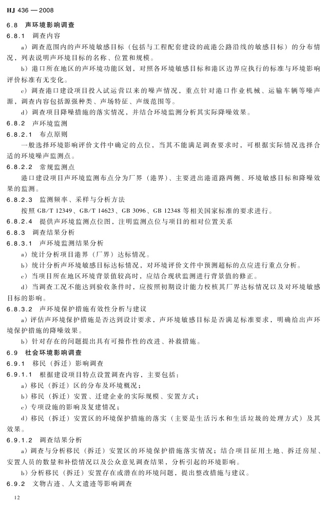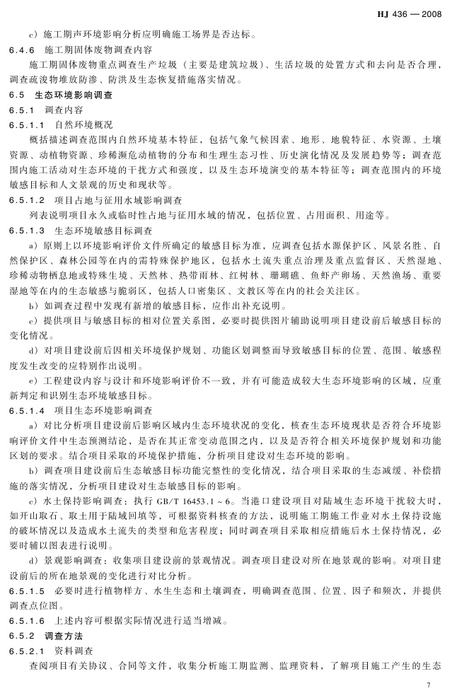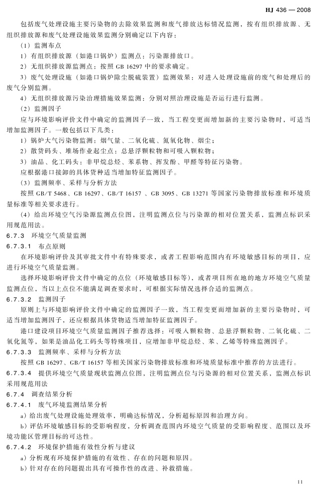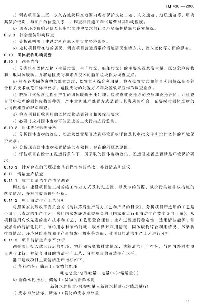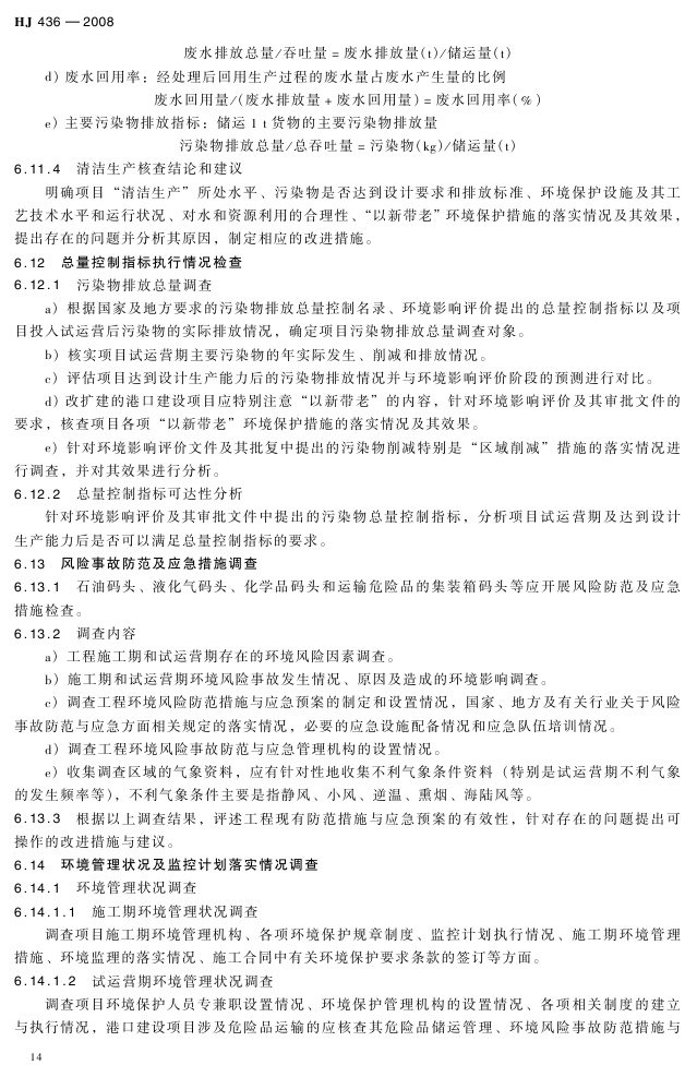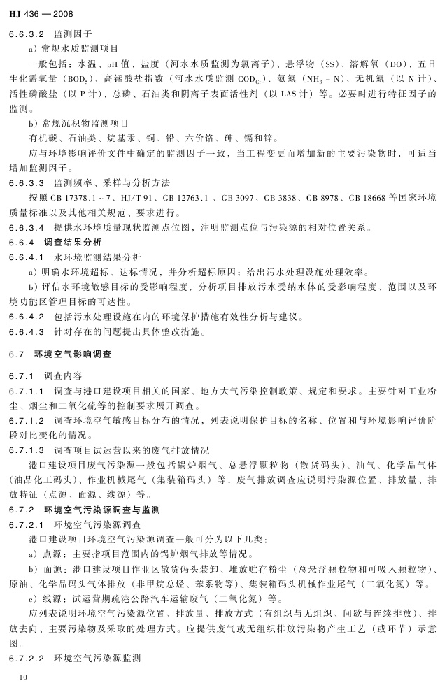 《建设项目竣工环境保护验收技术规范 港口》(HJ 436-2008)