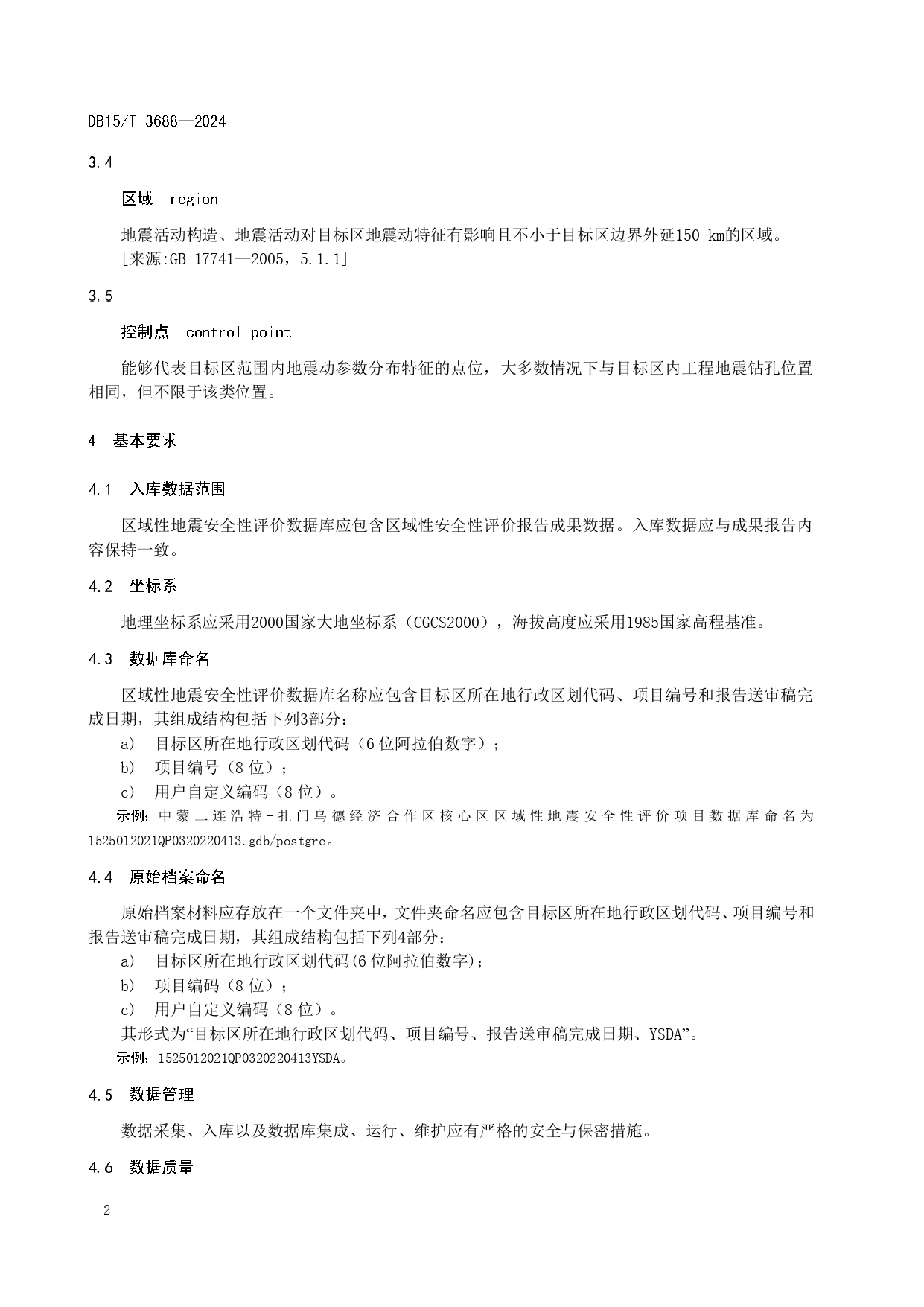 区域性地震安全性评价数据库规范DB15/T 3688—2024