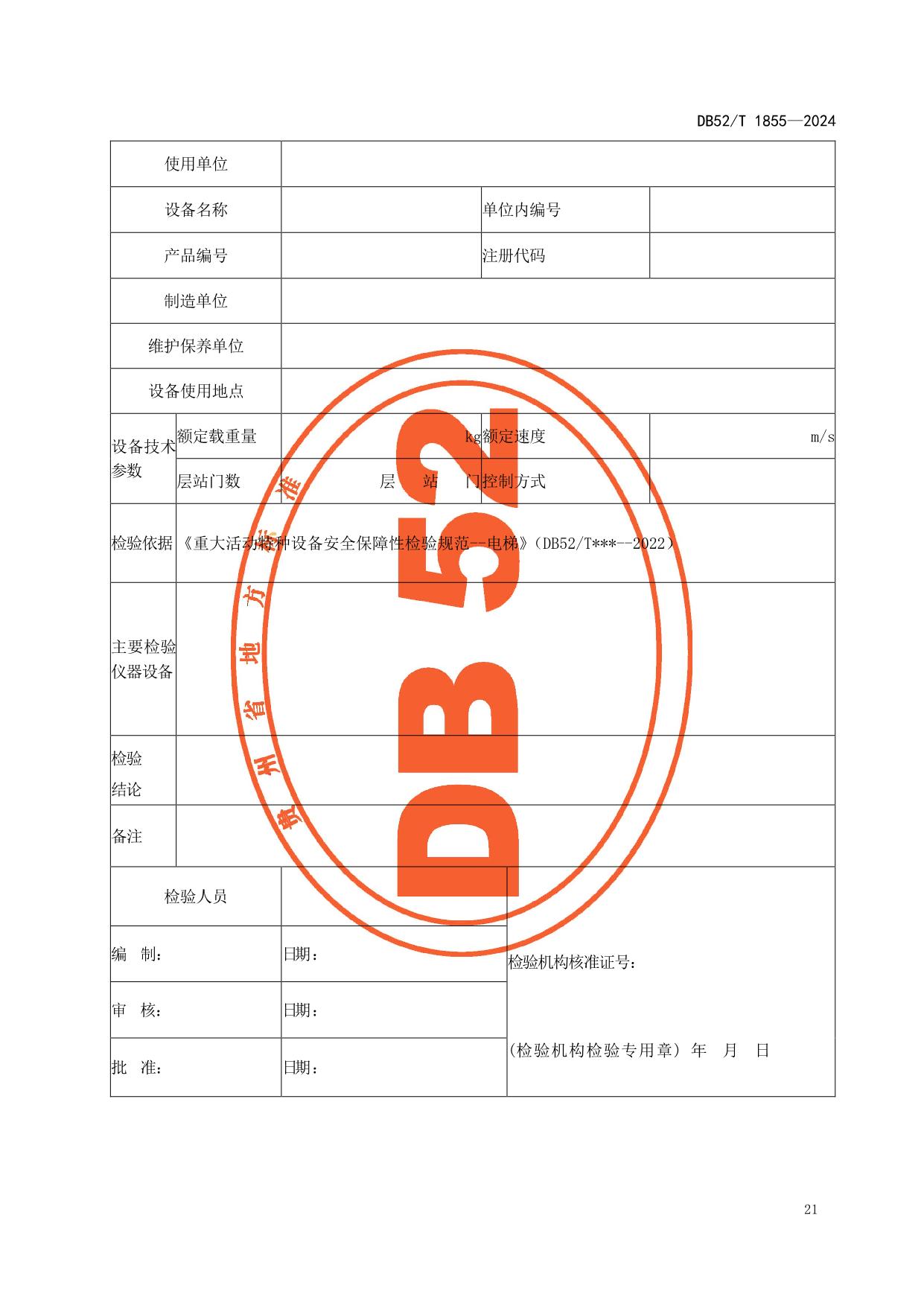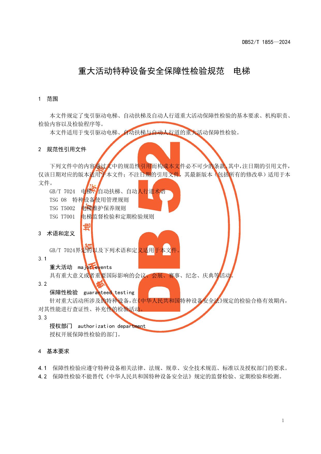 《重大活动特种设备安全保障性检验规范 电梯》(DB52/T 1855-2024)