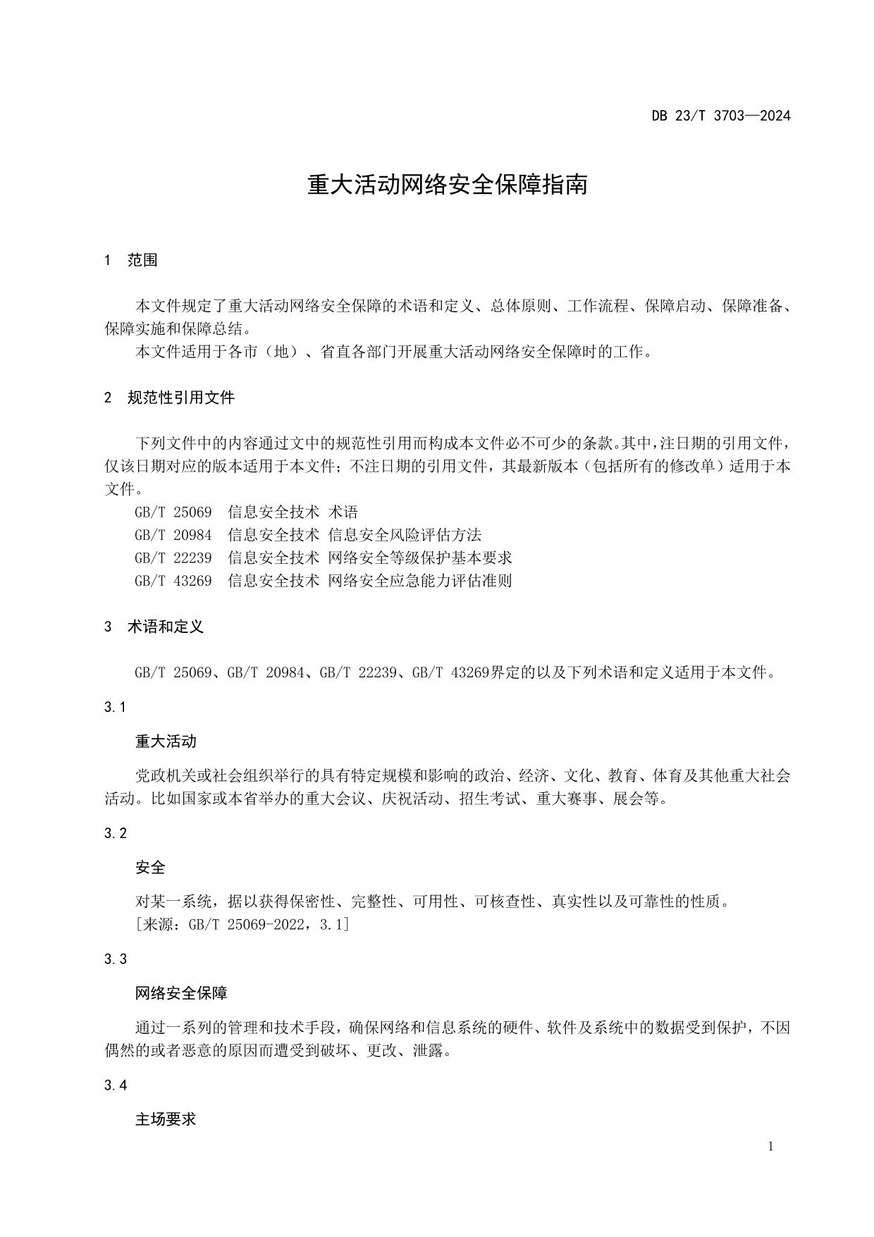 《重大活动网络安全保障指南》(DB23/T 3703—2024)
