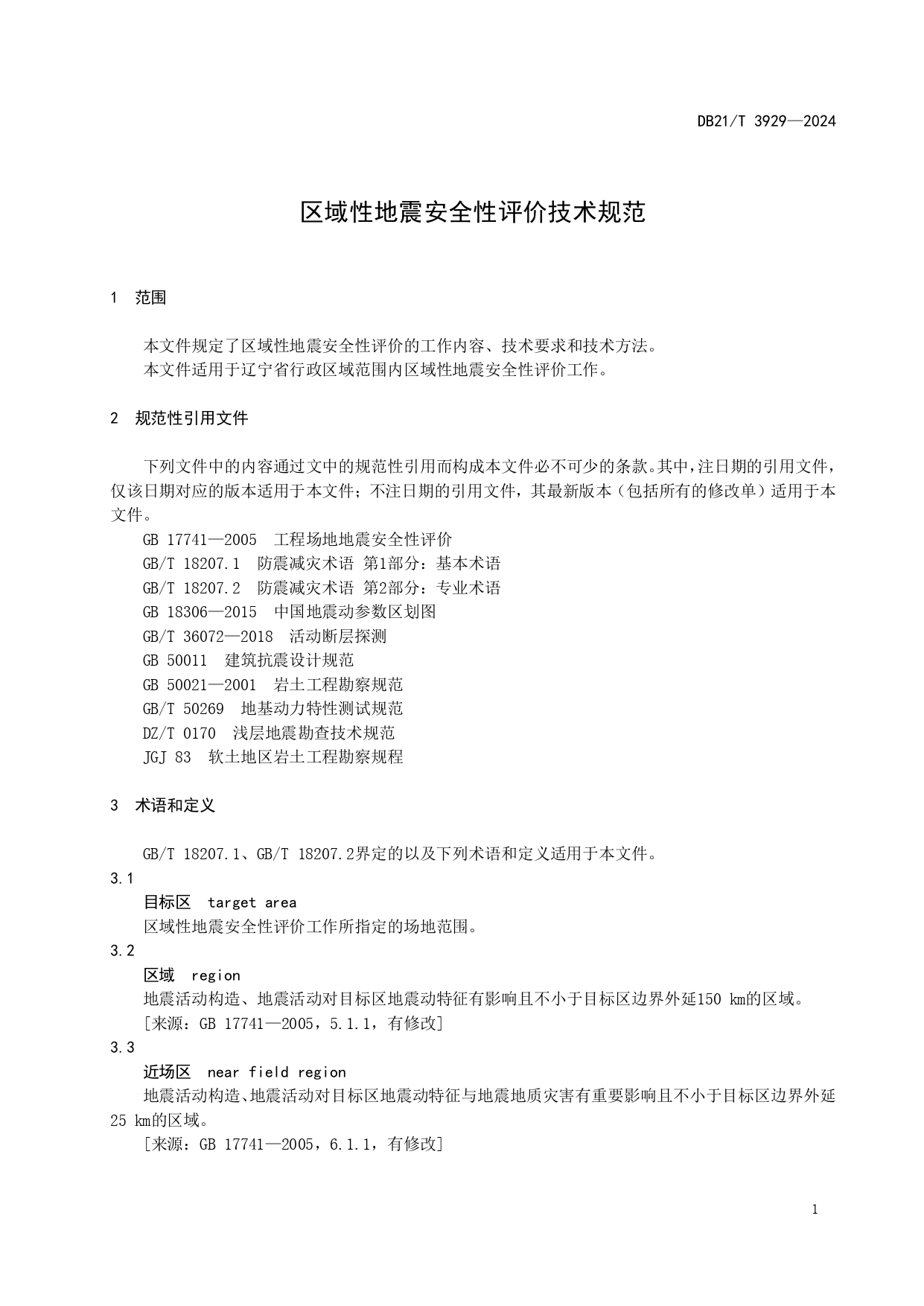 区域性地震安全性评价技术规范DB21/T 3929-2024
