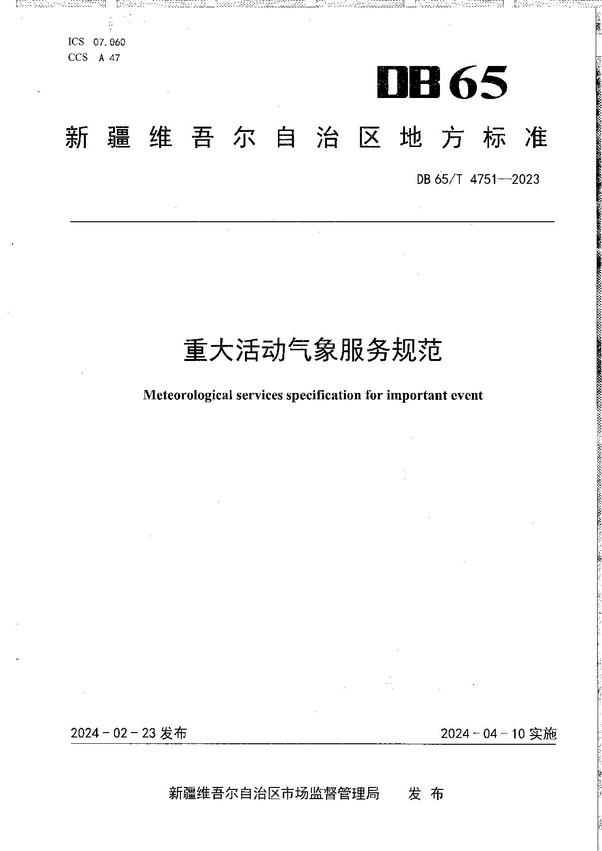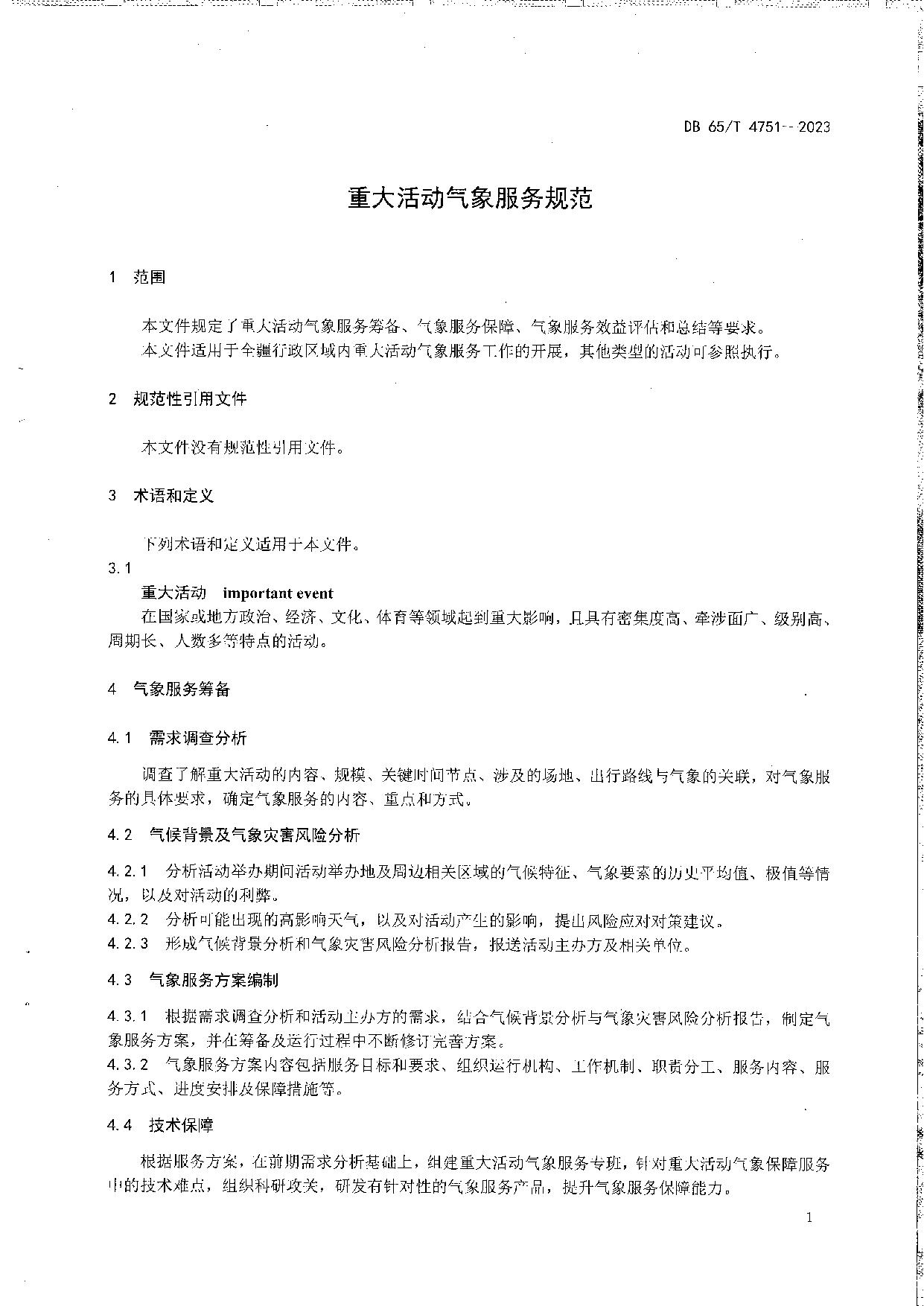 《重大活动气象服务规范》(DB65/T 4751-2023)