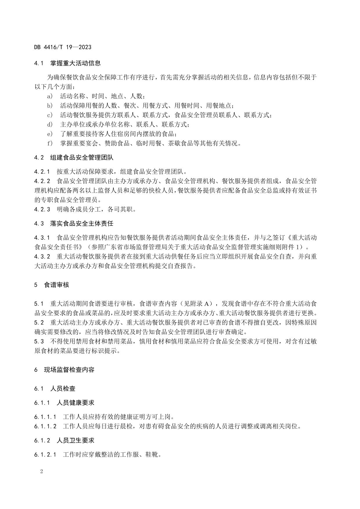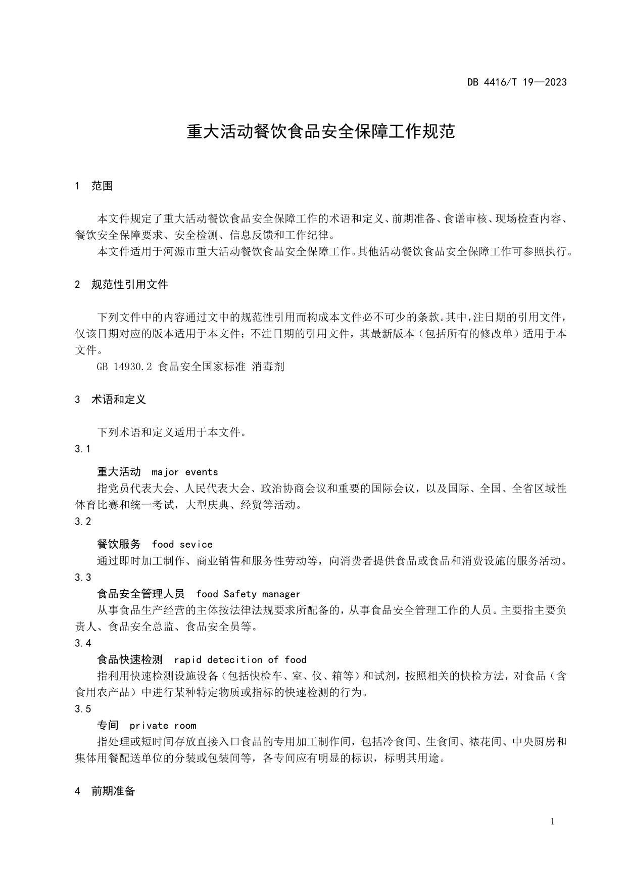《重大活动餐饮食品安全保障工作规范》(DB 4416/T 19-2023)