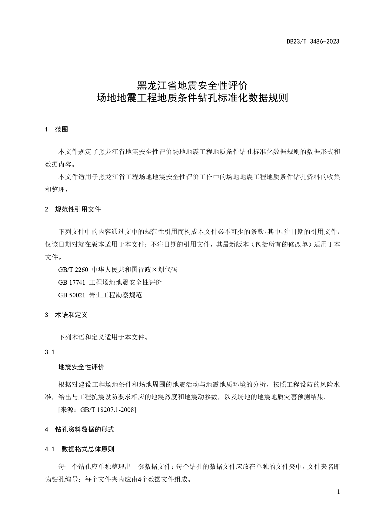 黑龙江省地震安全性评价场地地震工程地质条件钻孔标准化数据规则DB23/T 3486—2023
