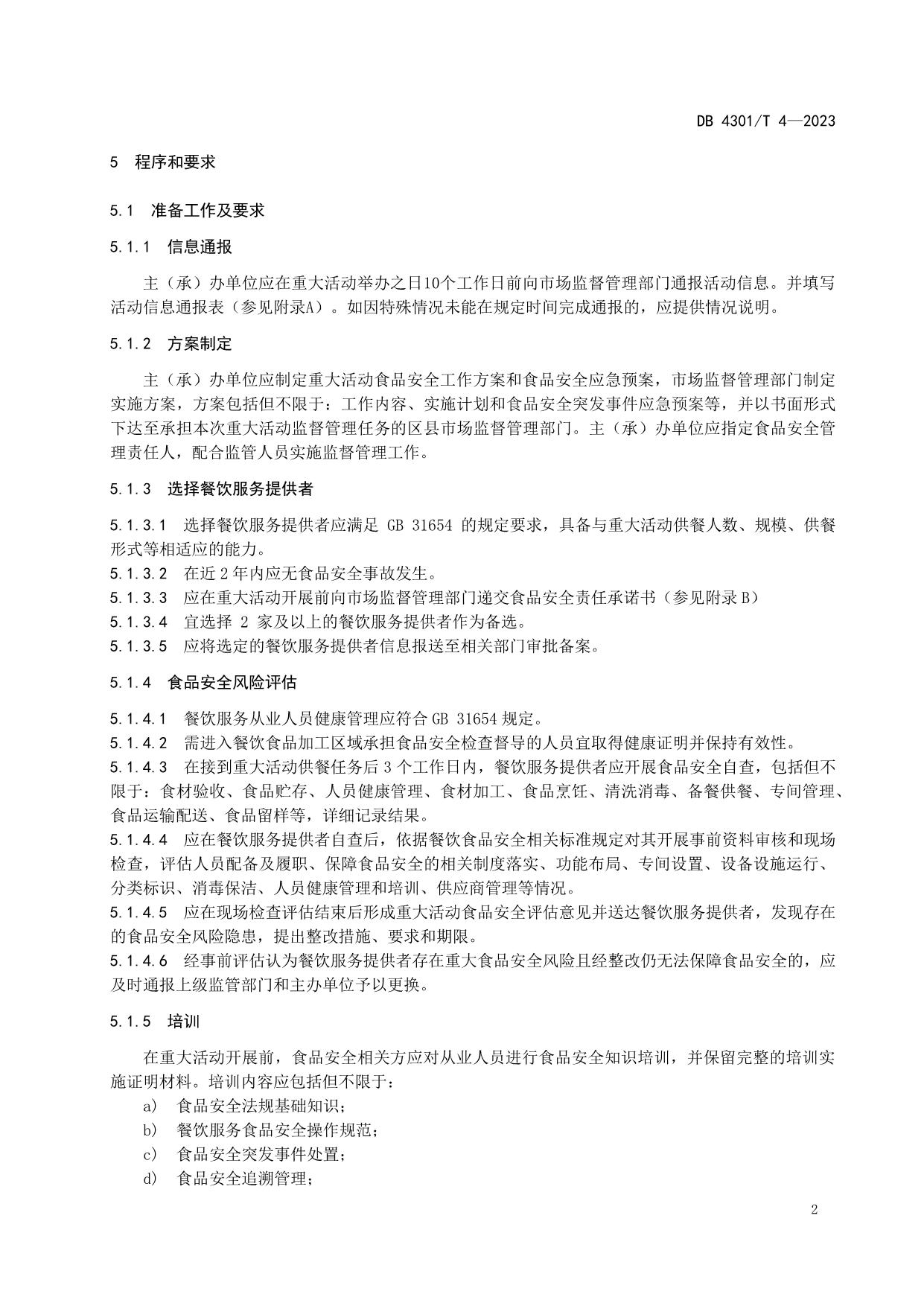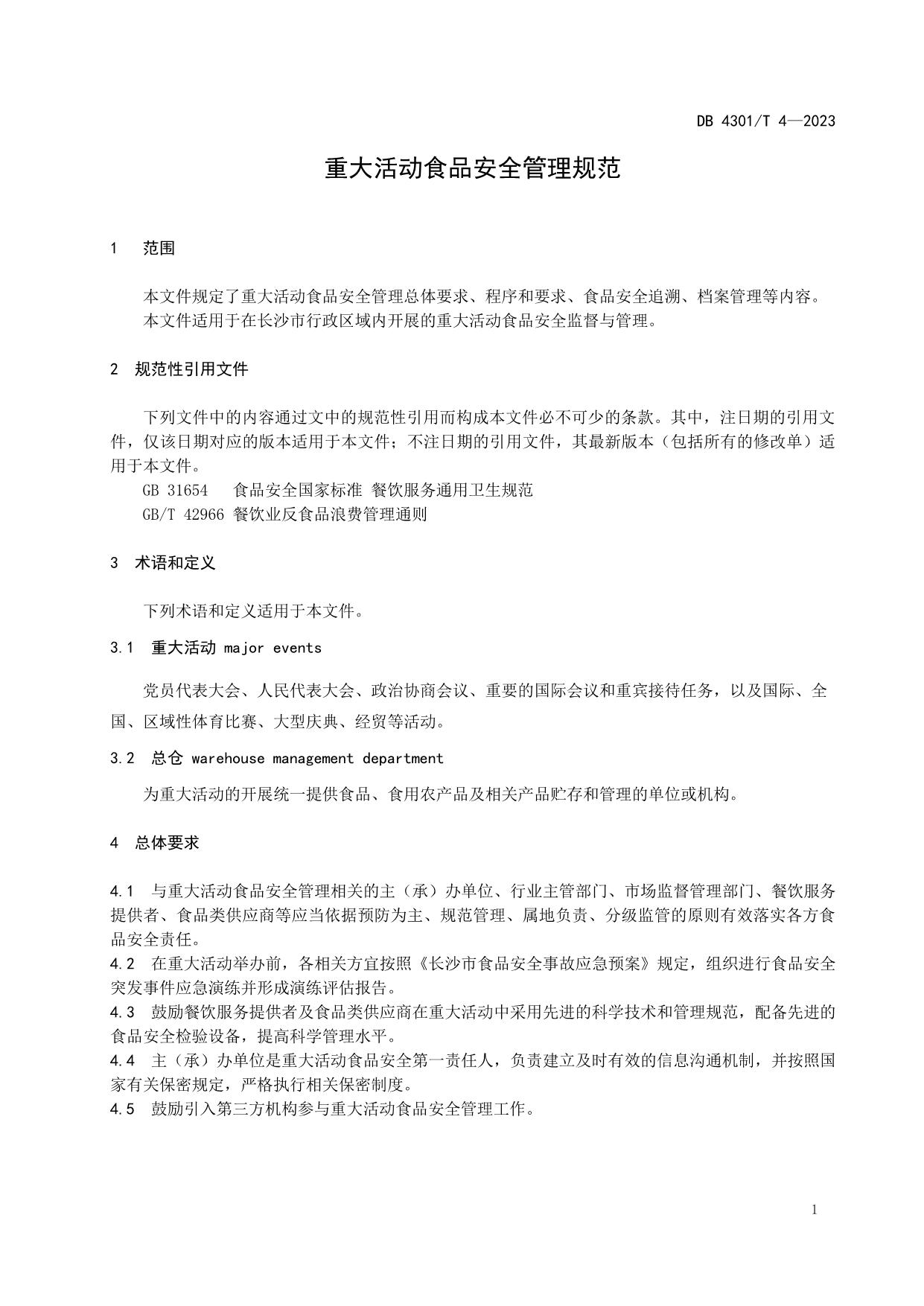 《重大活动食品安全管理规范(长沙市)》(DB4301/T 4-2023)