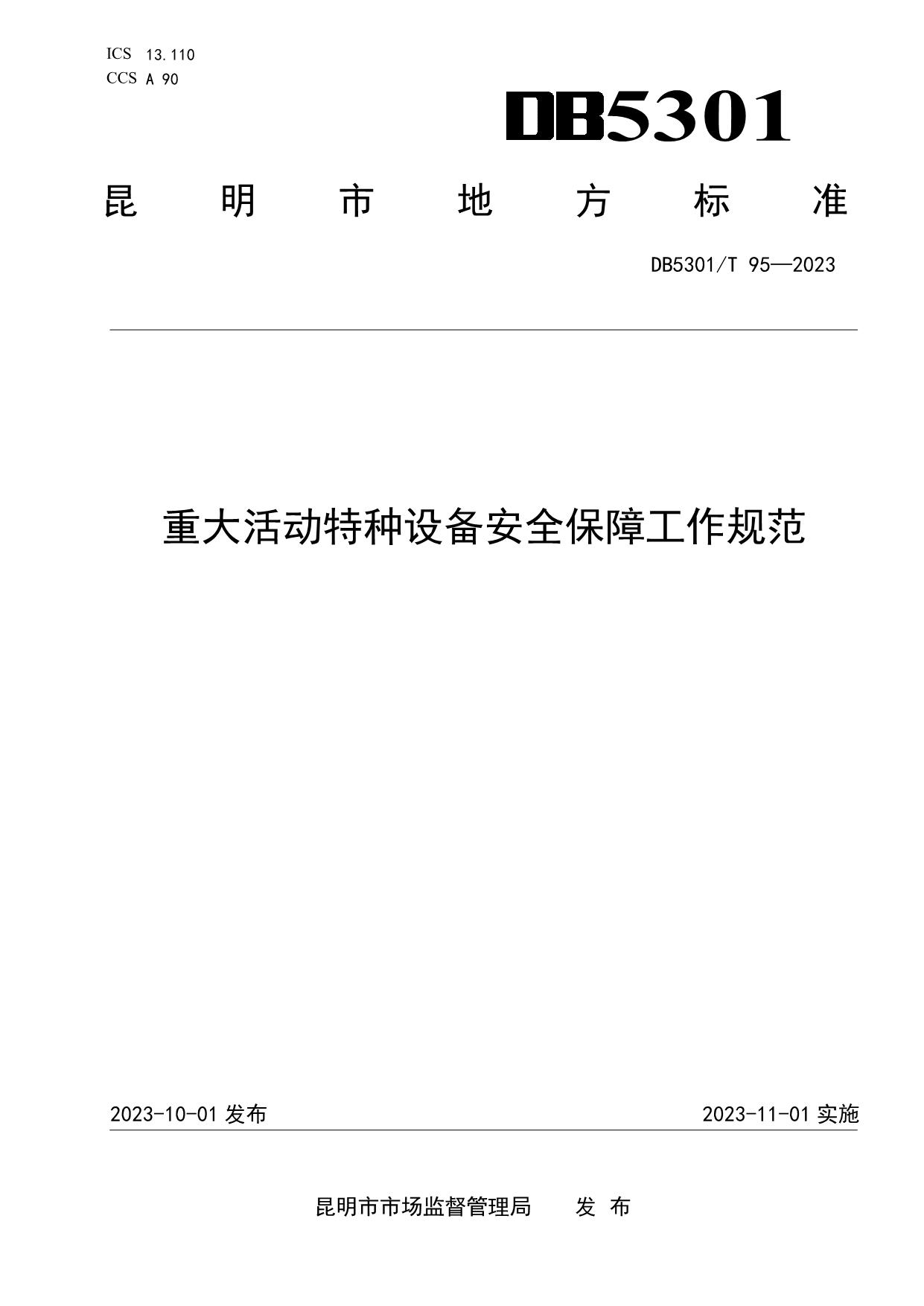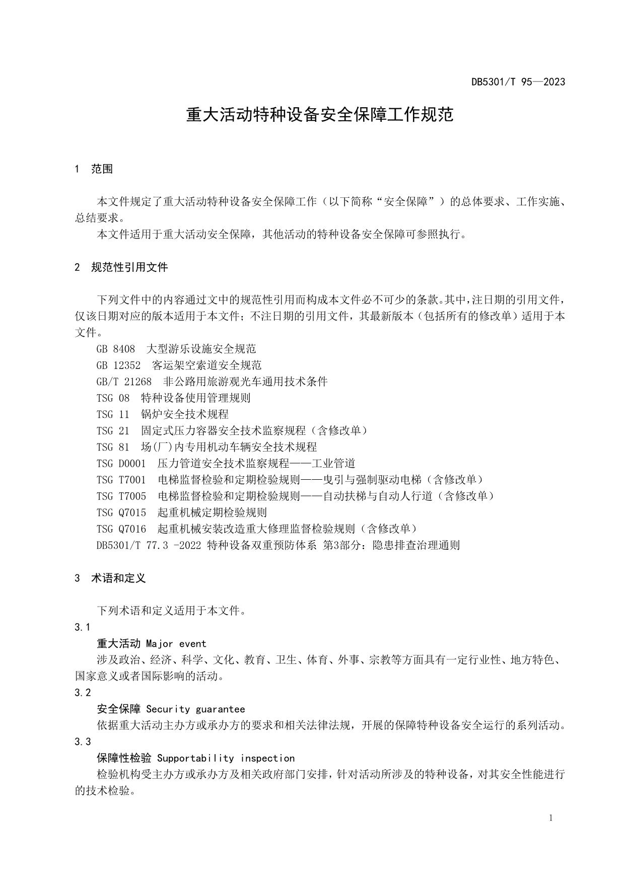 《重大活动特种设备安全保障工作规范》(DB5301/T 95-2023)