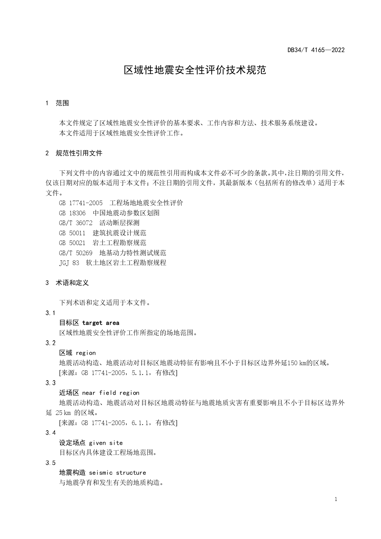 区域性地震安全性评价技术规范DB34/T 4165-2022