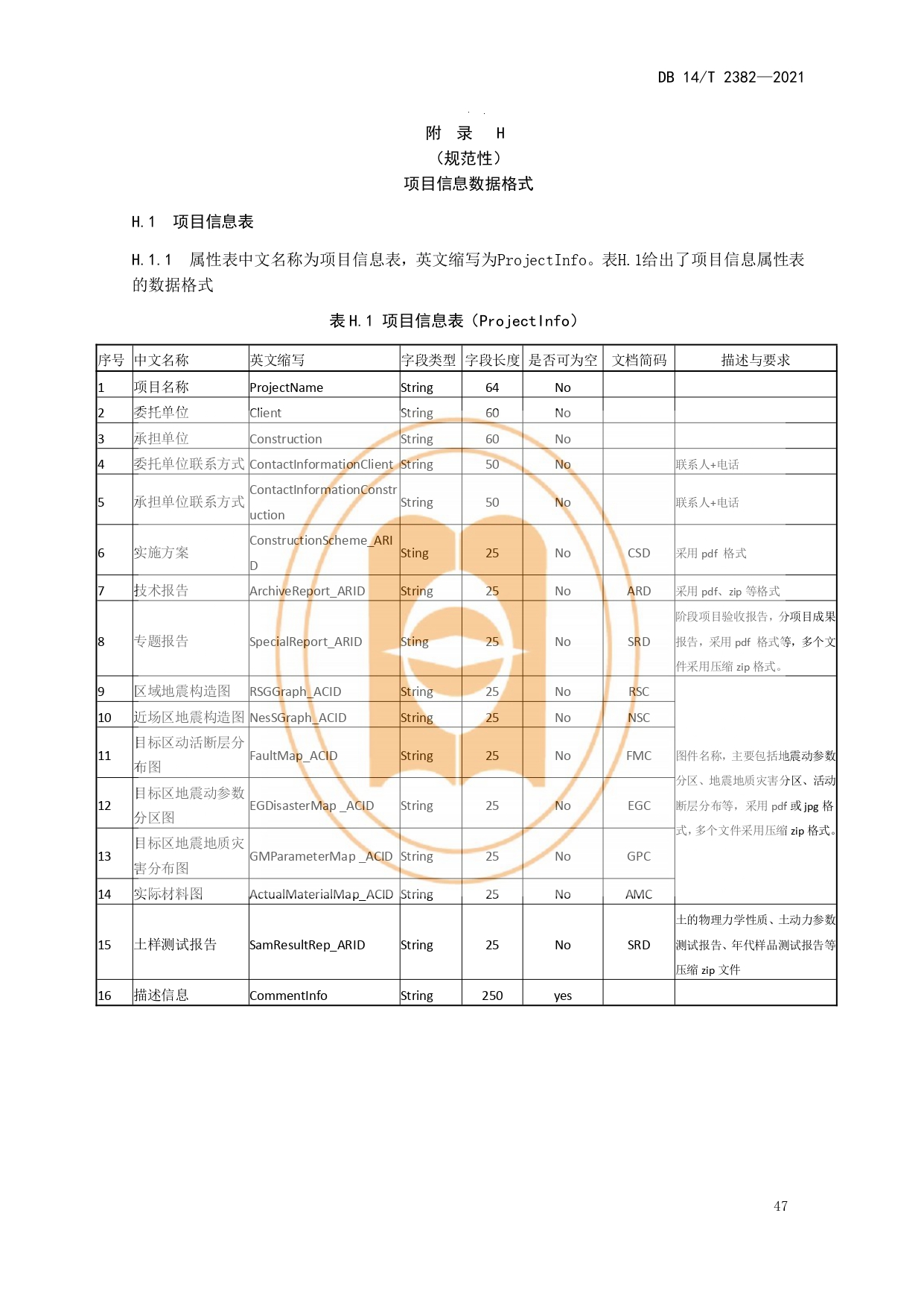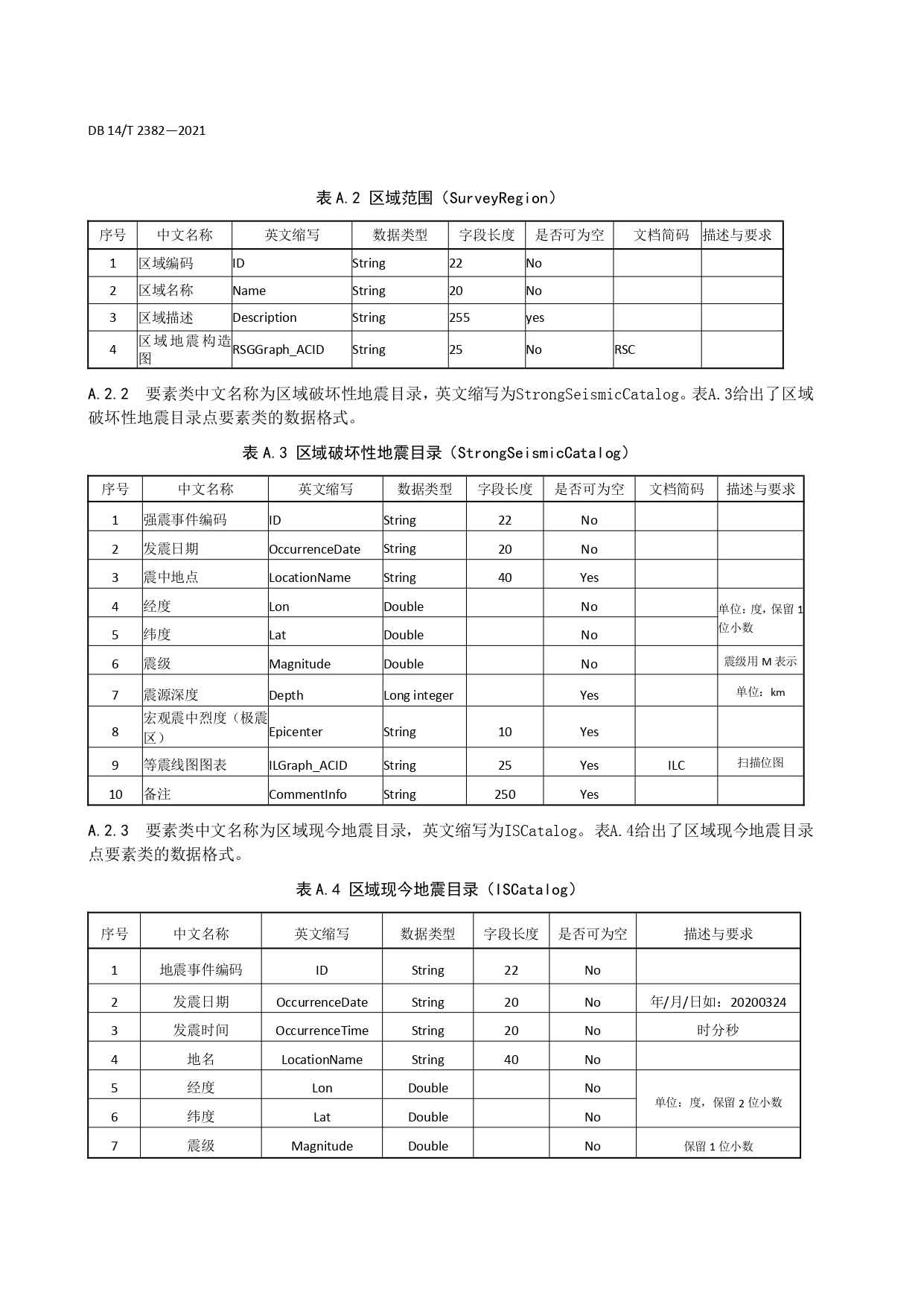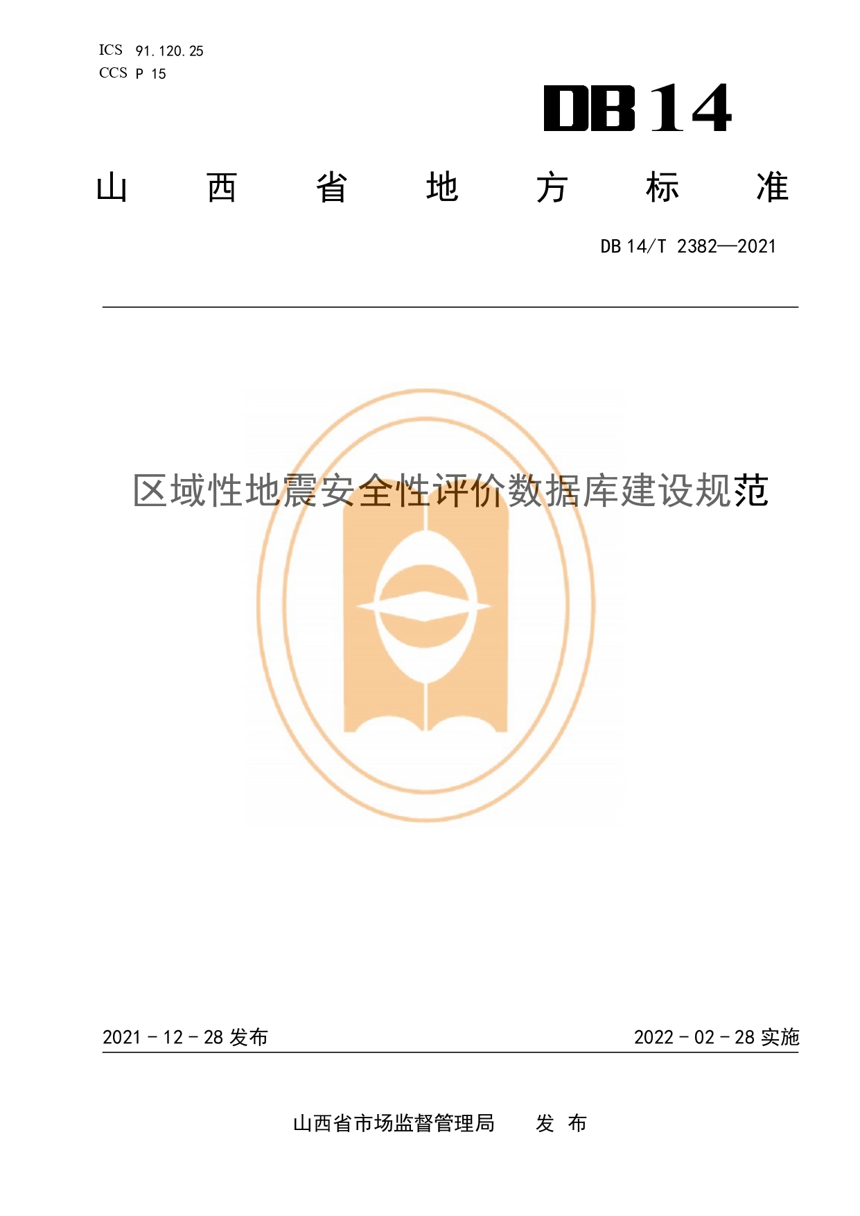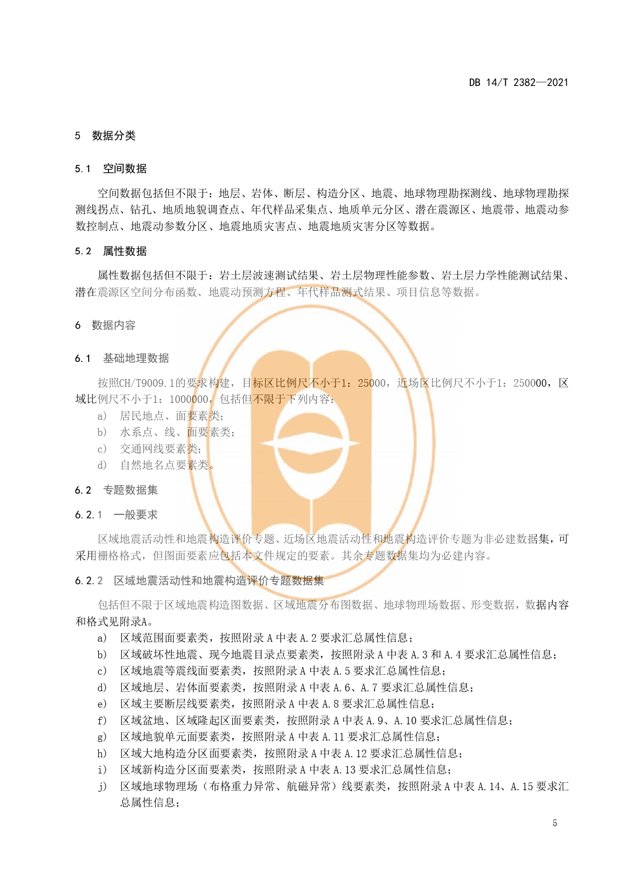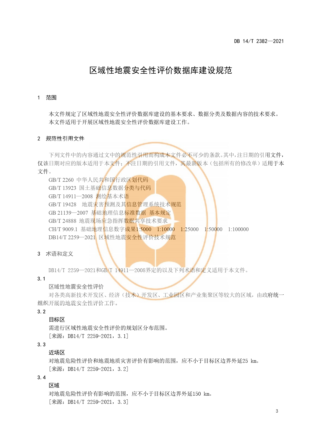 区域性地震安全性评价数据库建设规范DB14/T 2382-2021