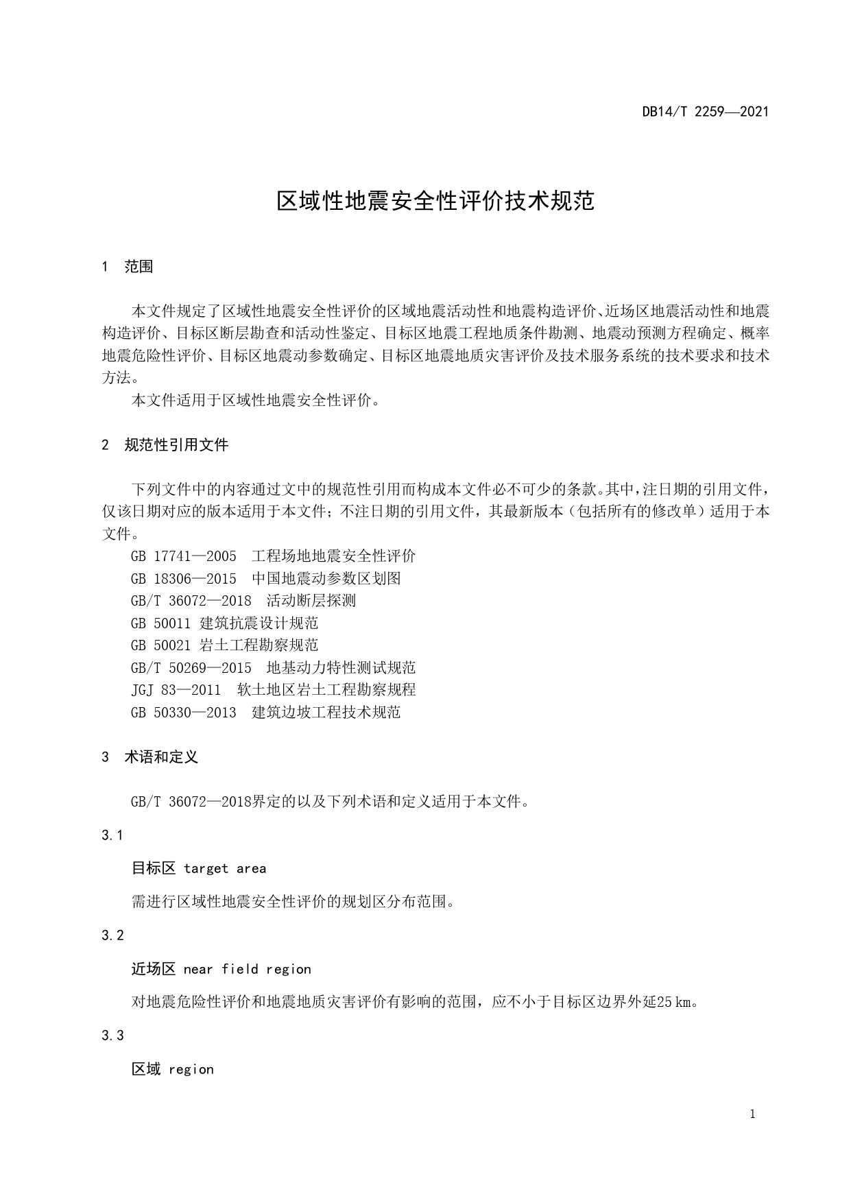 区域性地震安全性评价技术规范DB14/T 2259-2021
