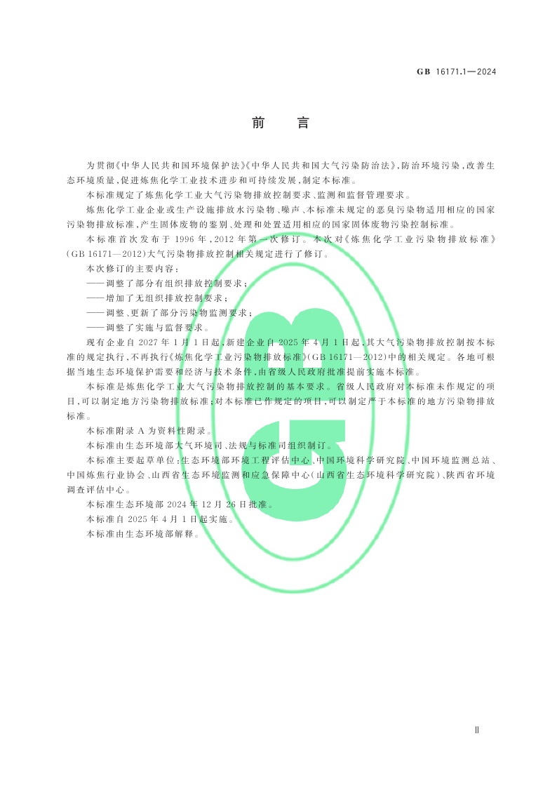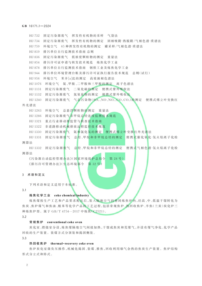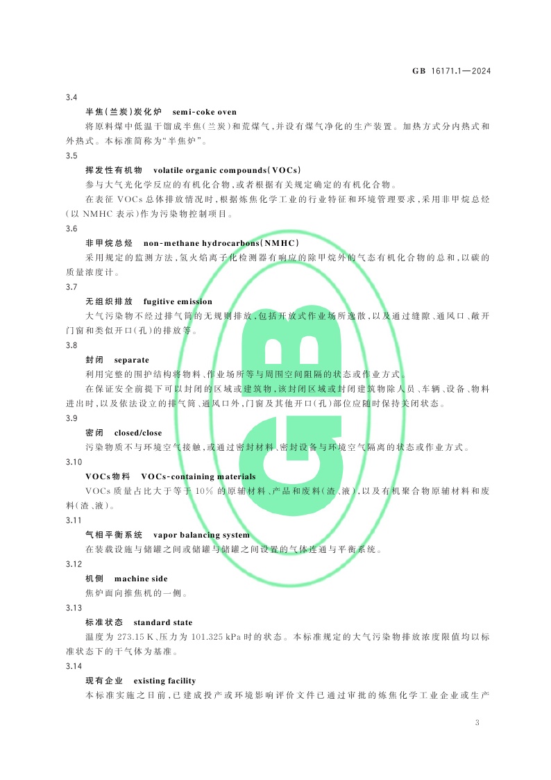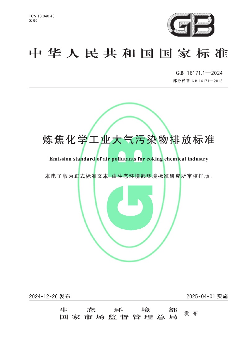 《炼焦化学工业大气污染物排放标准》(GB 16171.1-2024)