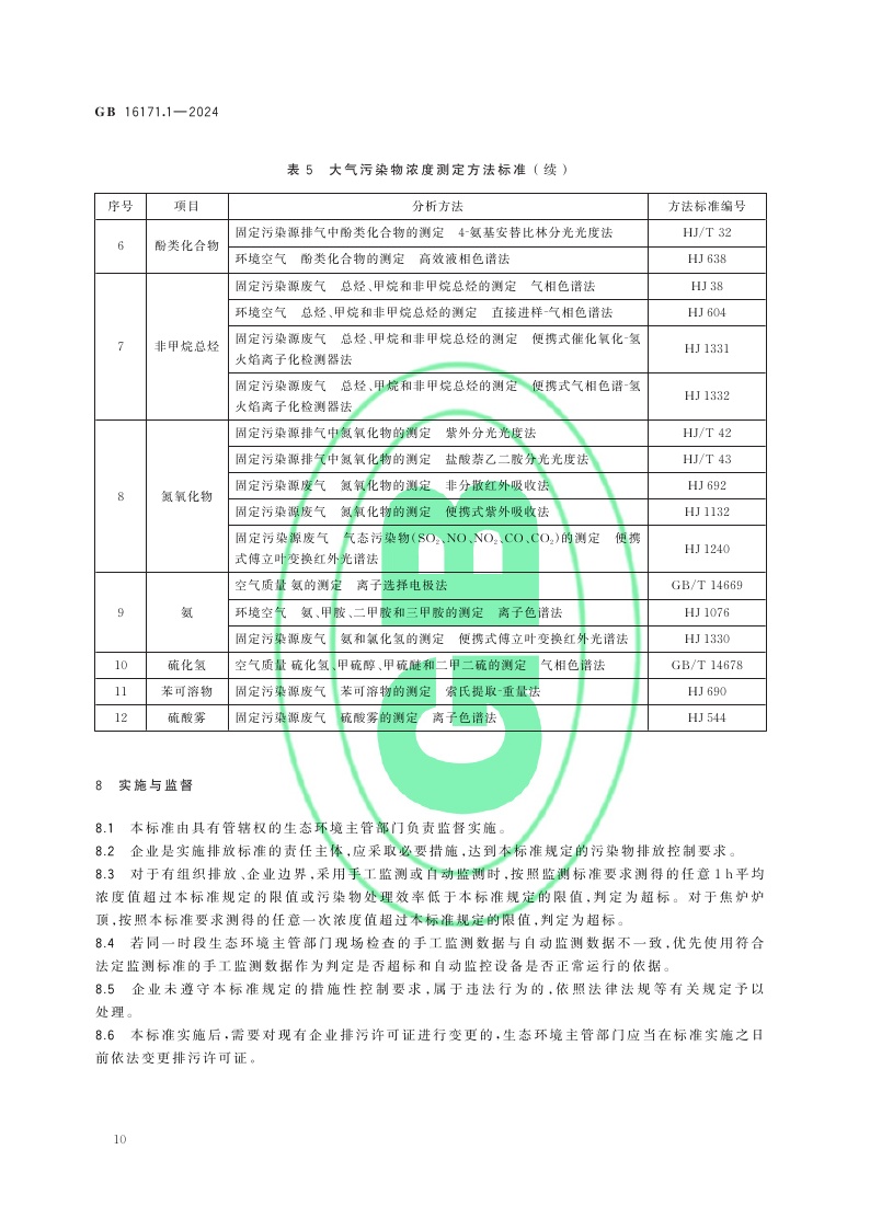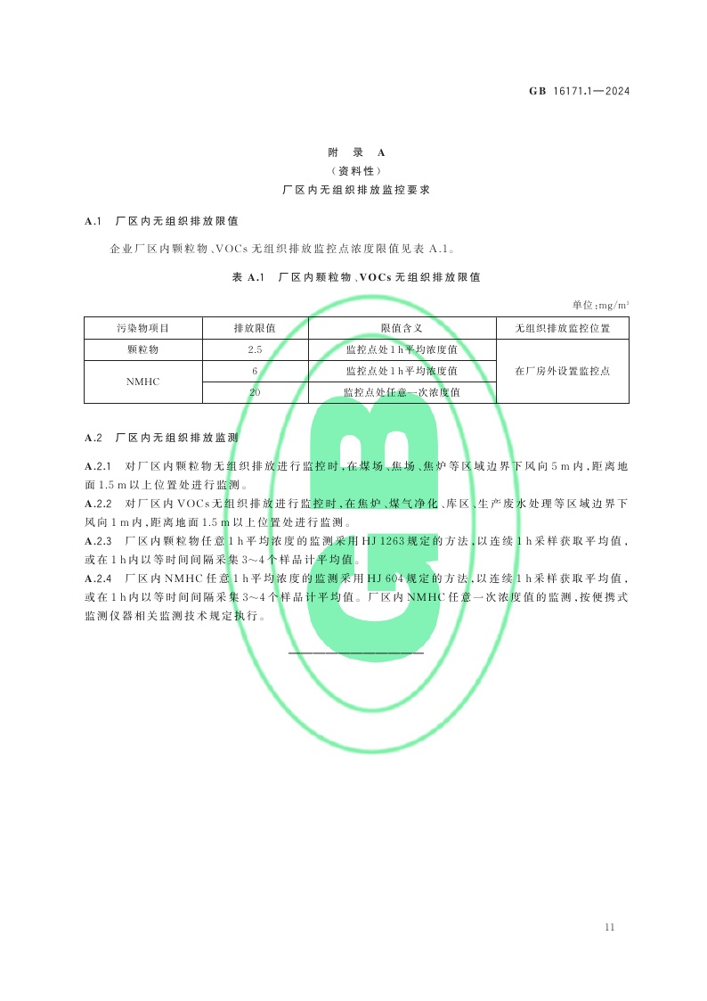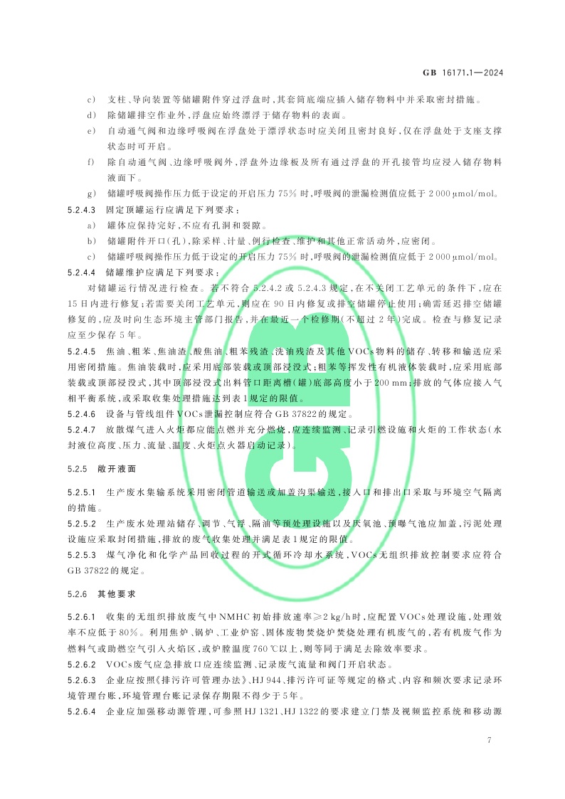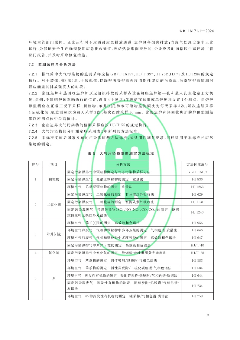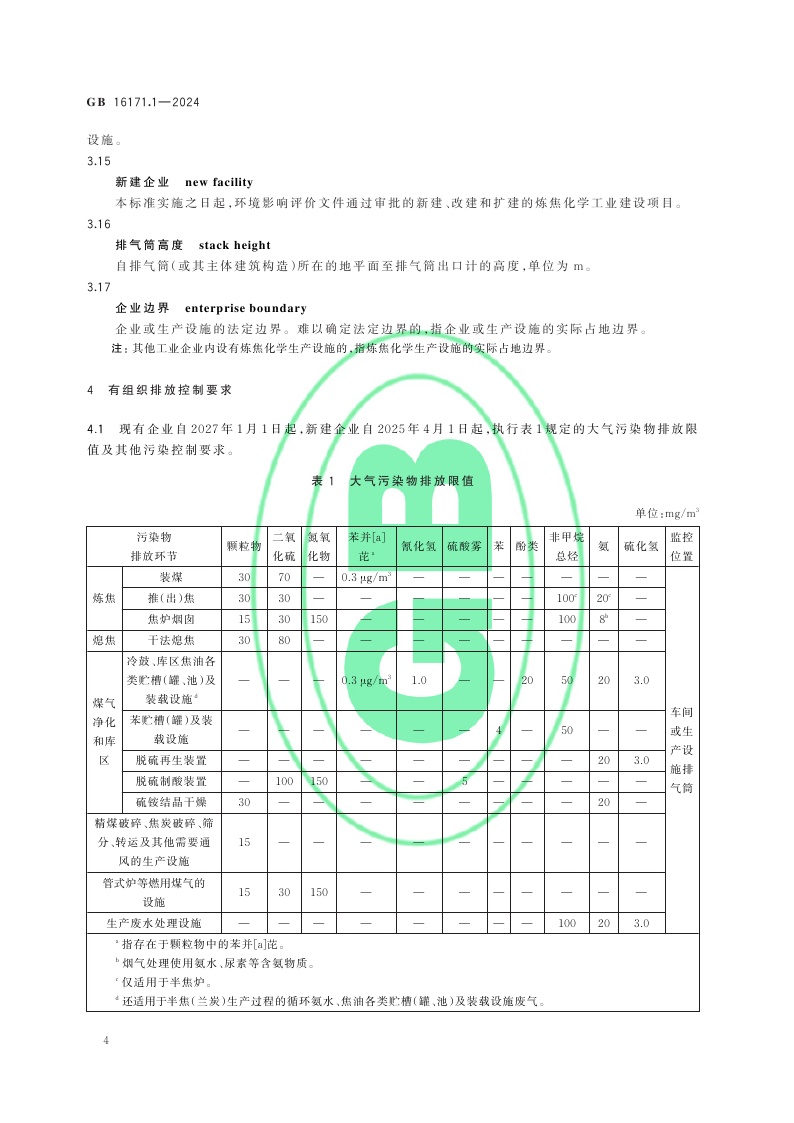 《炼焦化学工业大气污染物排放标准》(GB 16171.1-2024)