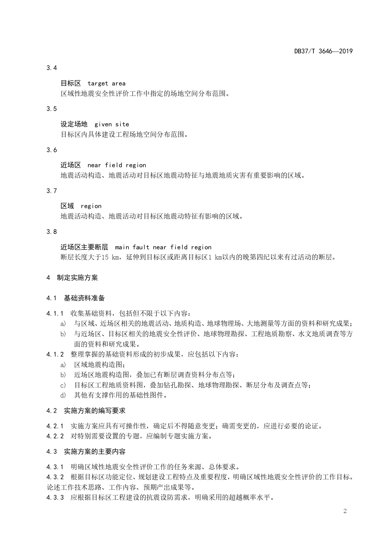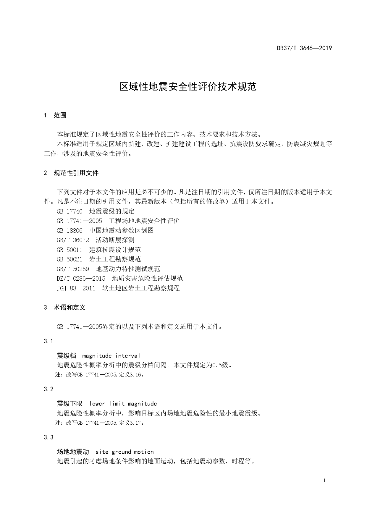 区域性地震安全性评价技术规范DB37/T 3646-2019