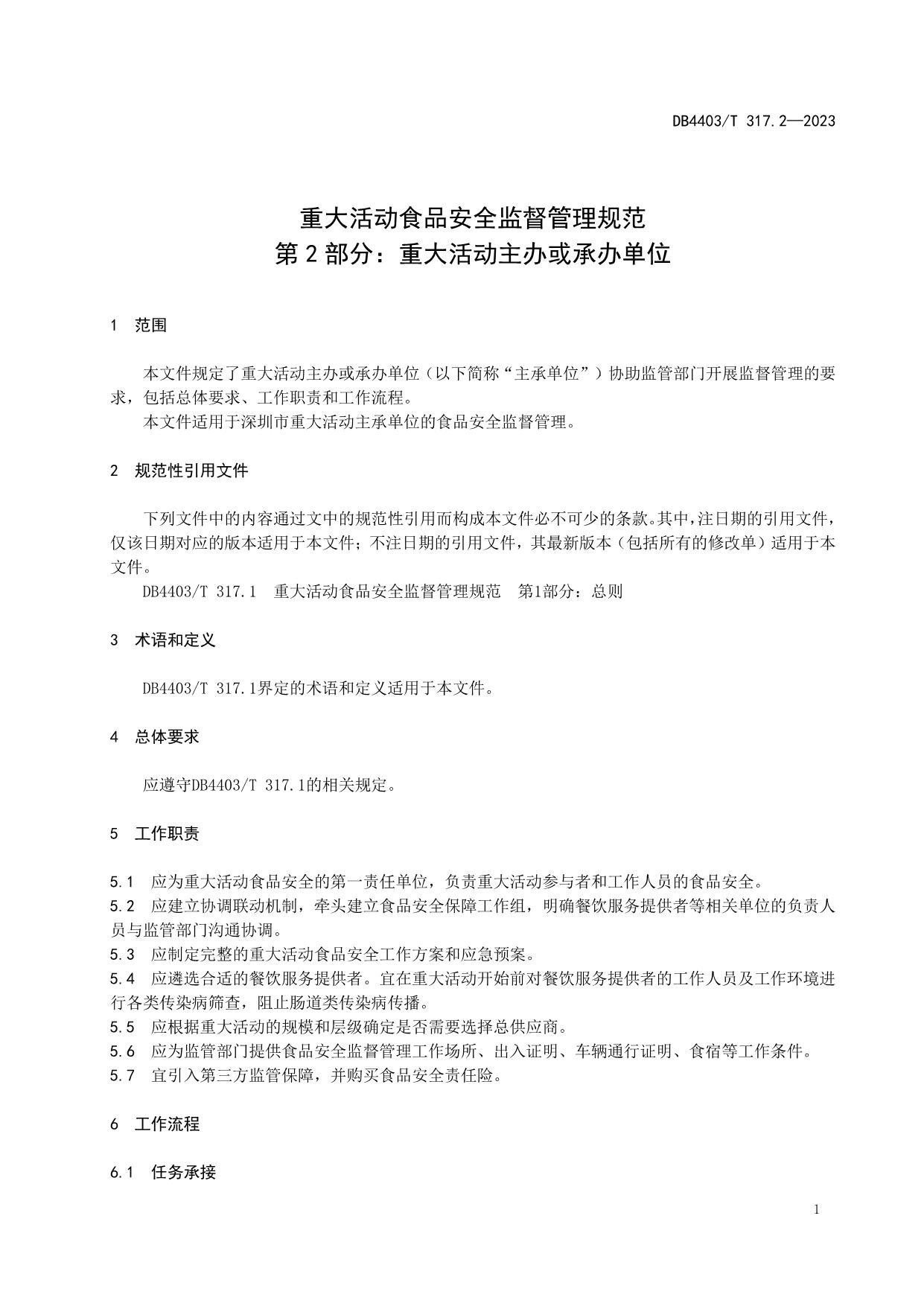 《重大活动食品安全监督管理规范 第2部分:重大活动主办或承办单位》(DB4403/T 317.2-2023)