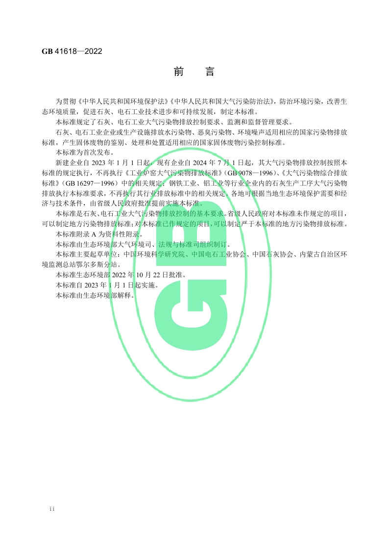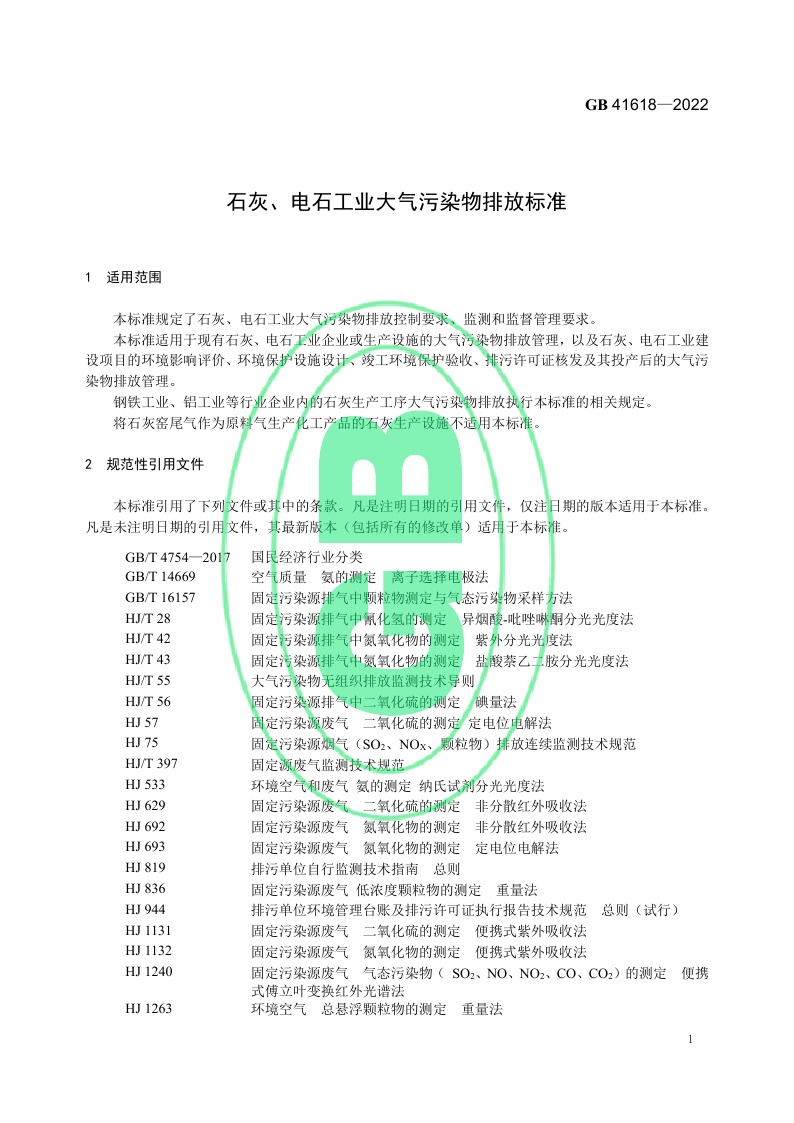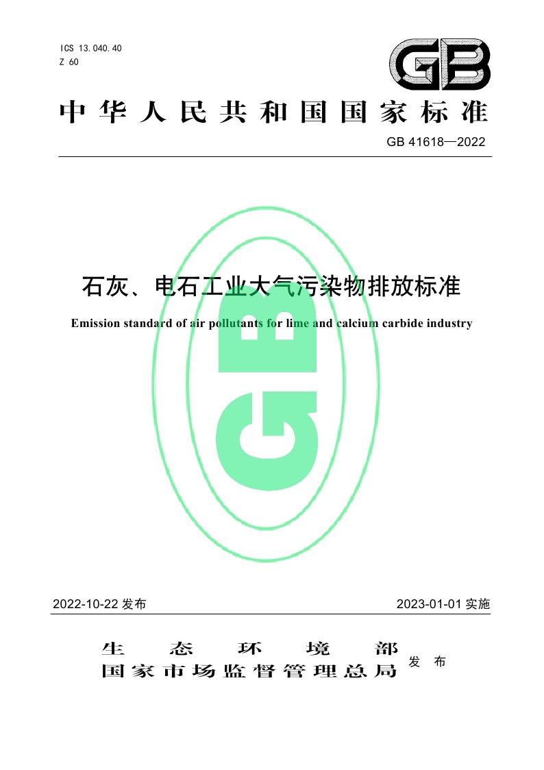 《石灰、电石工业大气污染物排放标准》(GB 41618—2022)