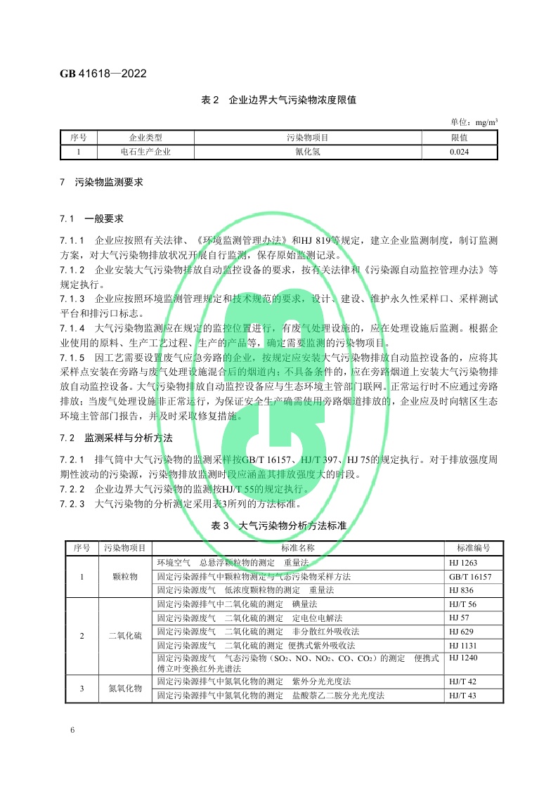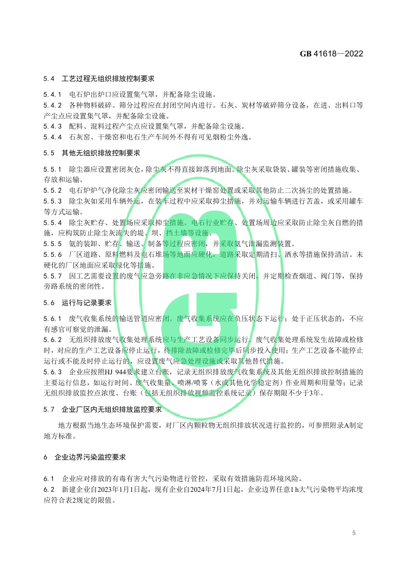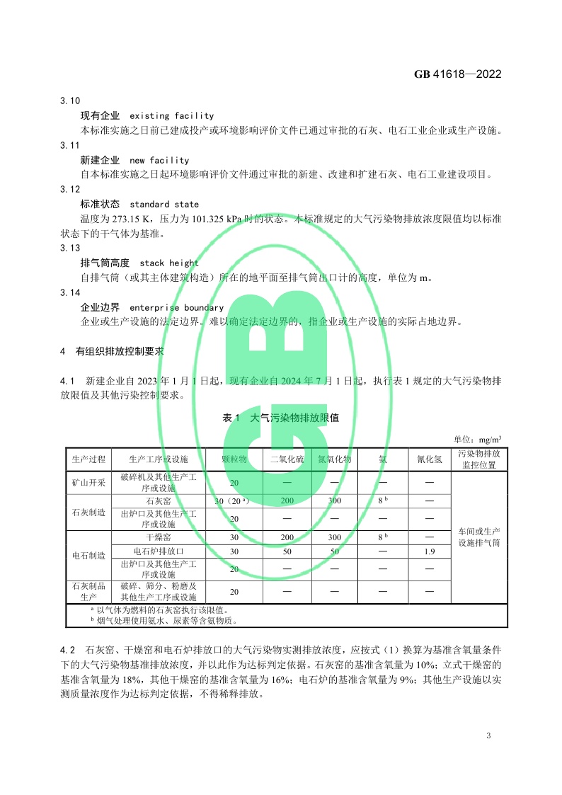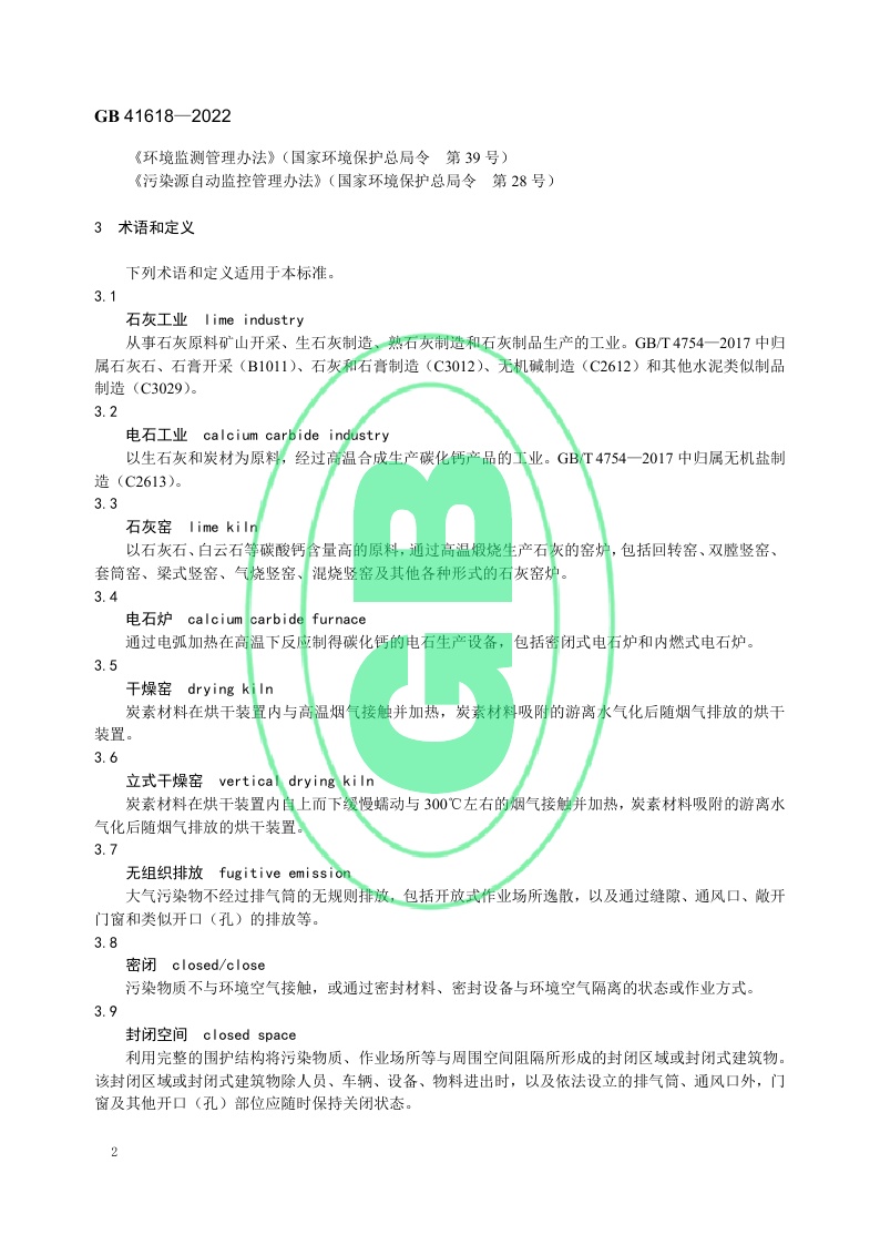 《石灰、电石工业大气污染物排放标准》(GB 41618—2022)