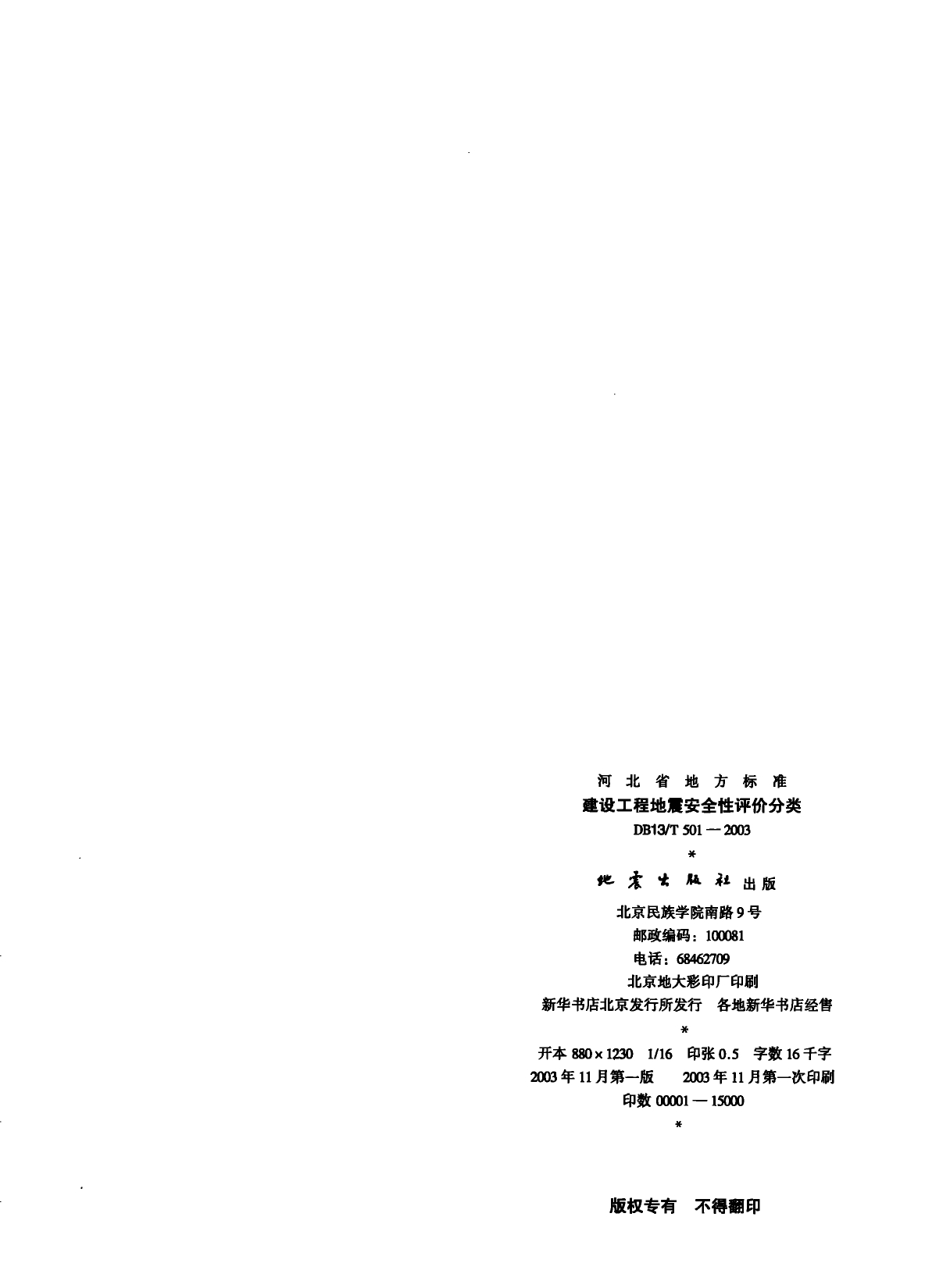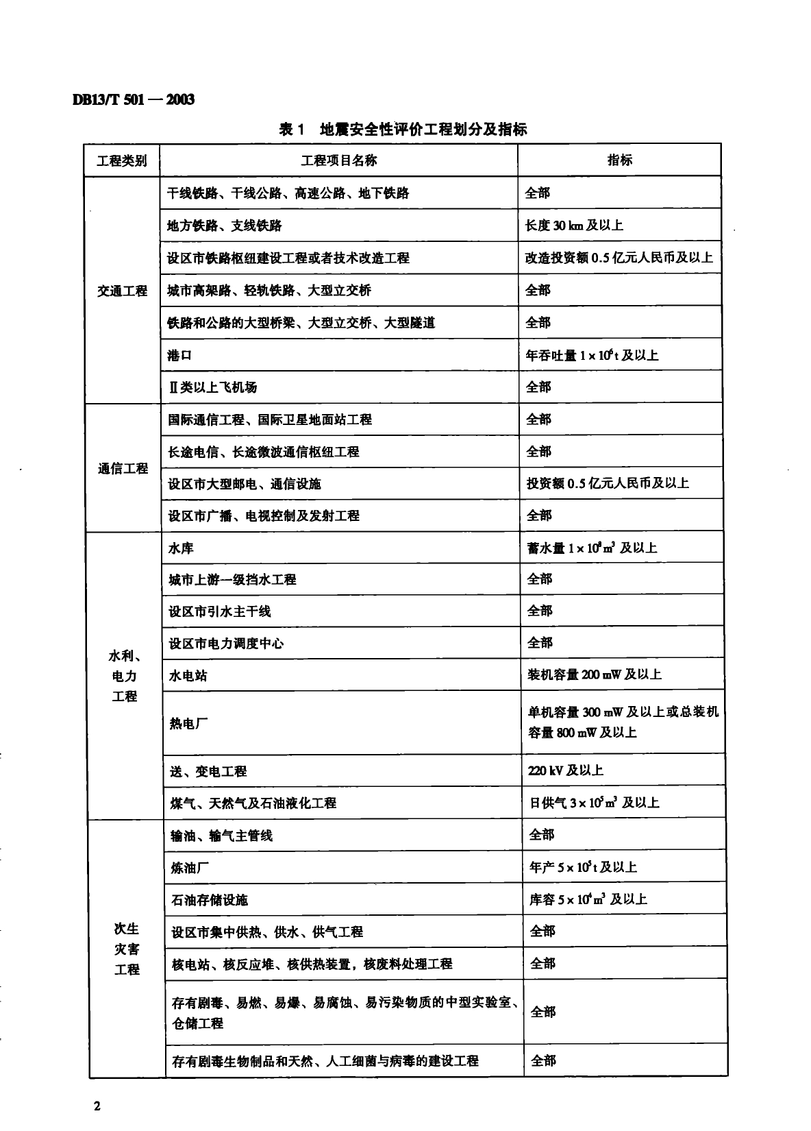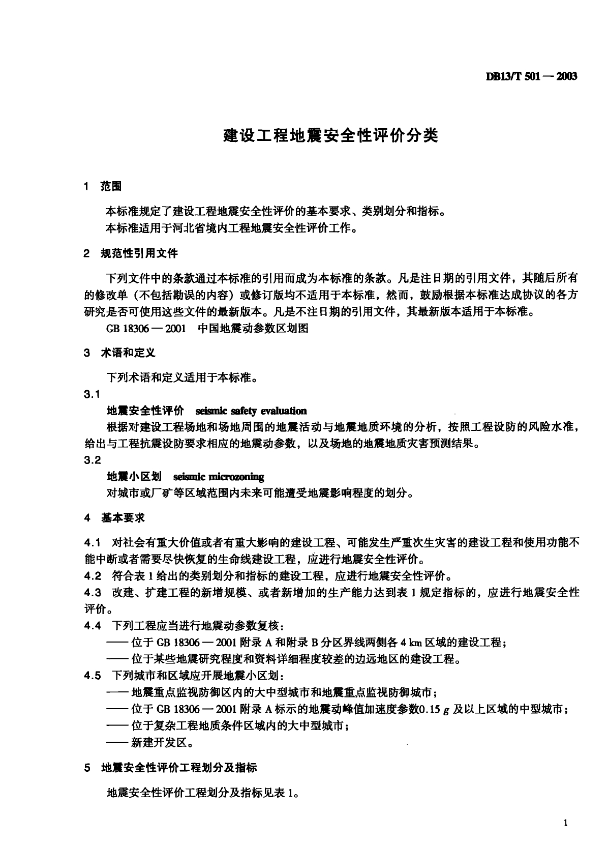 建设工程地震安全性评价分类DB13/T 501-2003
