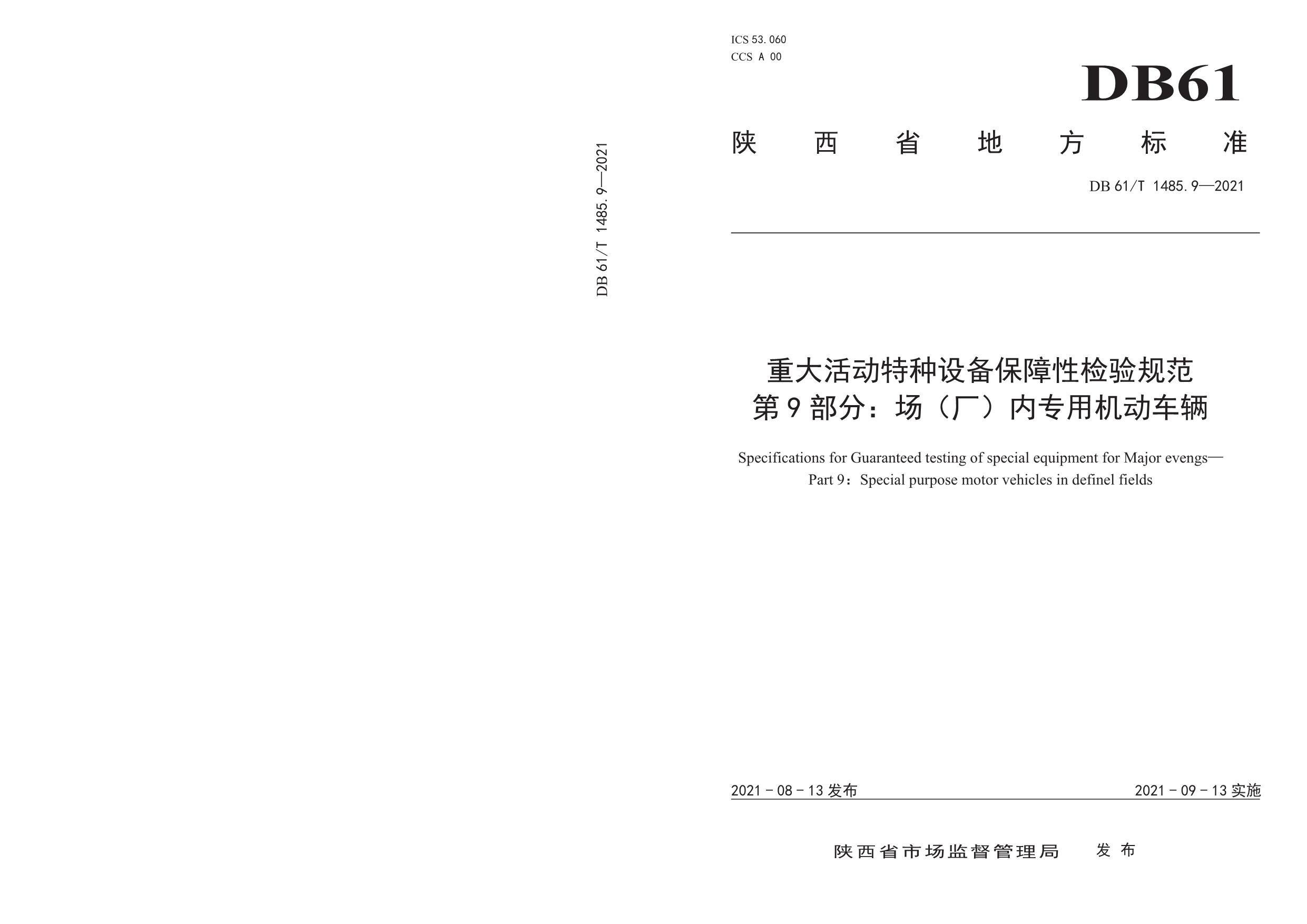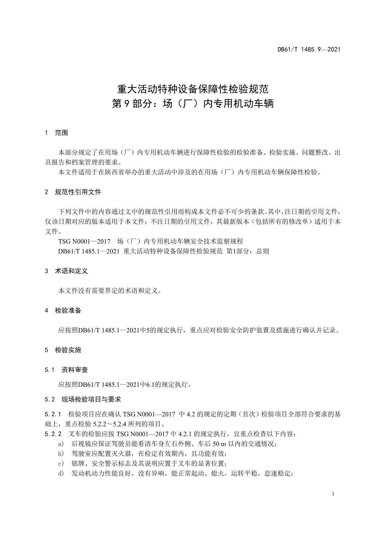 《重大活动特种设备保障性检验规范 第9部分:场(厂)内专用机动车辆》(DB61/T 1485.9-2021)