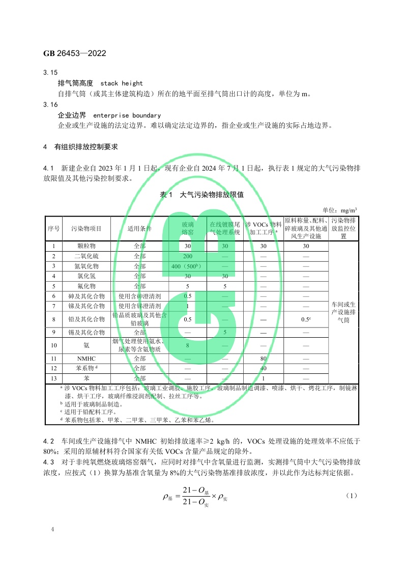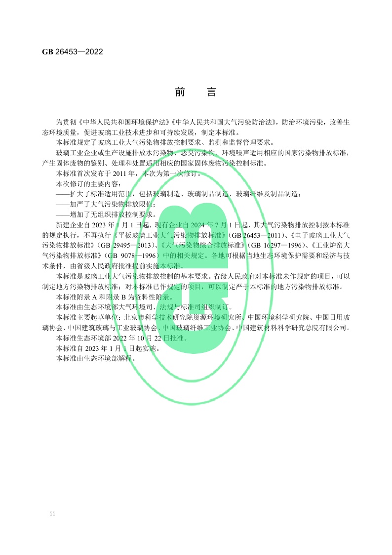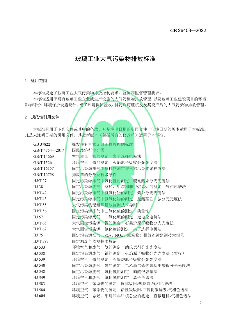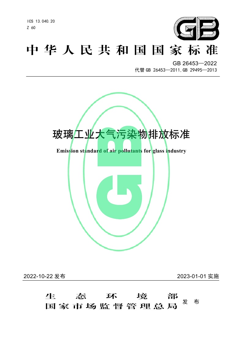 《玻璃工业大气污染物排放标准》(GB 26453—2022)