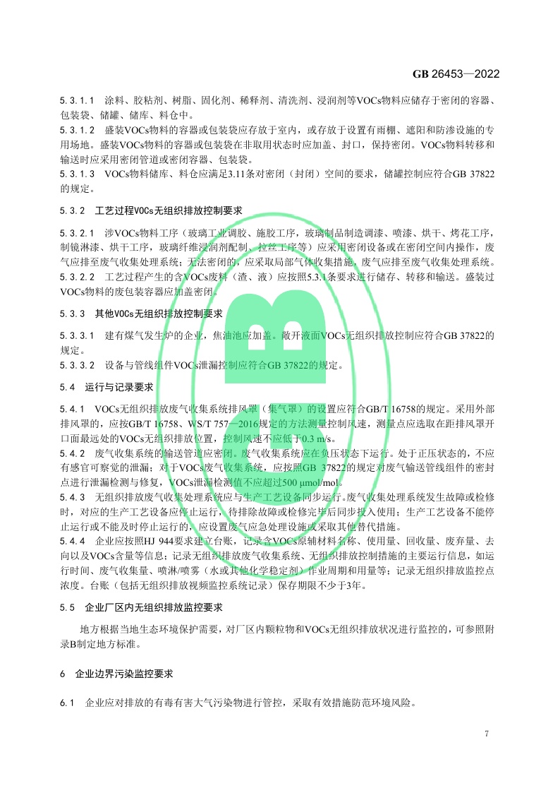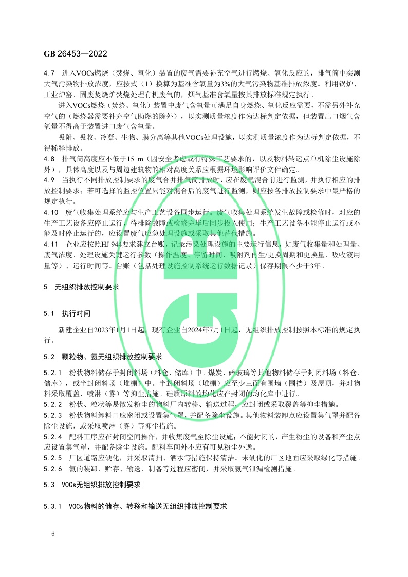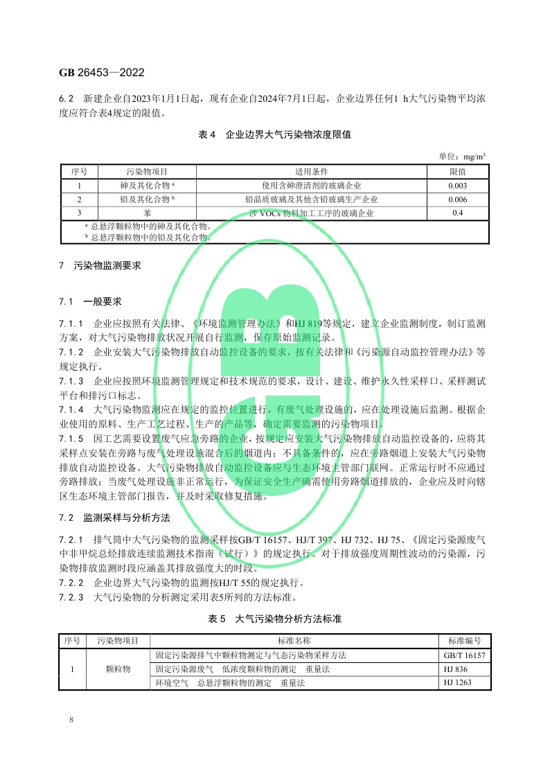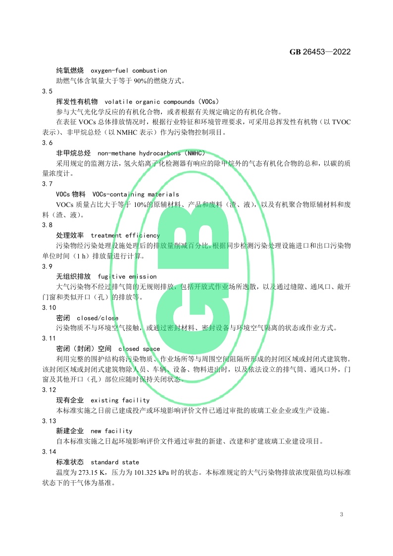 《玻璃工业大气污染物排放标准》(GB 26453—2022)