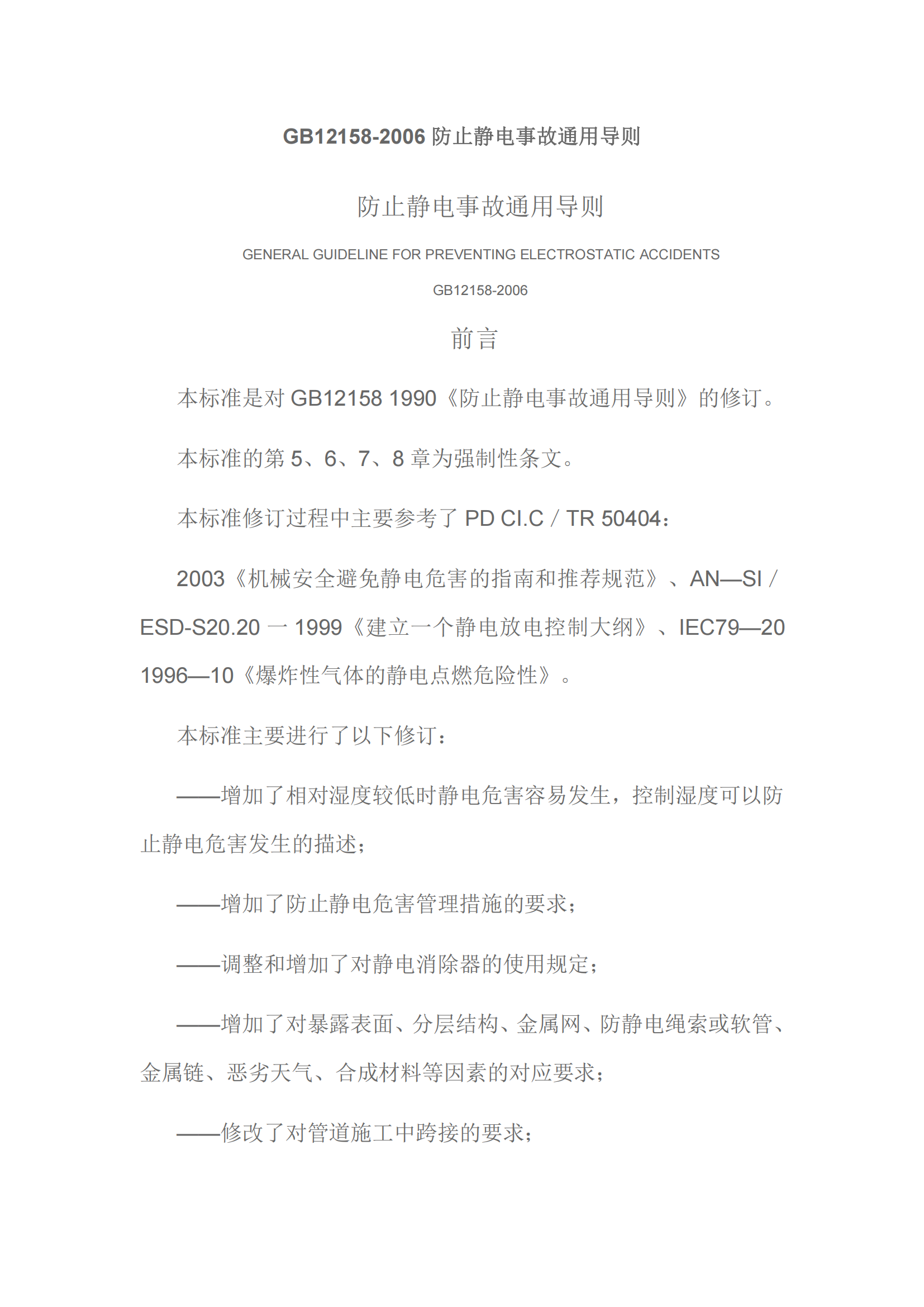 防止静电事故通用导则