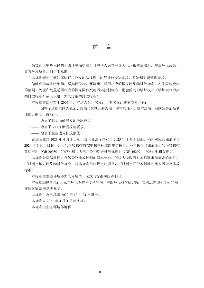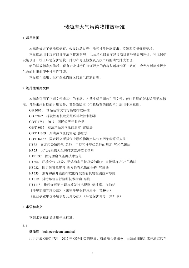 《储油库大气污染物排放标准》(GB 20950—2020)