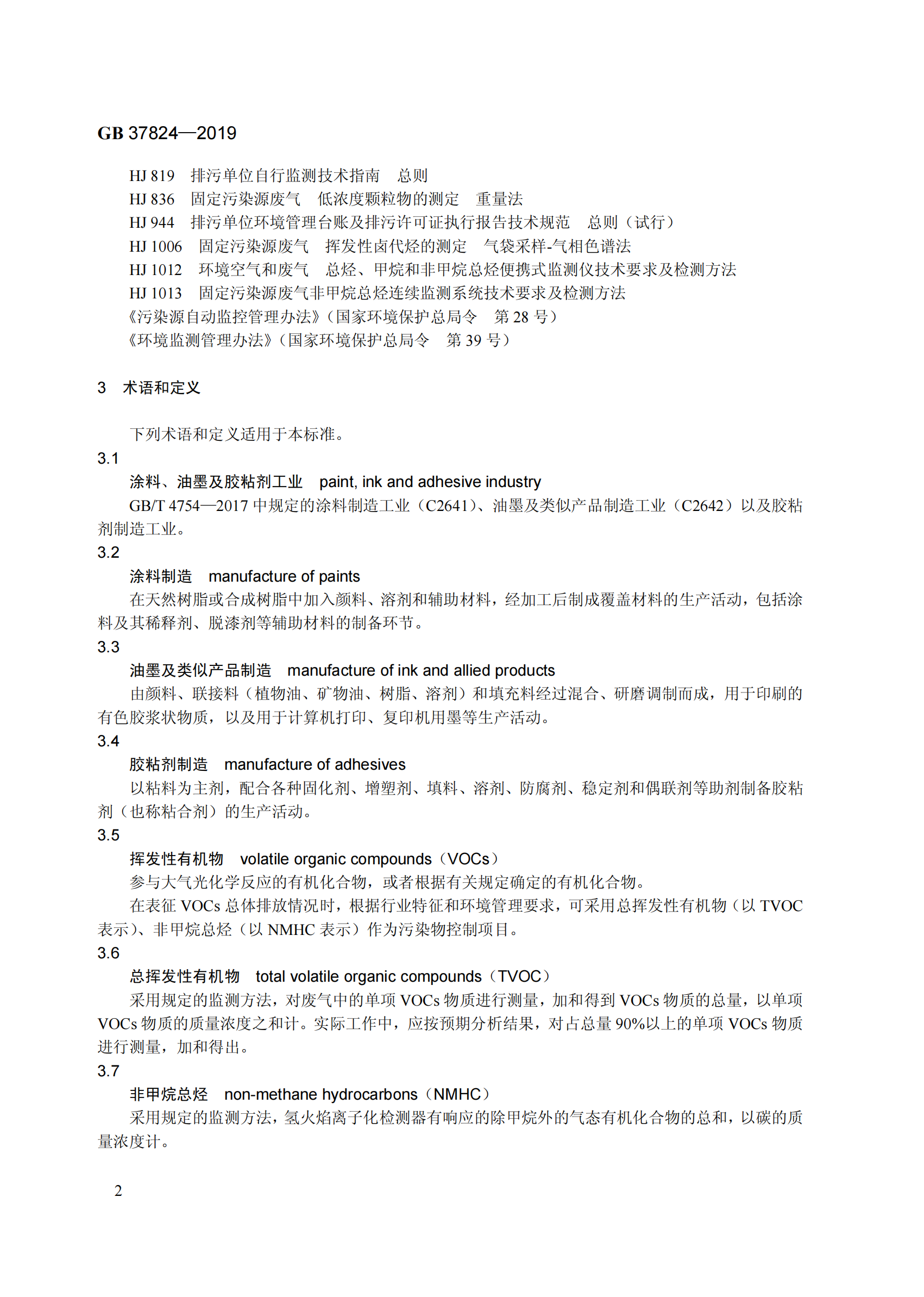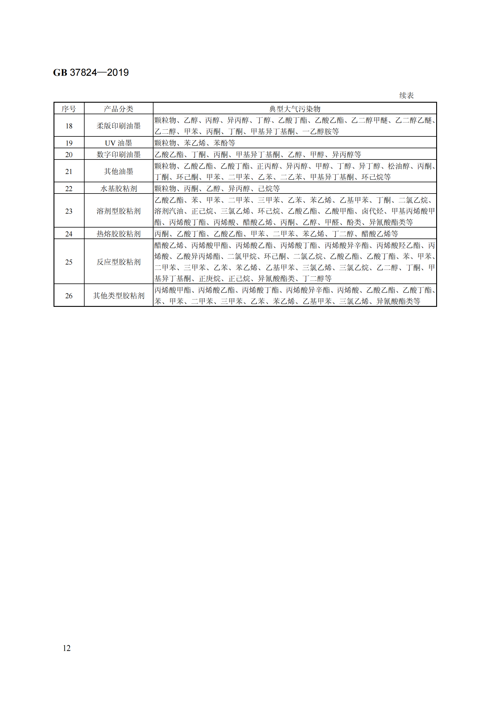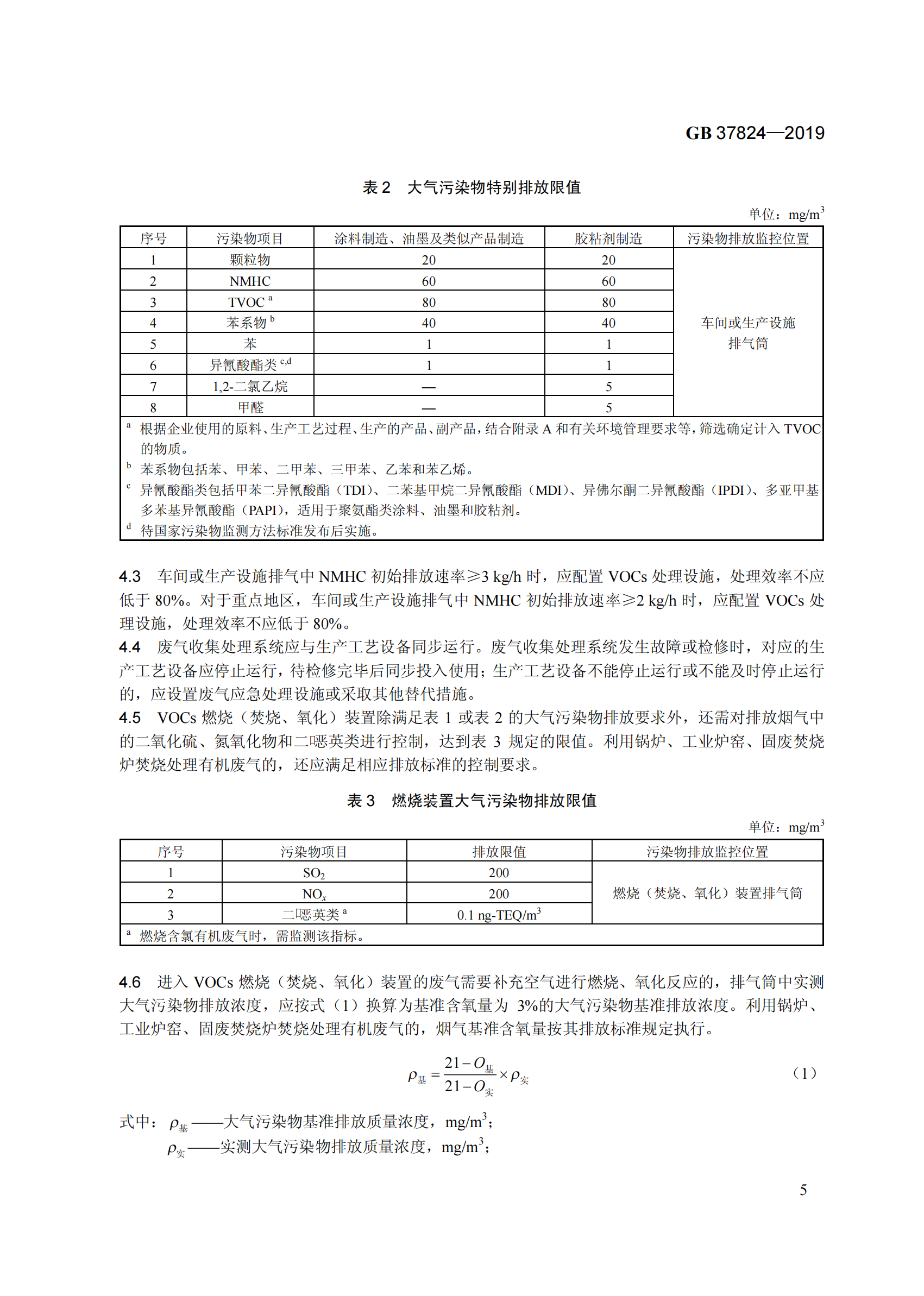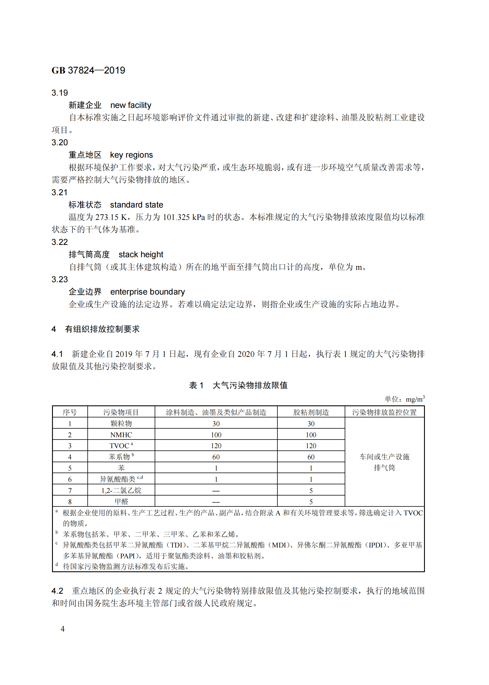 《涂料、油墨及胶粘剂工业大气污染物排放标准》(GB 37824—2019)