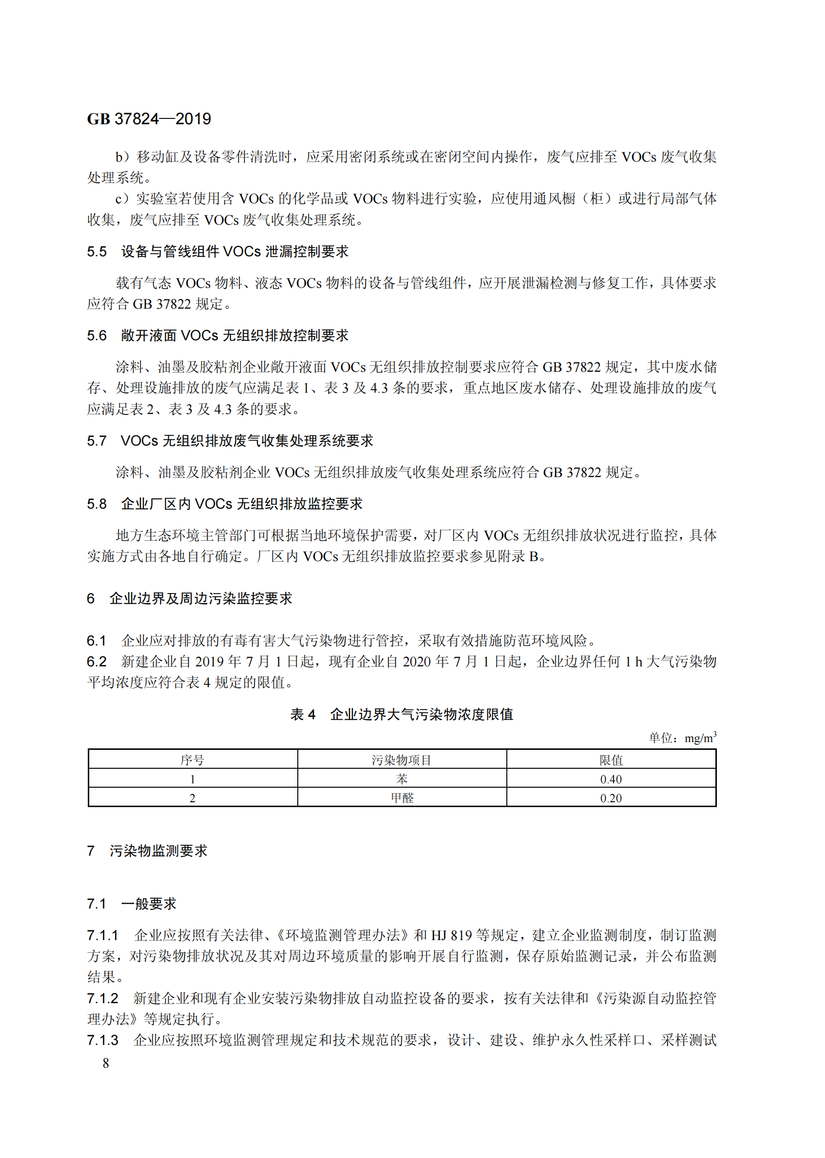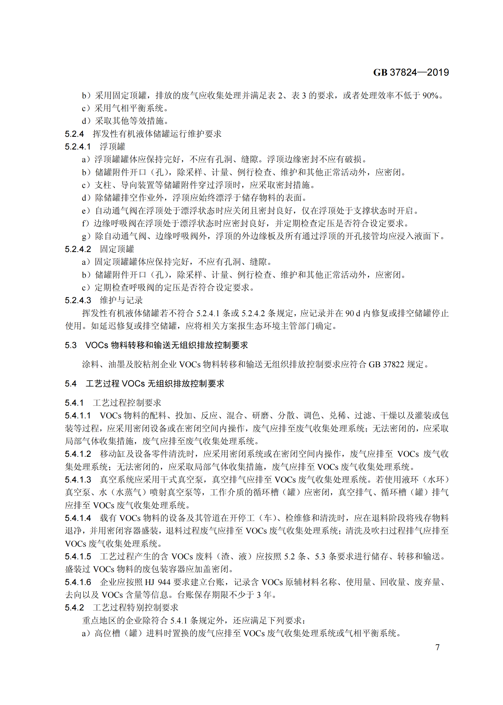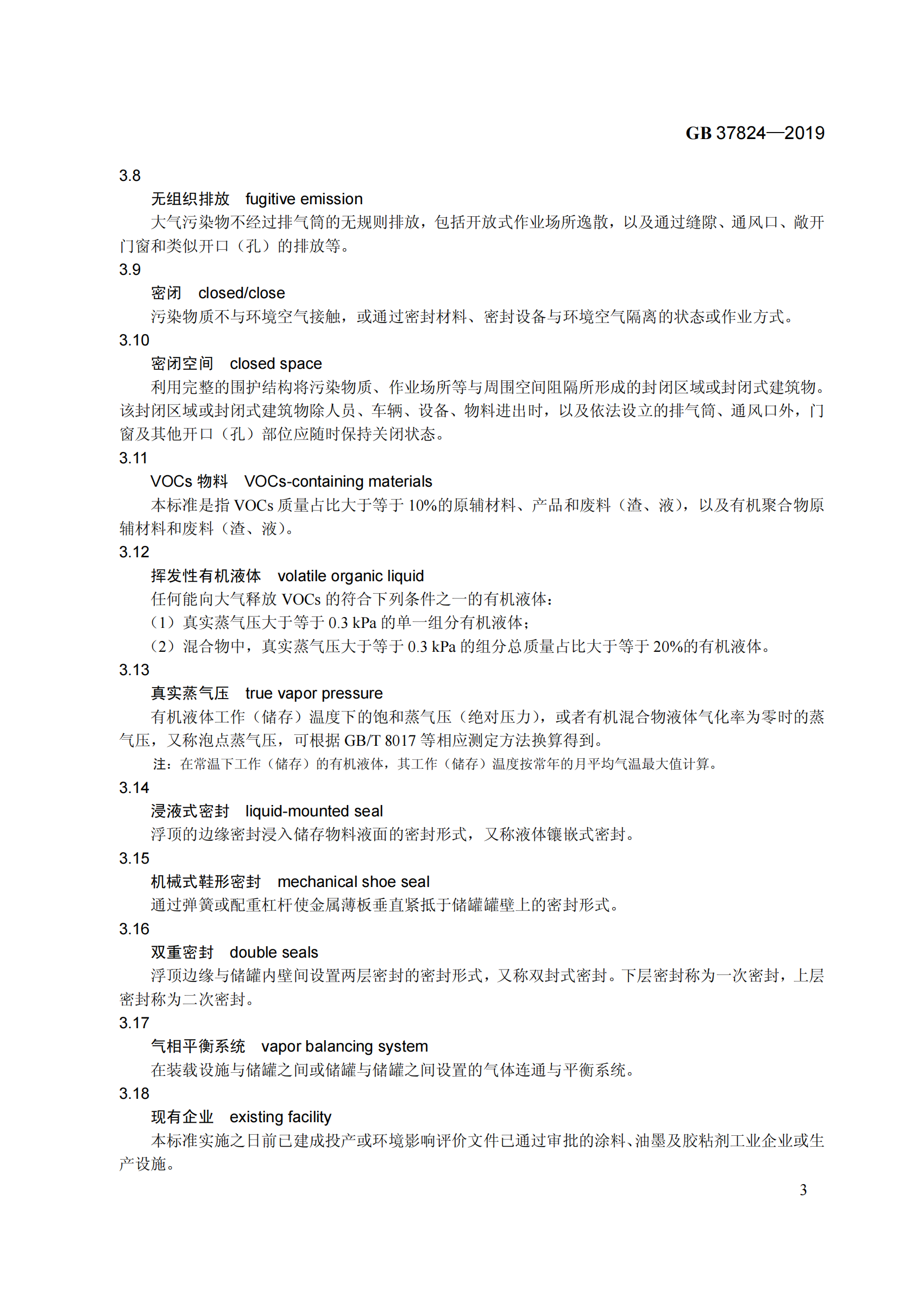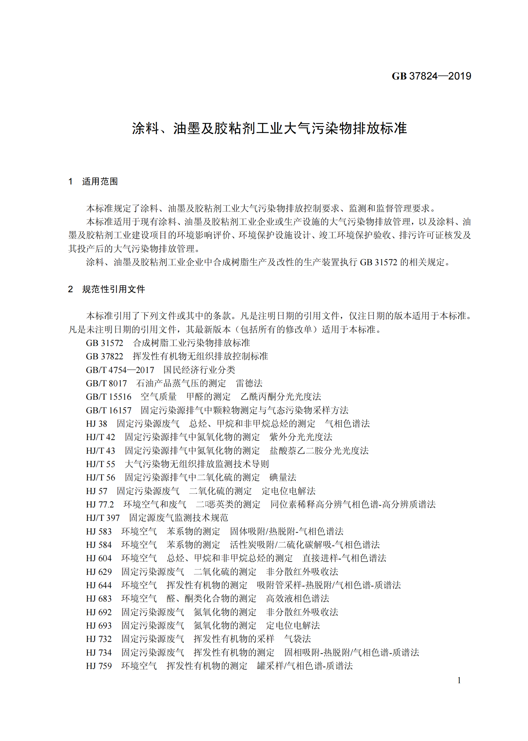 《涂料、油墨及胶粘剂工业大气污染物排放标准》(GB 37824—2019)