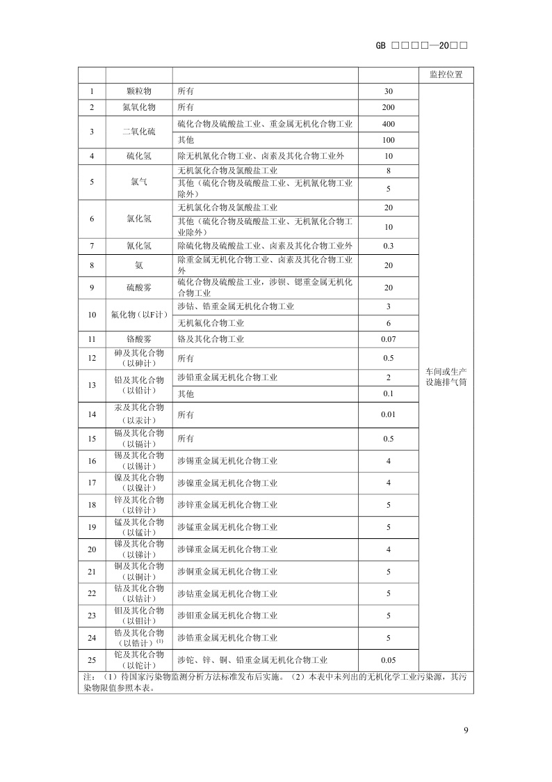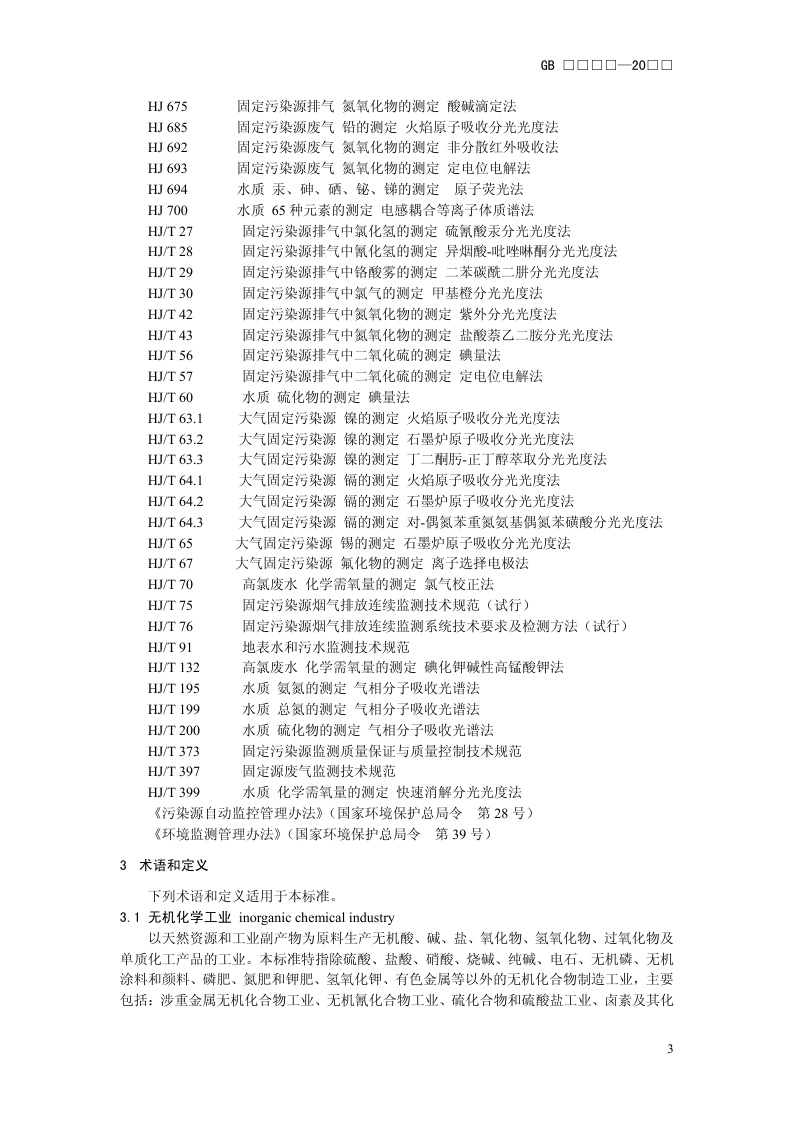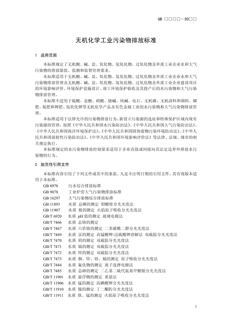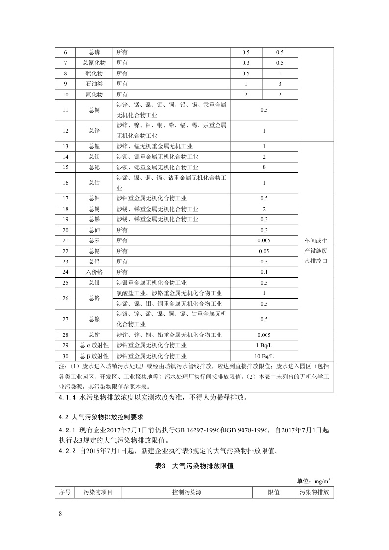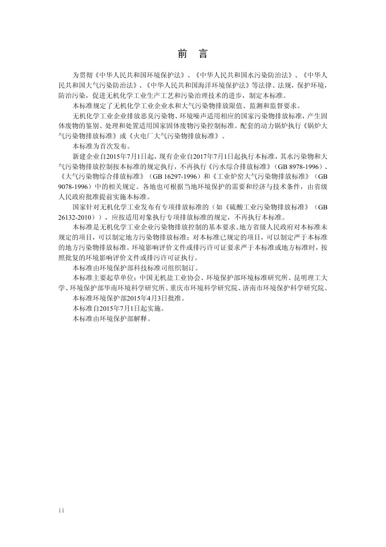 《无机化学工业污染物排放标准》 (GB 31573-2015)