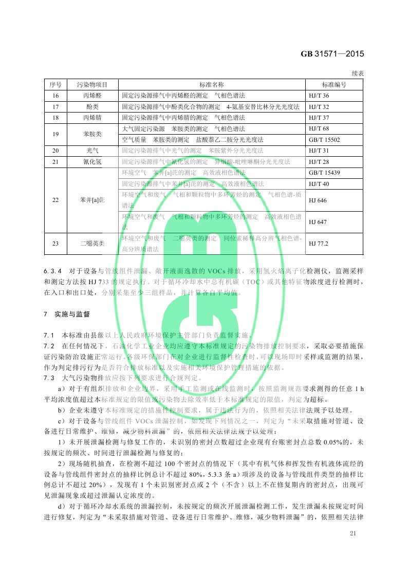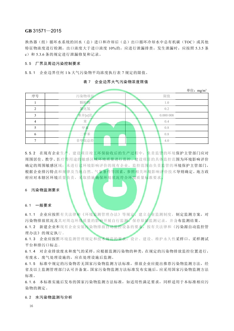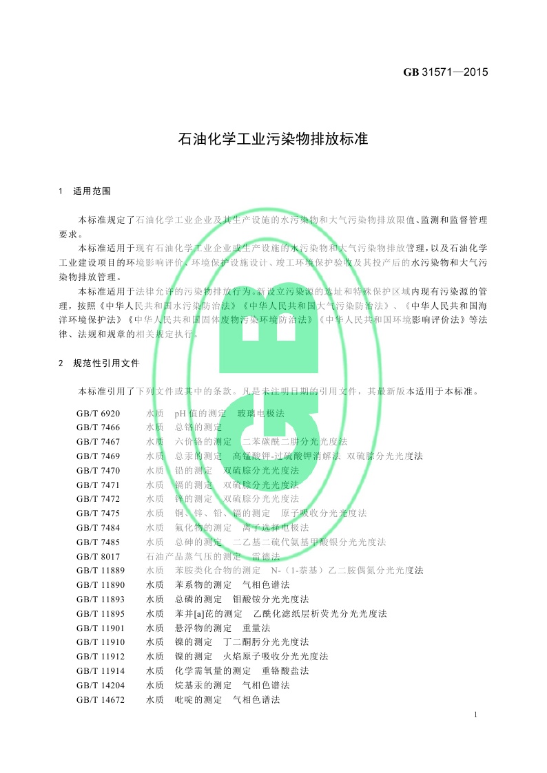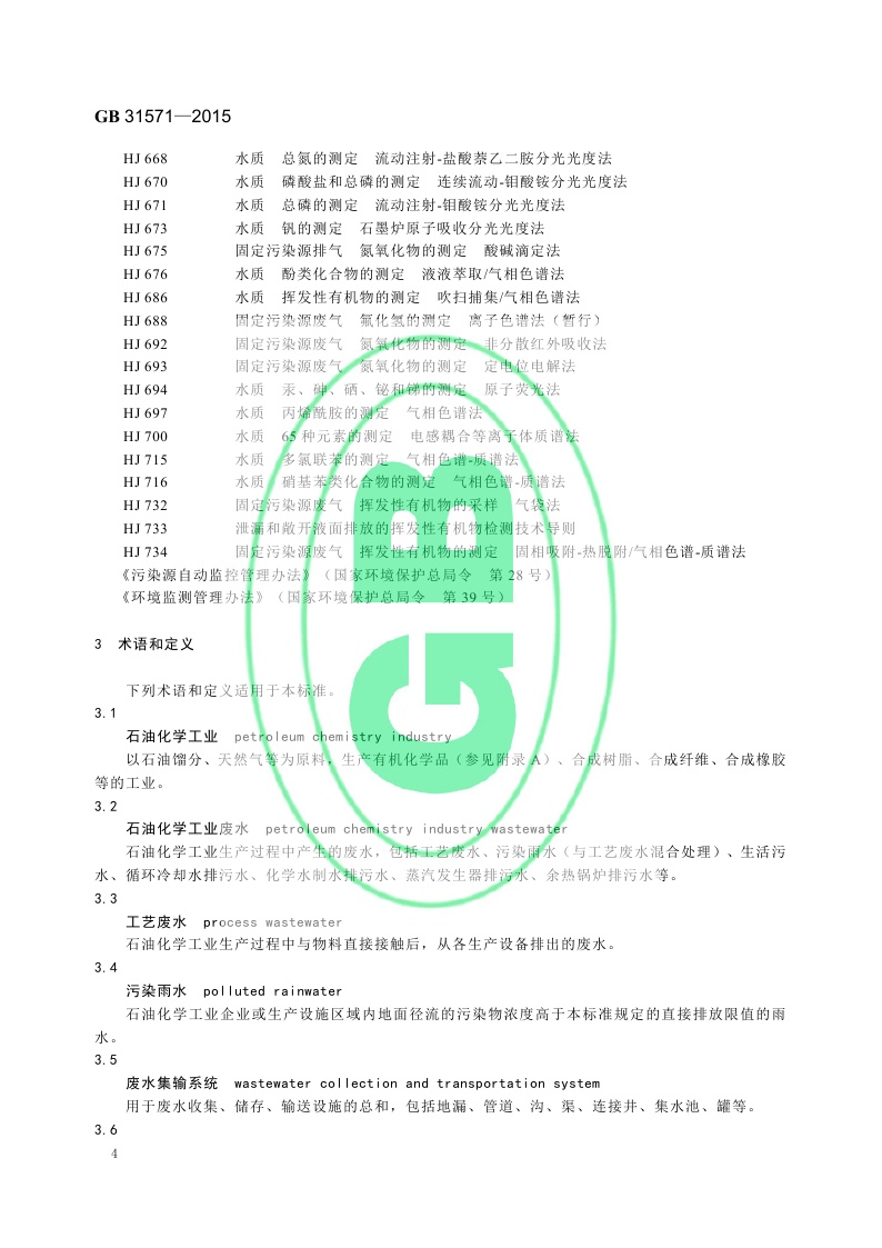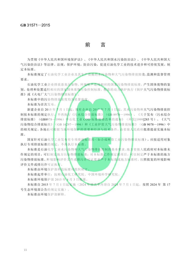 《石油化学工业污染物排放标准》(GB 31571-2015,含2024年修改单)
