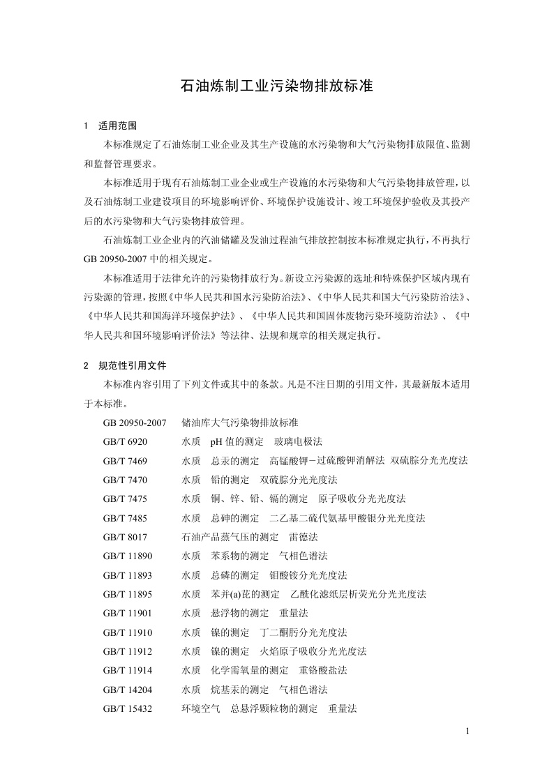 《石油炼制工业污染物排放标准》(GB 31570-2015)