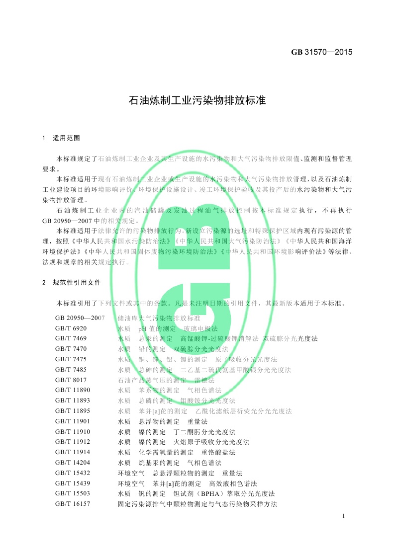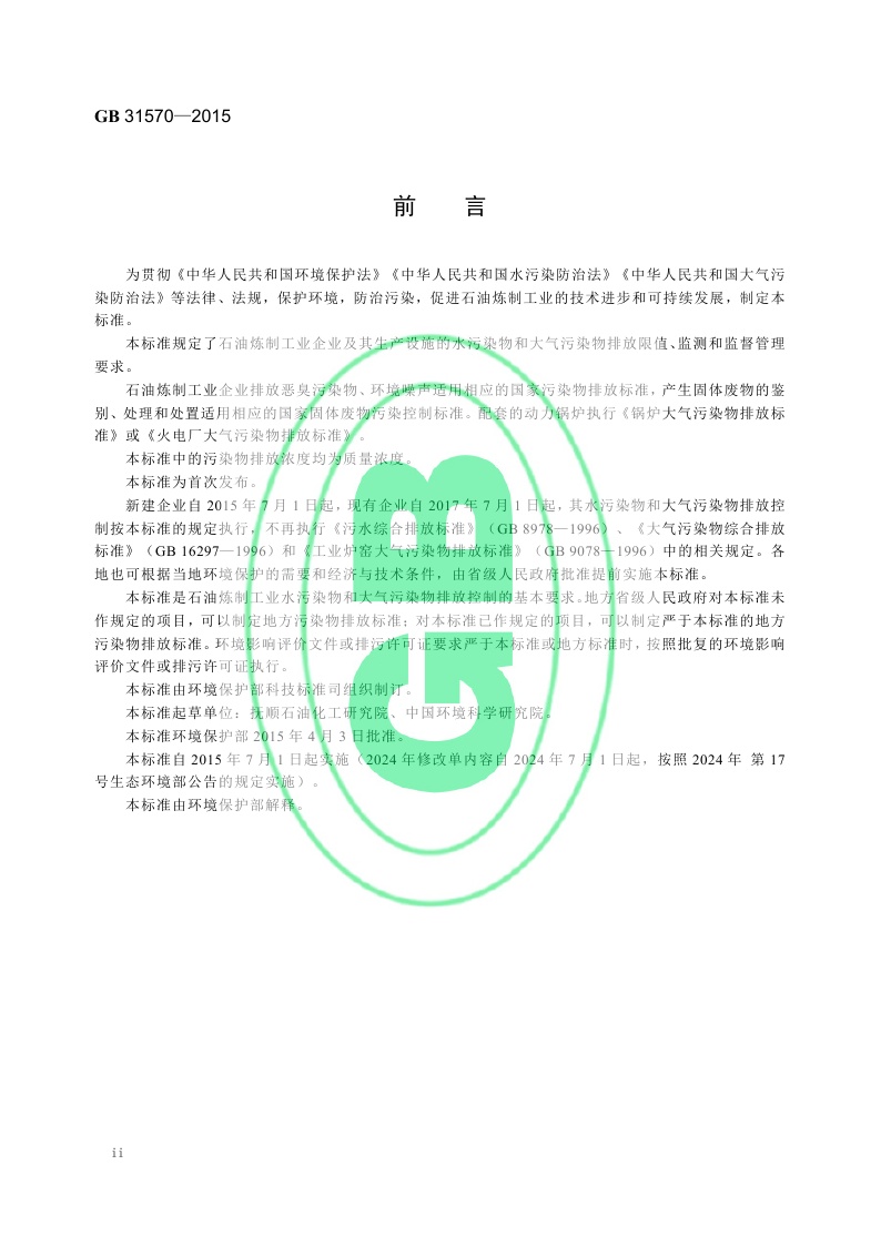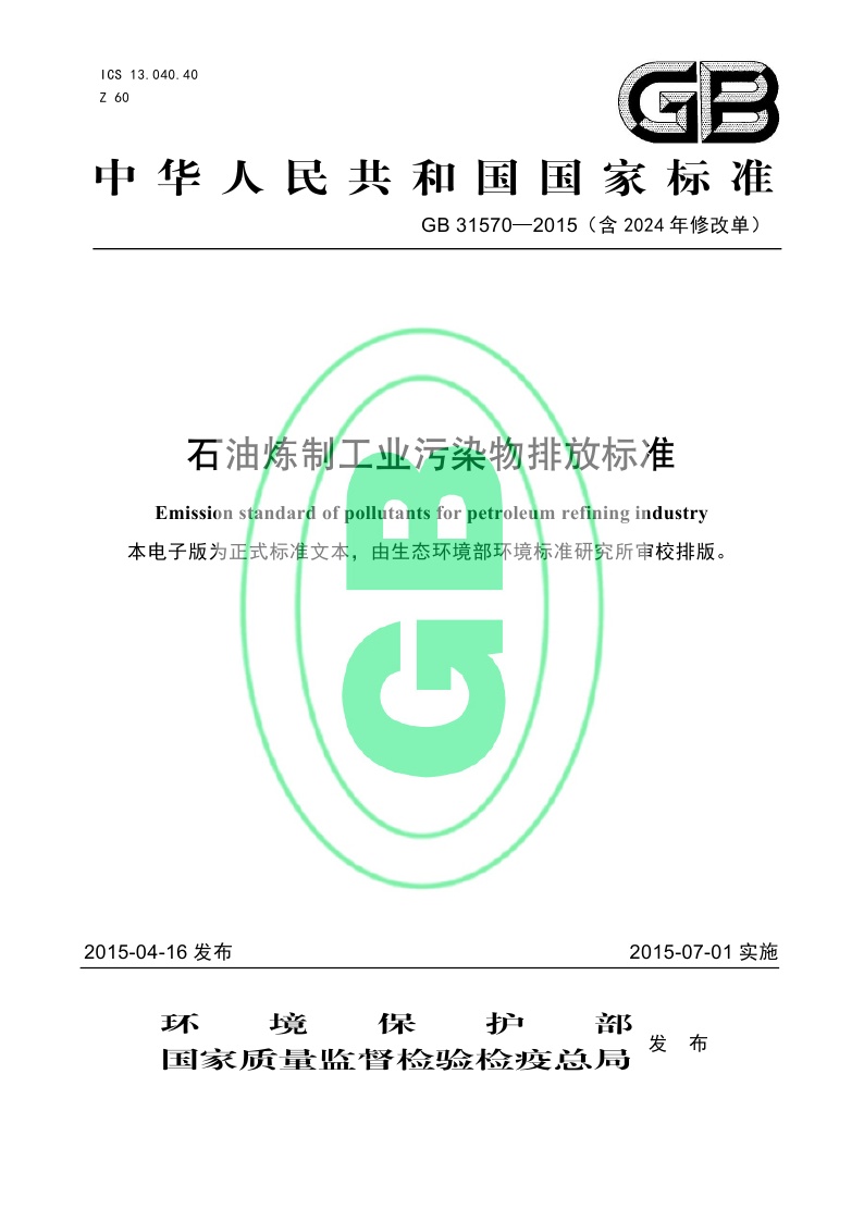 《石油炼制工业污染物排放标准》(GB 31570-2015,含2024年修改单)