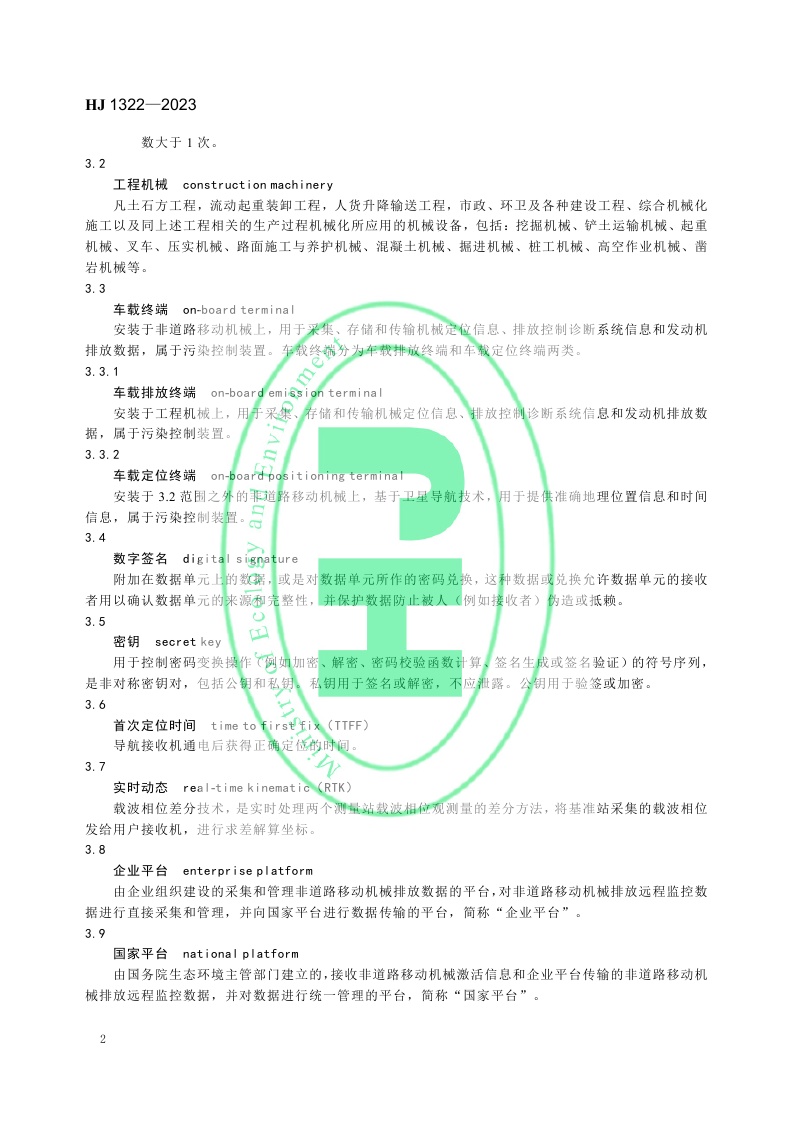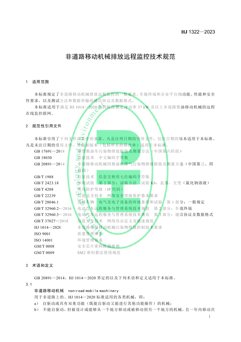 《非道路移动机械排放远程监控技术规范》(HJ 1322—2023)
