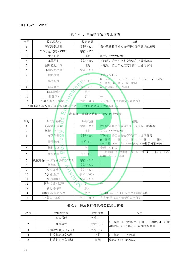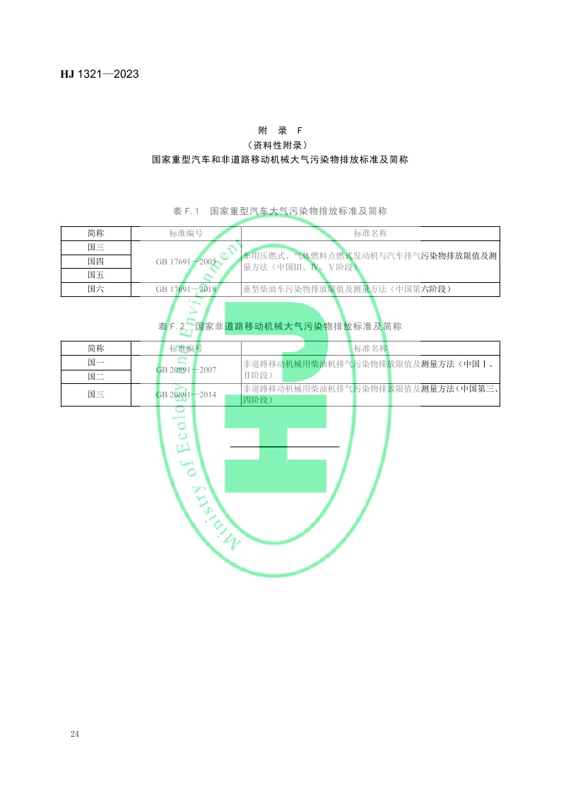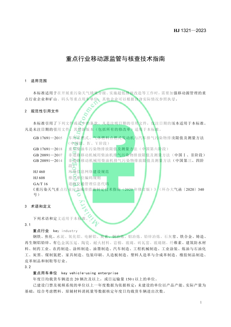 《重点行业移动源监管与核查技术指南》(HJ 1321—2023)