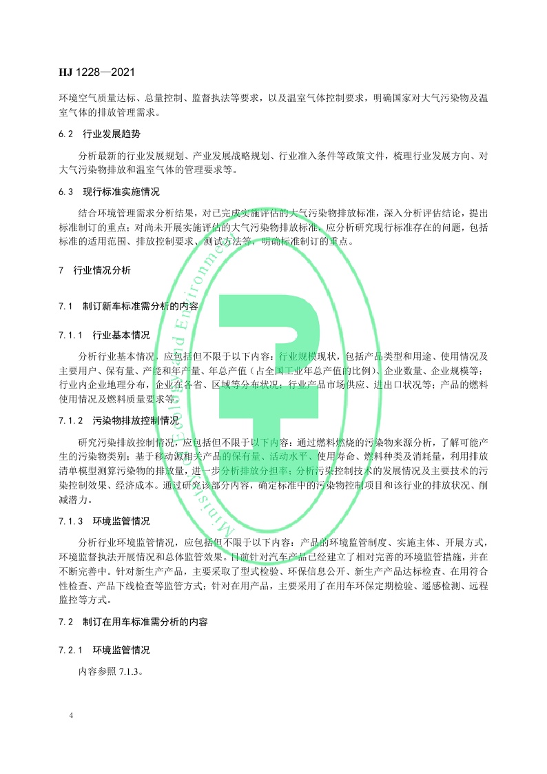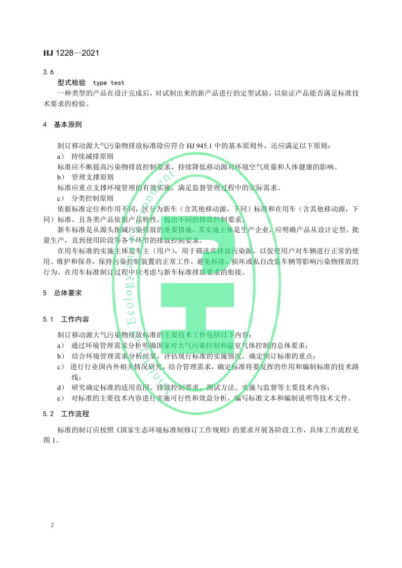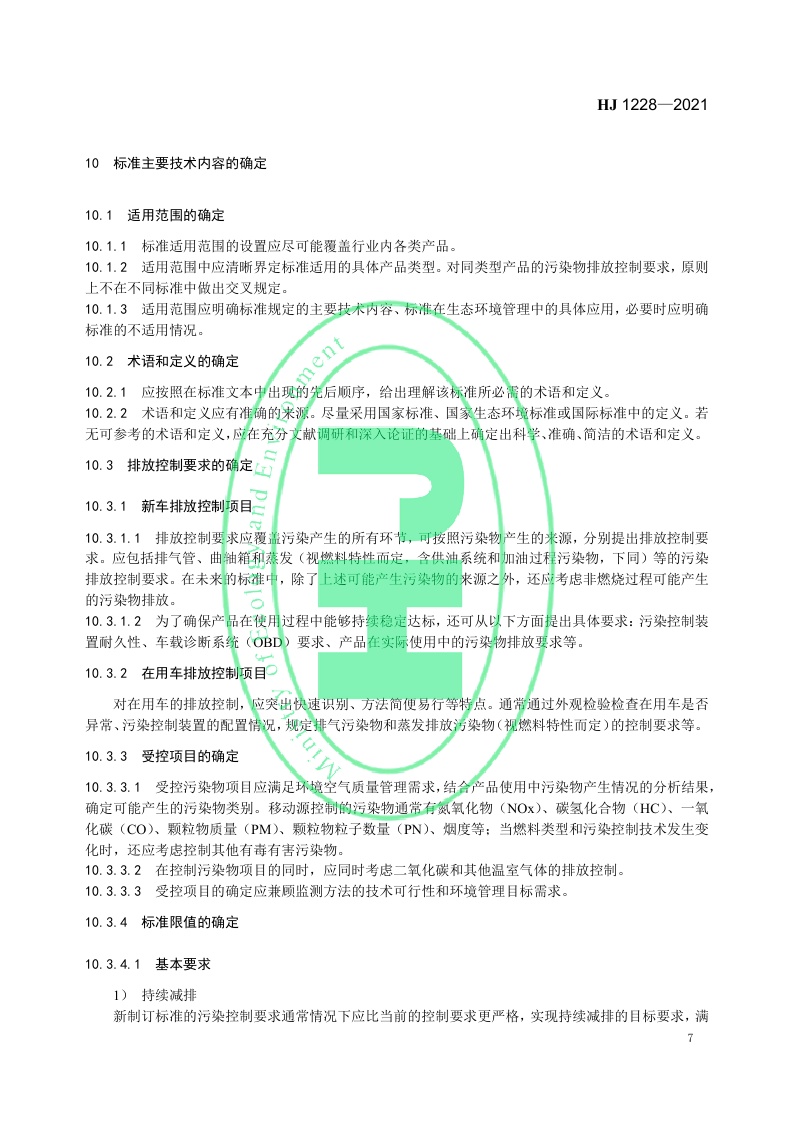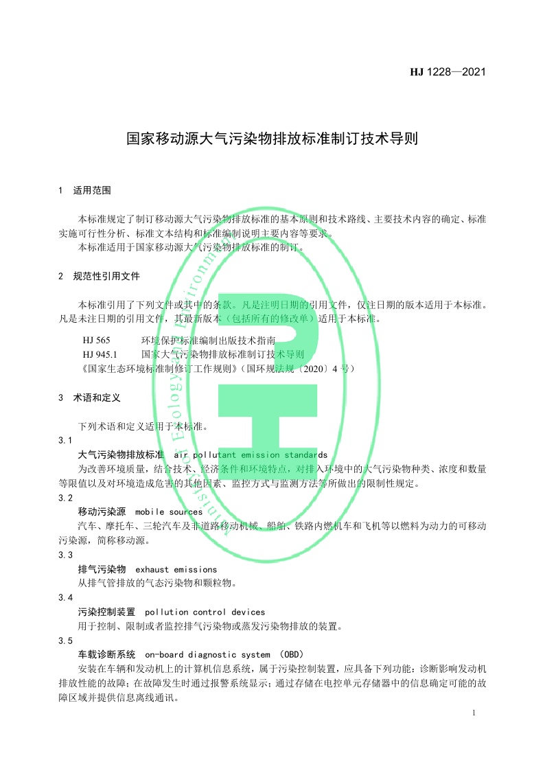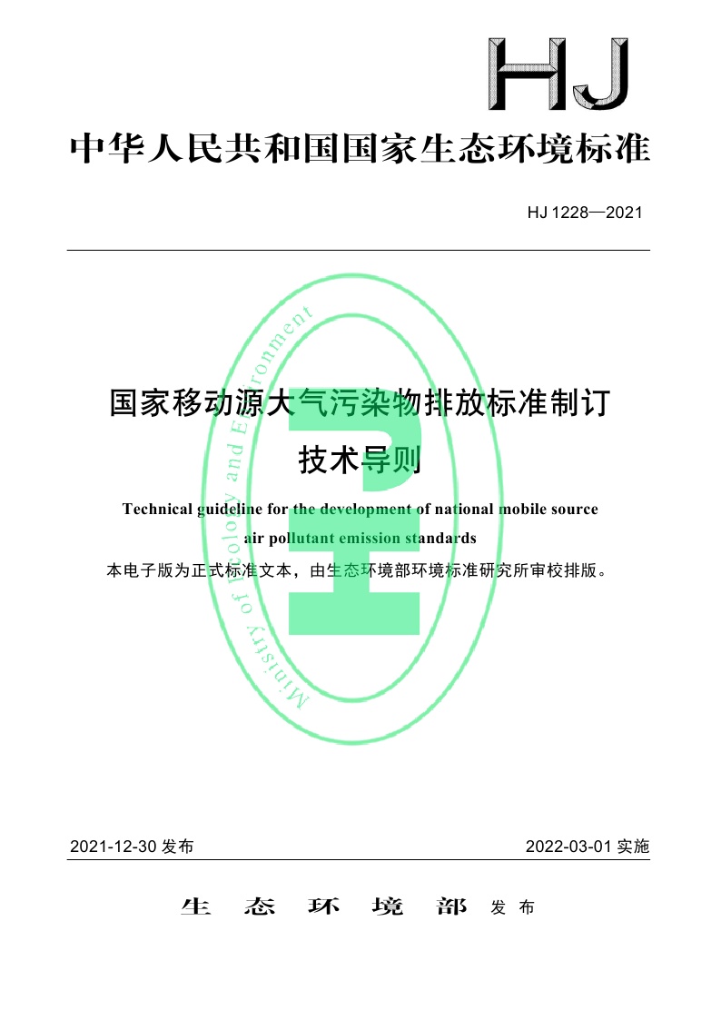《国家移动源大气污染物排放标准制订 技术导则》(HJ 1228—2021)