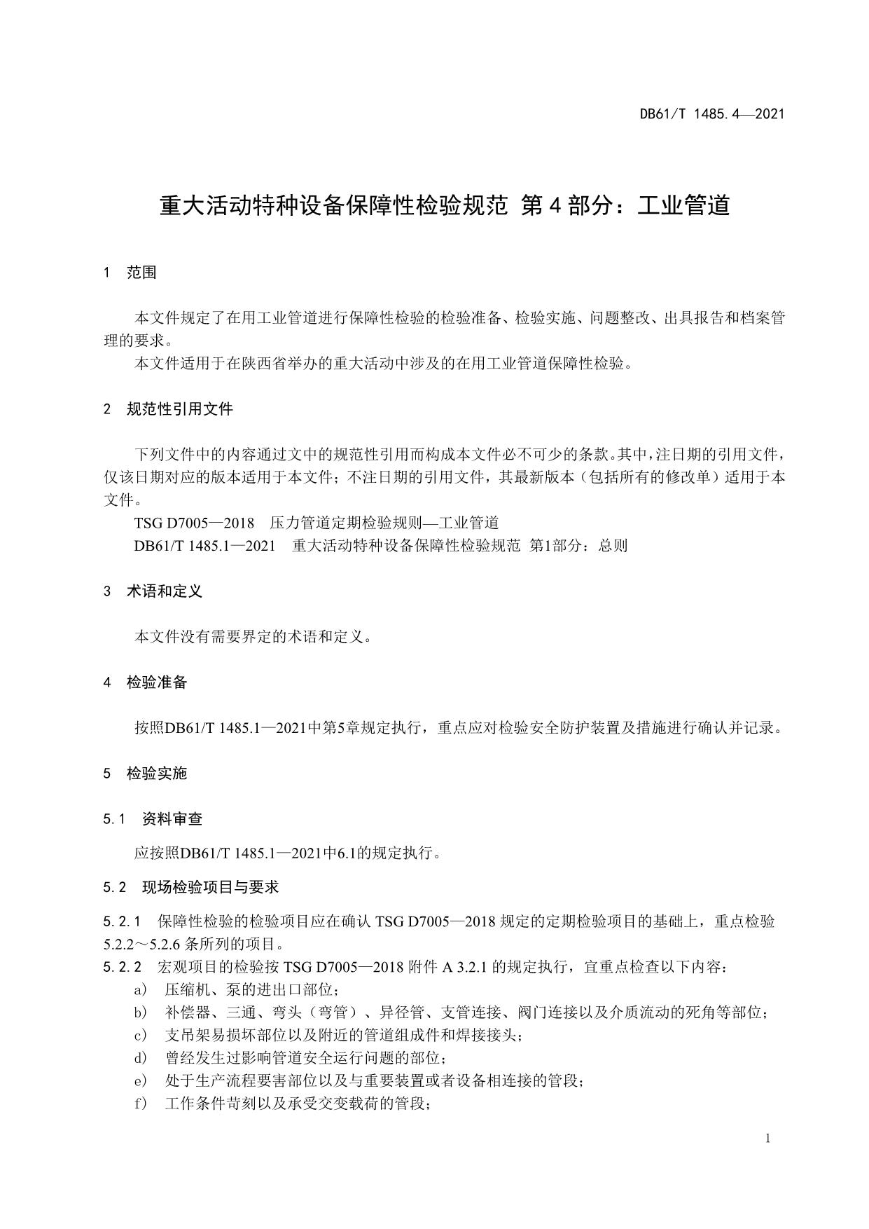 《重大活动特种设备保障性检验规范 第4部分:工业管道》(DB61/T 1485.4-2021)