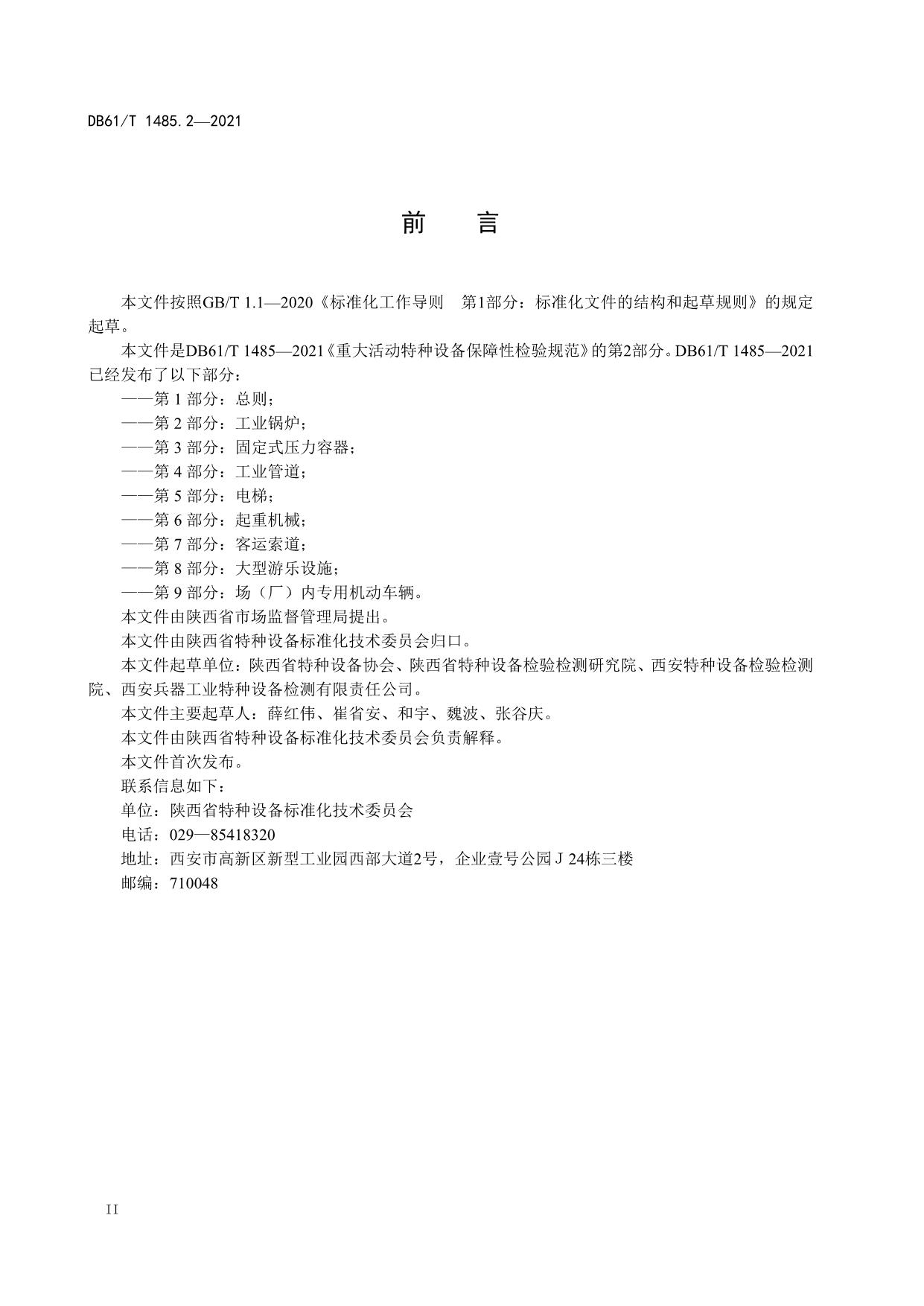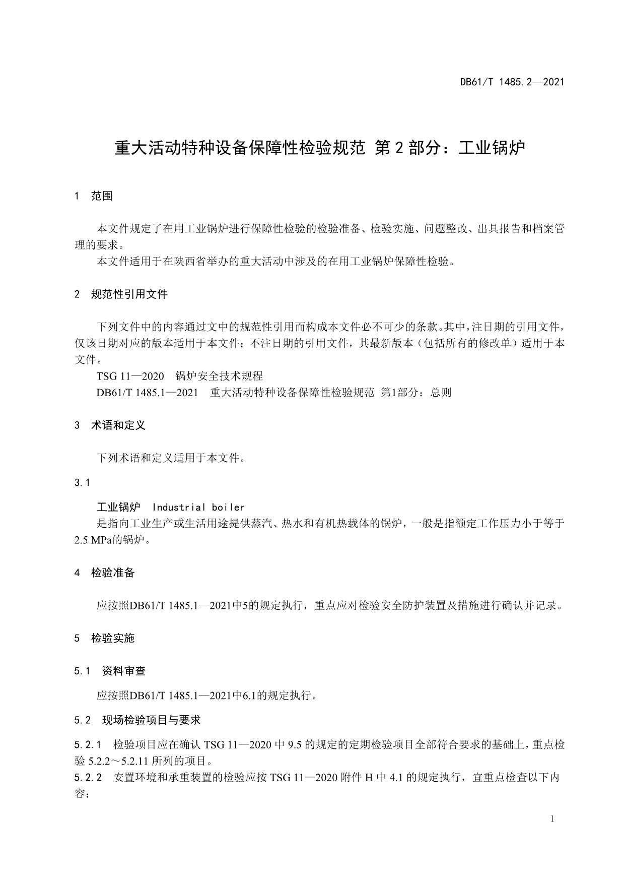 《重大活动特种设备保障性检验规范 第2部分:工业锅炉》(DB61/T 1485.2-2021)
