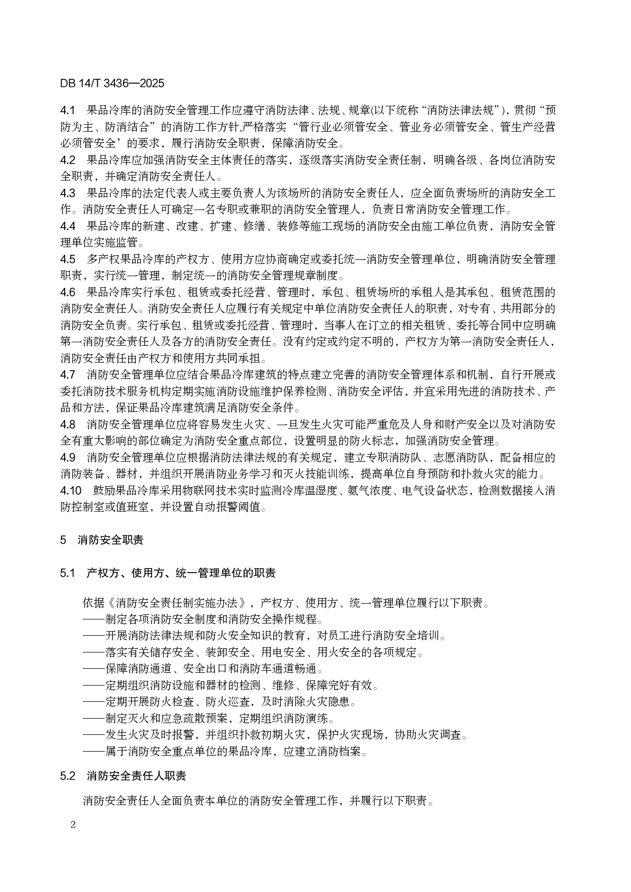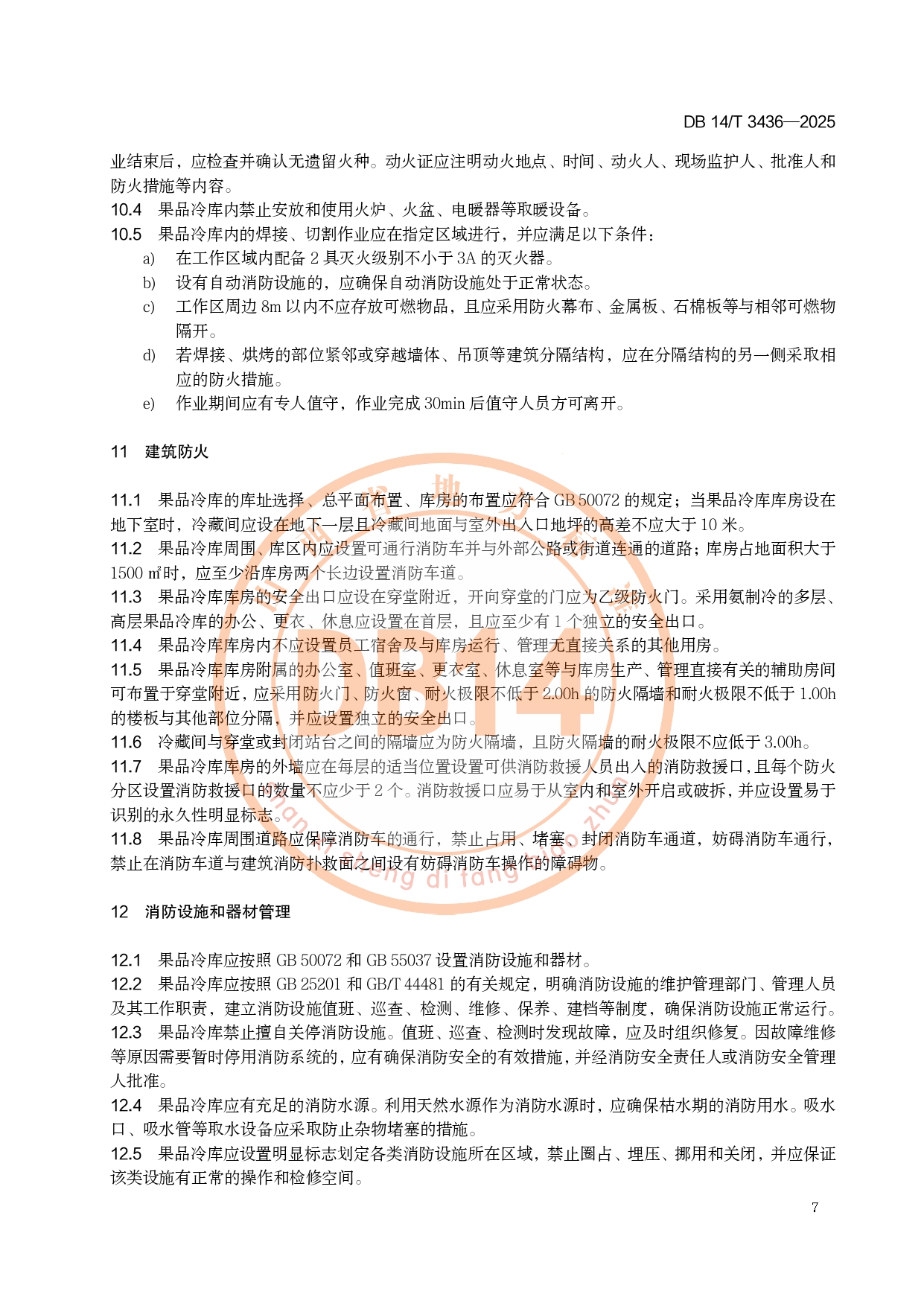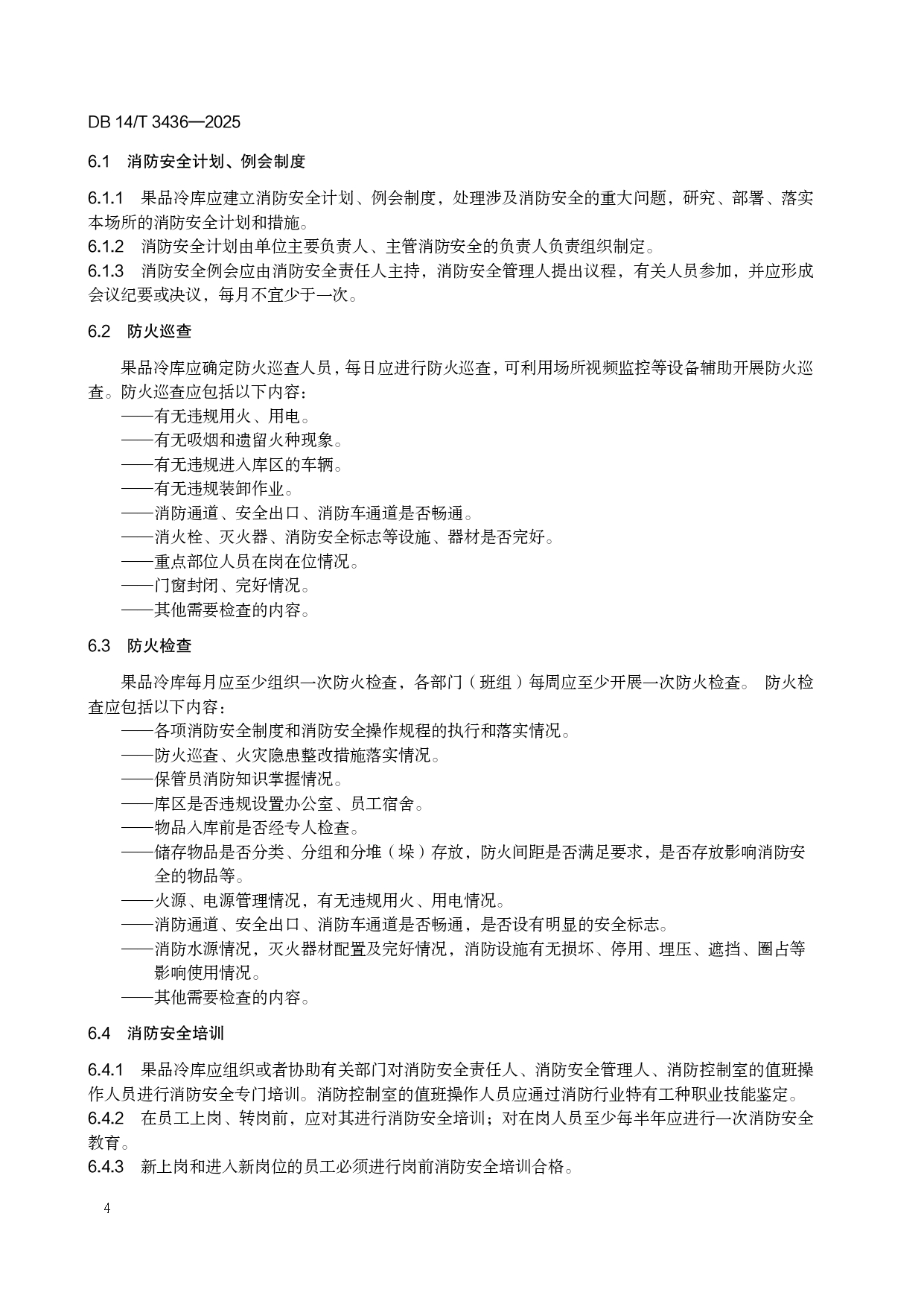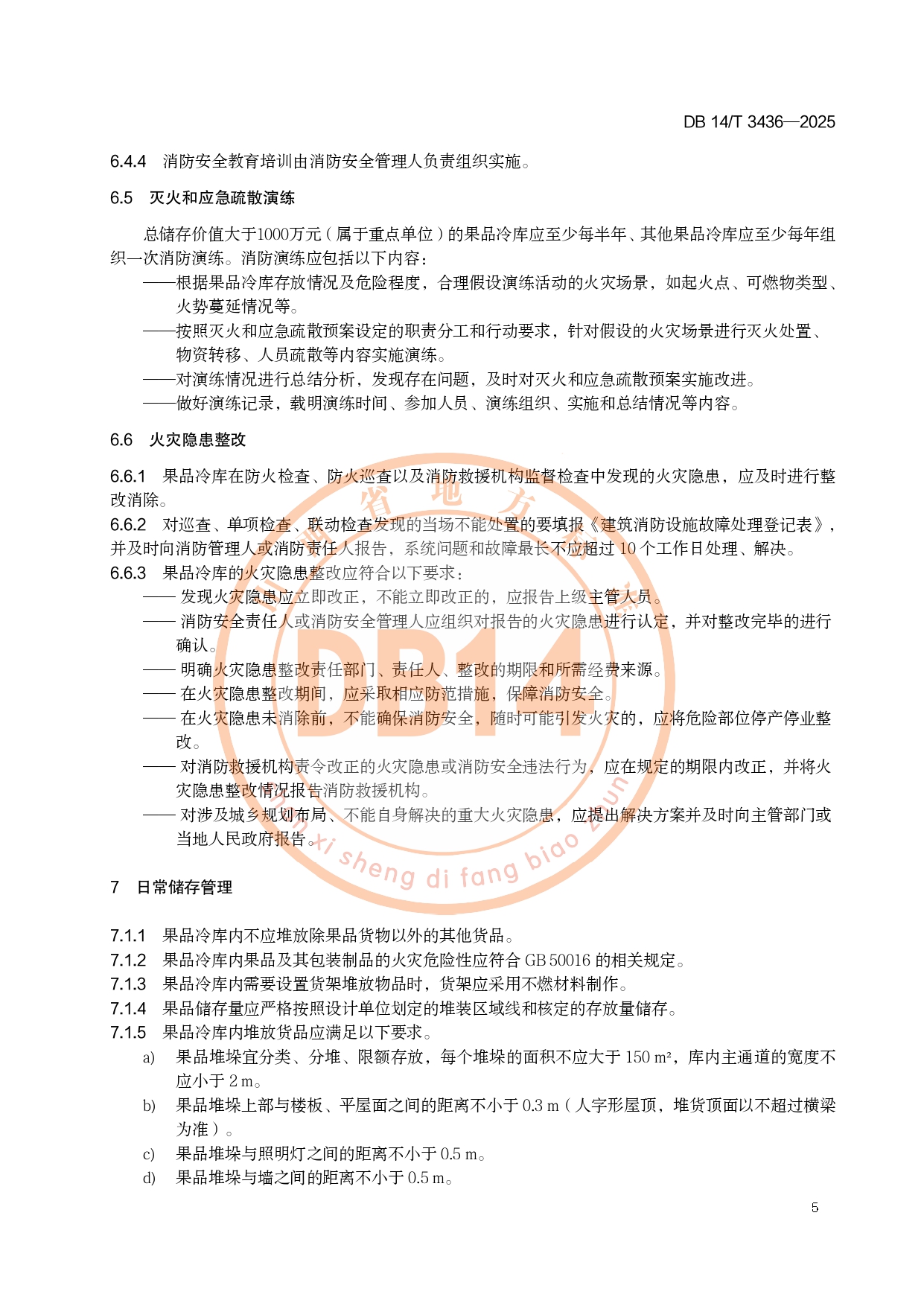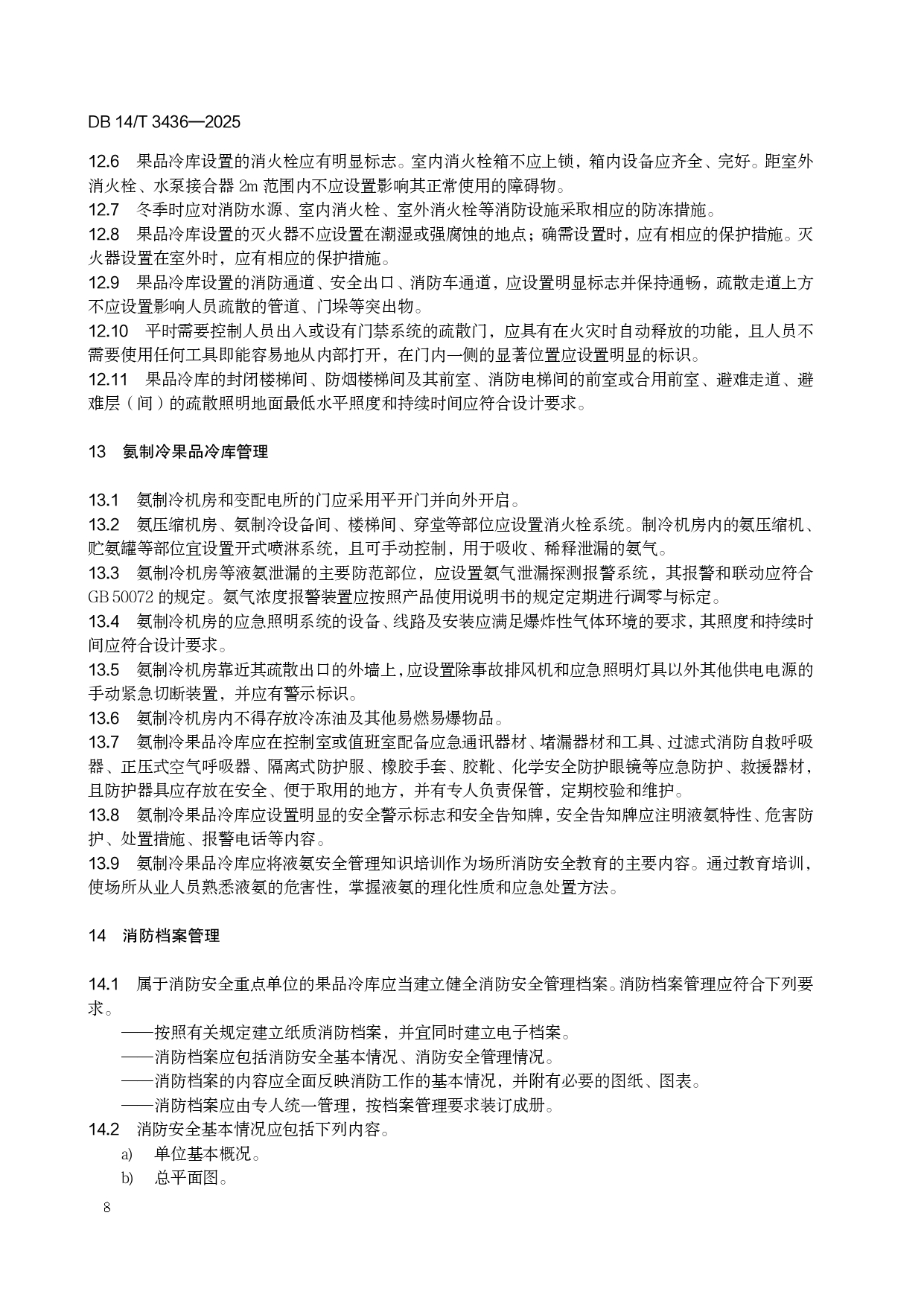 果品冷库消防安全管理规范DB14/T 3436-2025