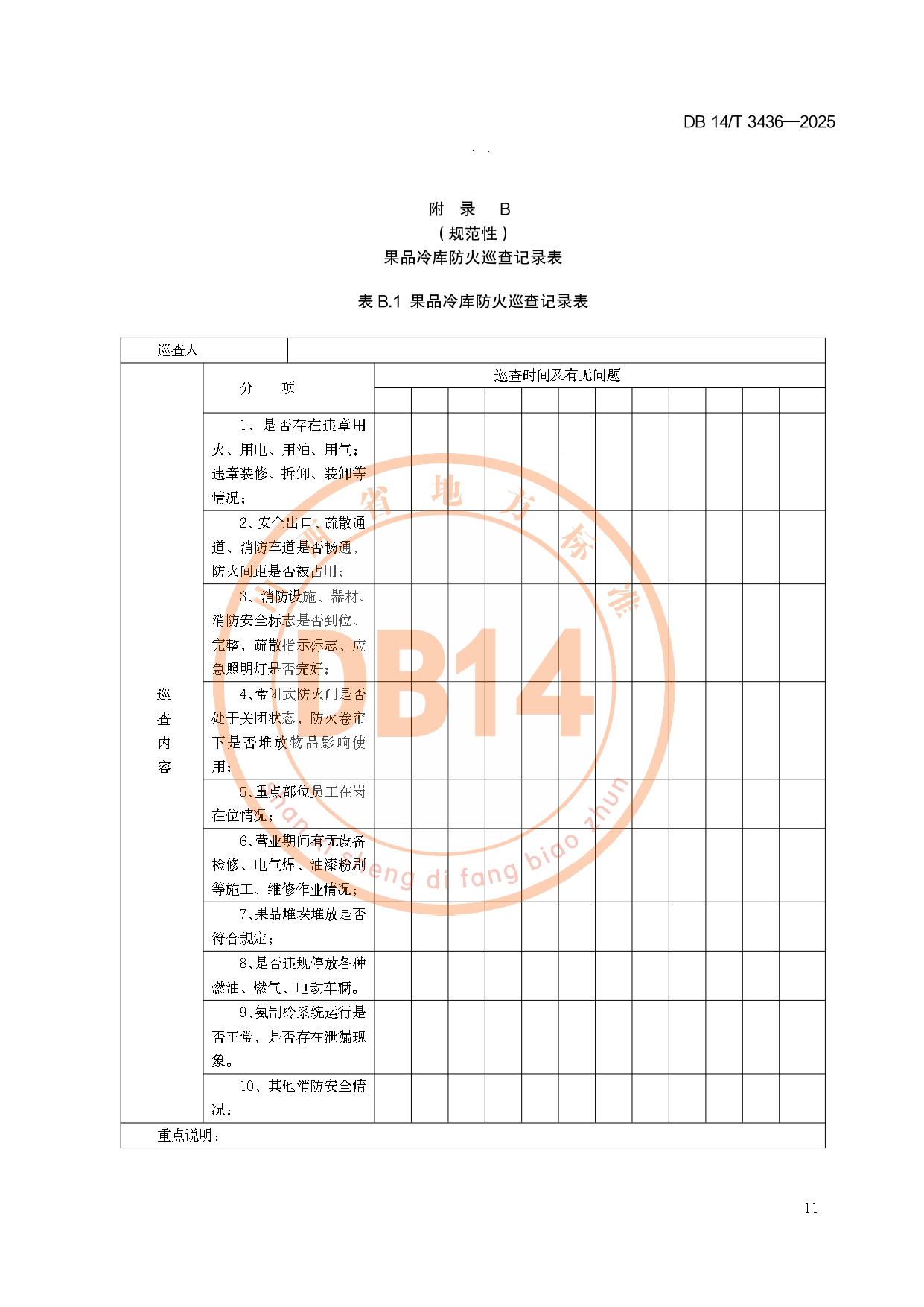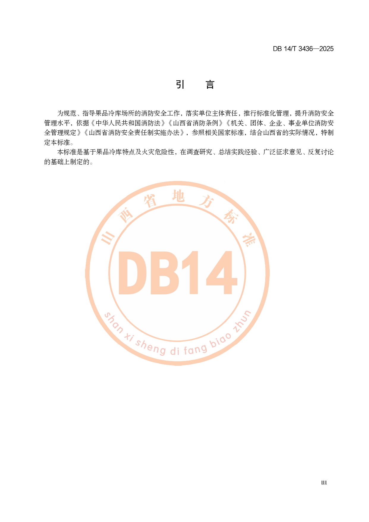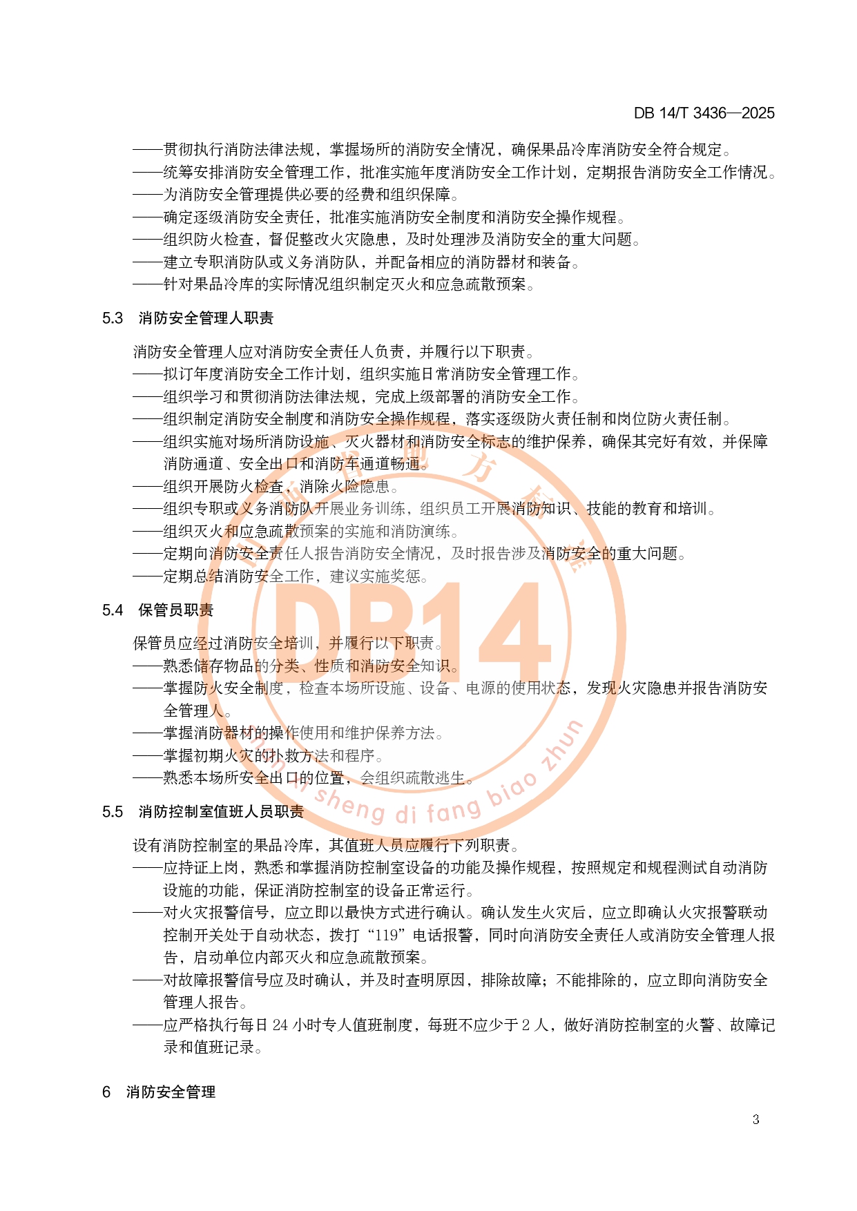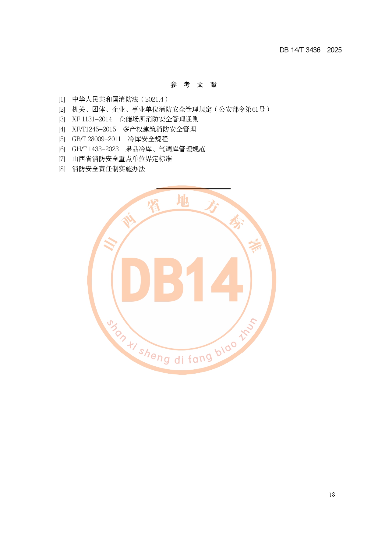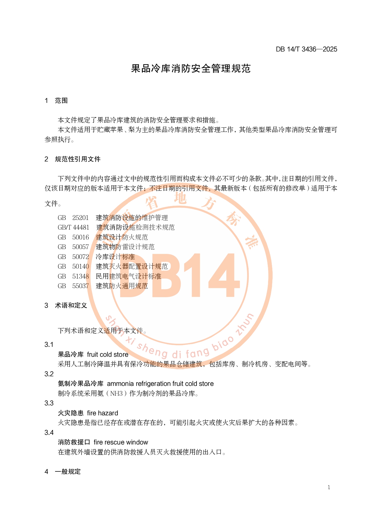 果品冷库消防安全管理规范DB14/T 3436-2025