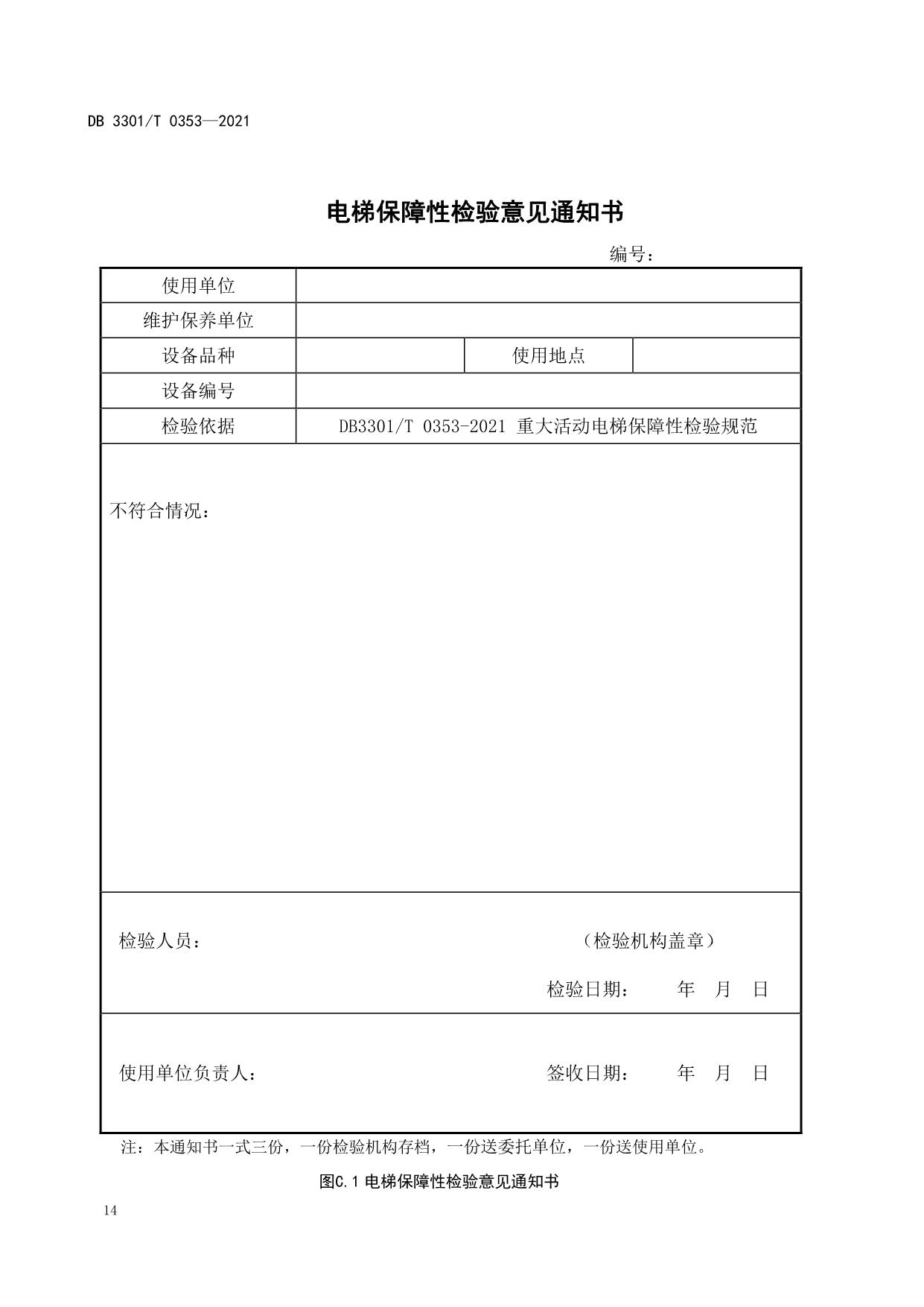 《重大活动电梯保障性检验规范》(DB3301/T 0353—2021)