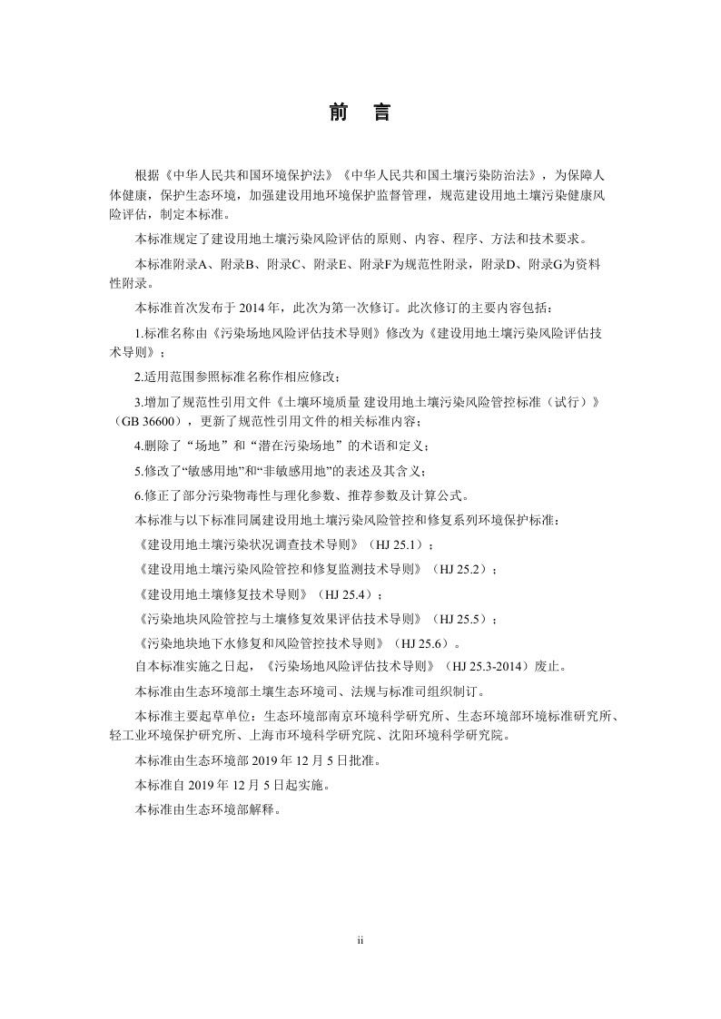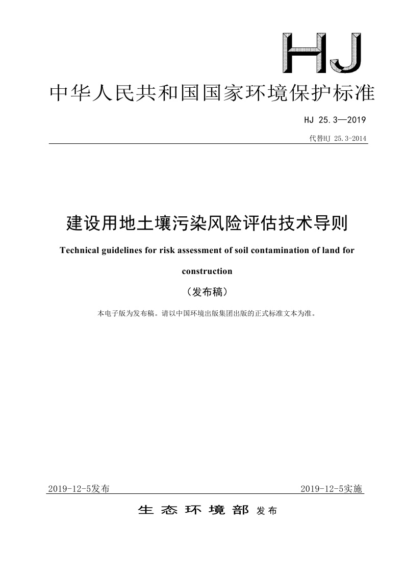 《建设用地土壤污染风险评估技术导则》(HJ 25.3—2019)