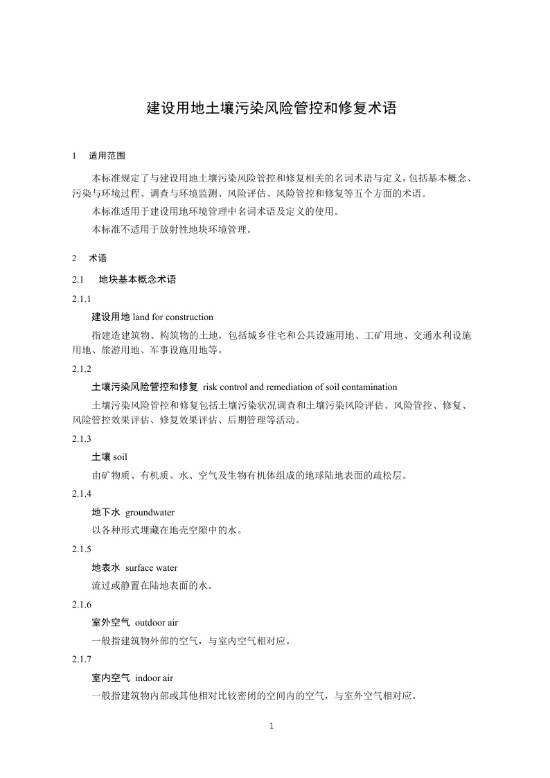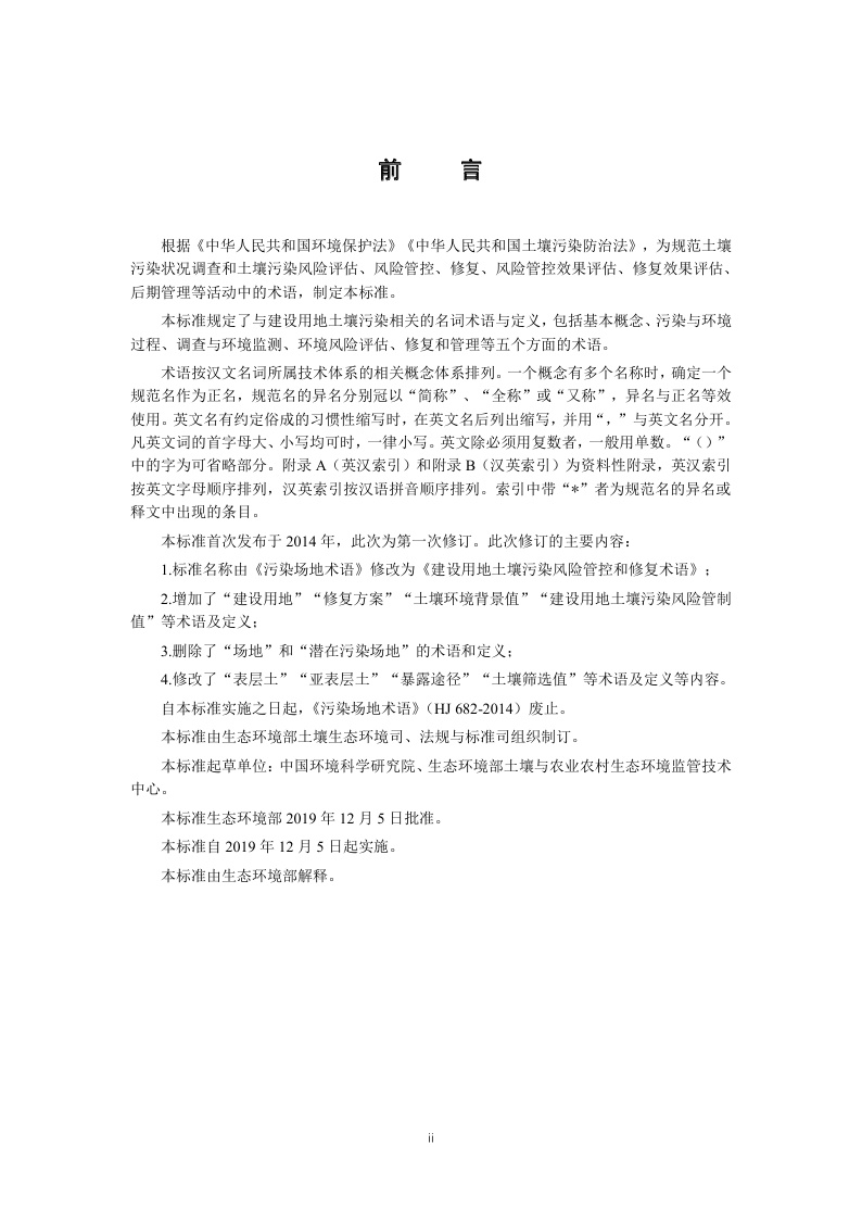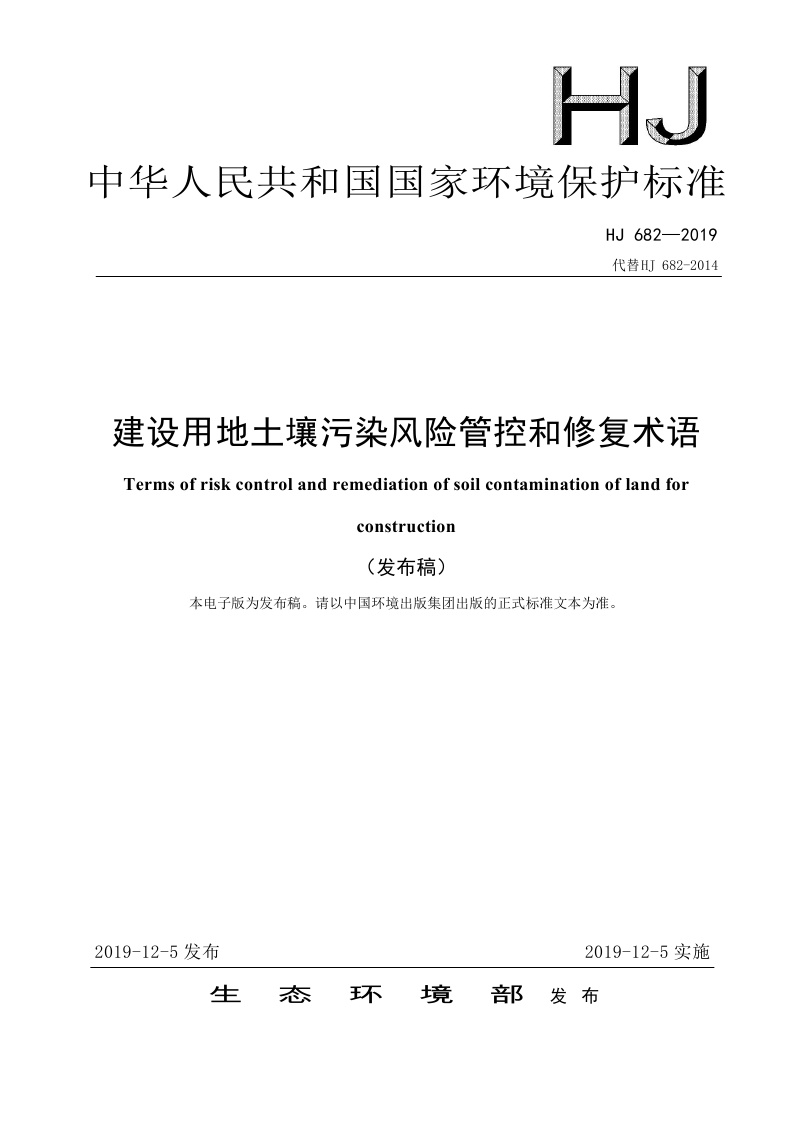 《建设用地土壤污染风险管控和修复术语》(HJ 682—2019)