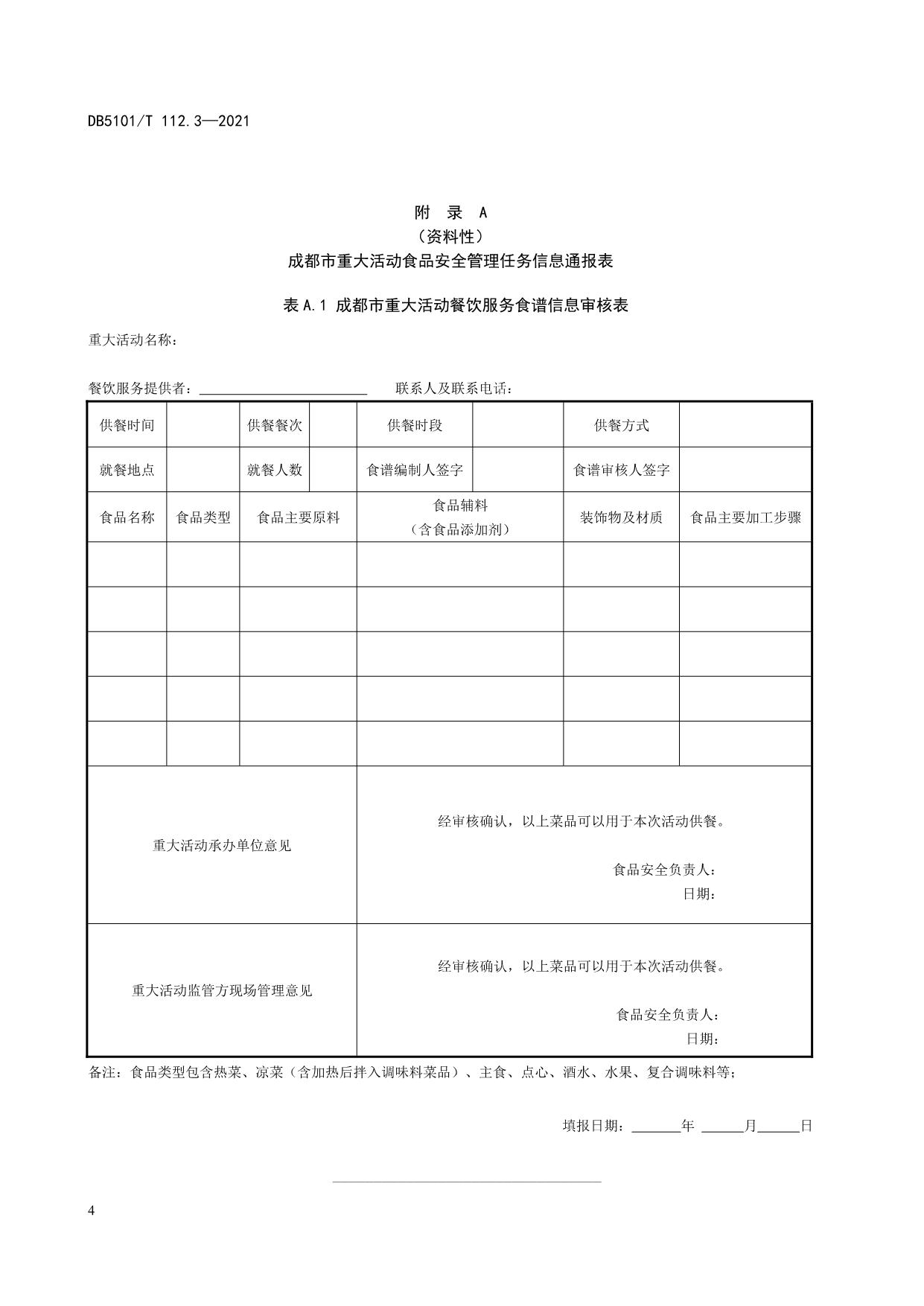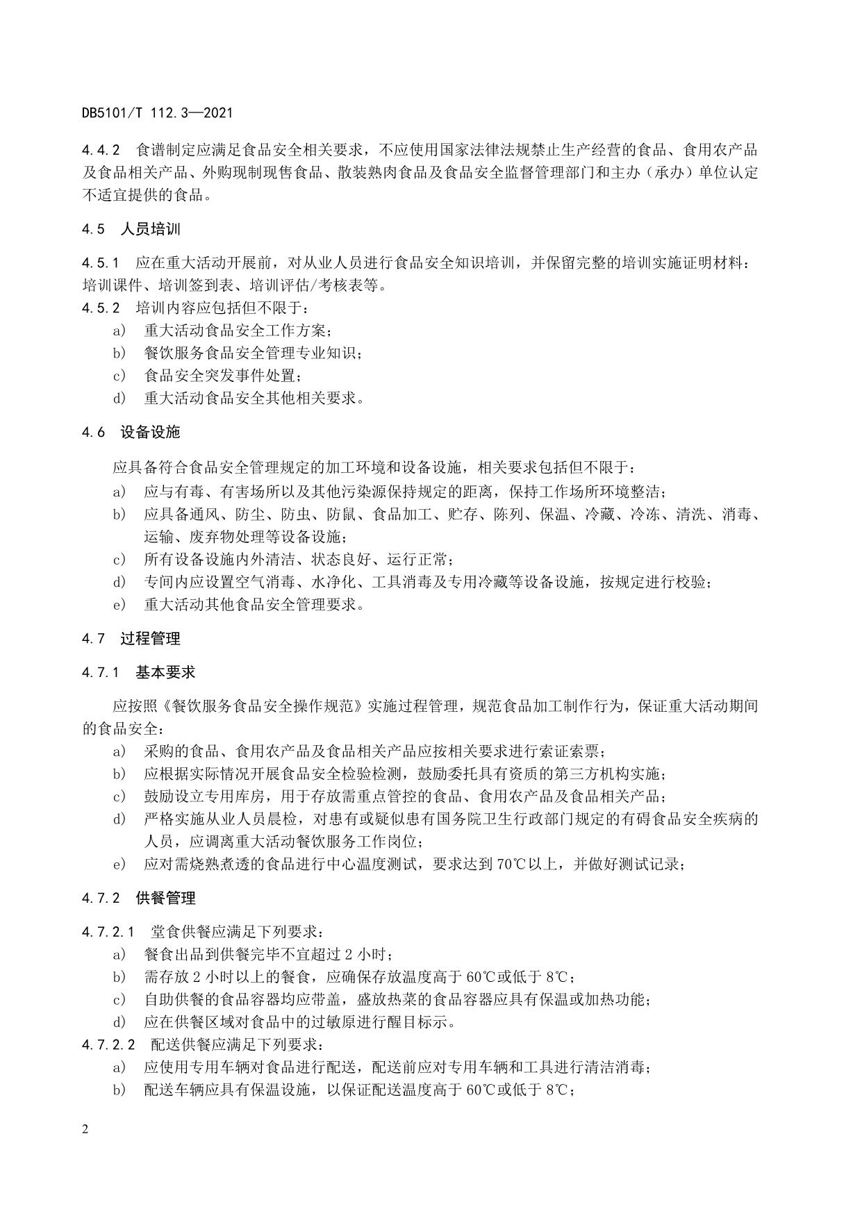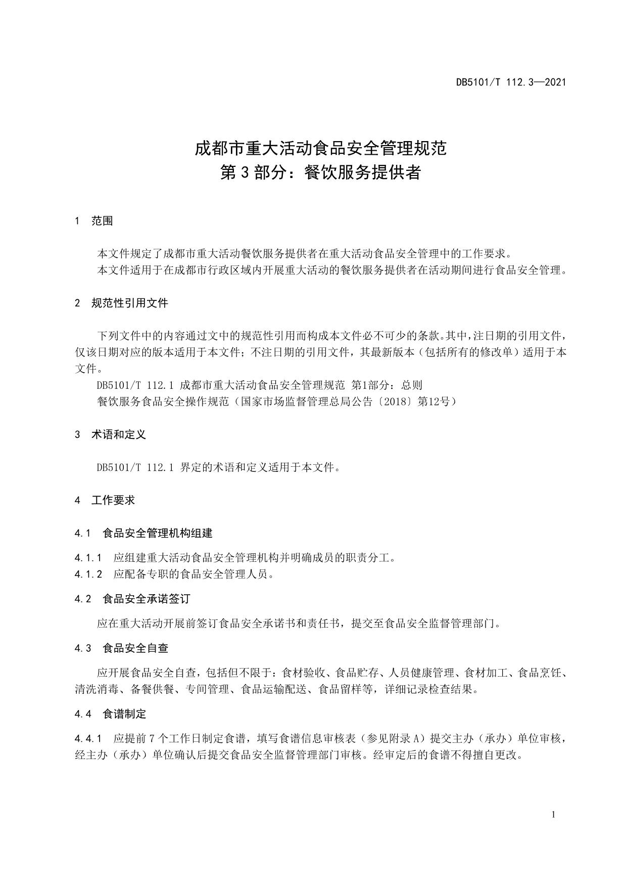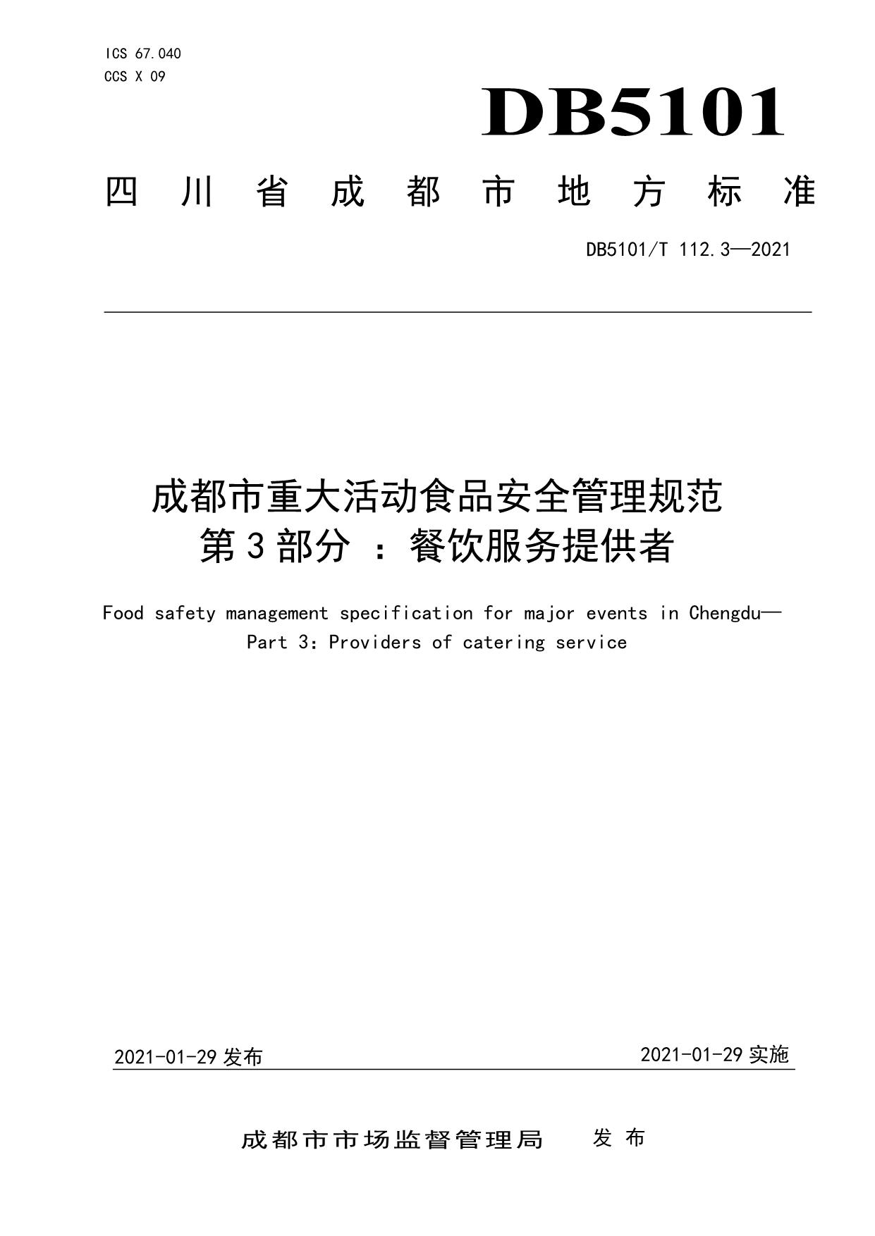 《成都市重大活动食品安全管理规范 第3部分:餐饮服务提供者》(DB5101/T 112.3—2021)