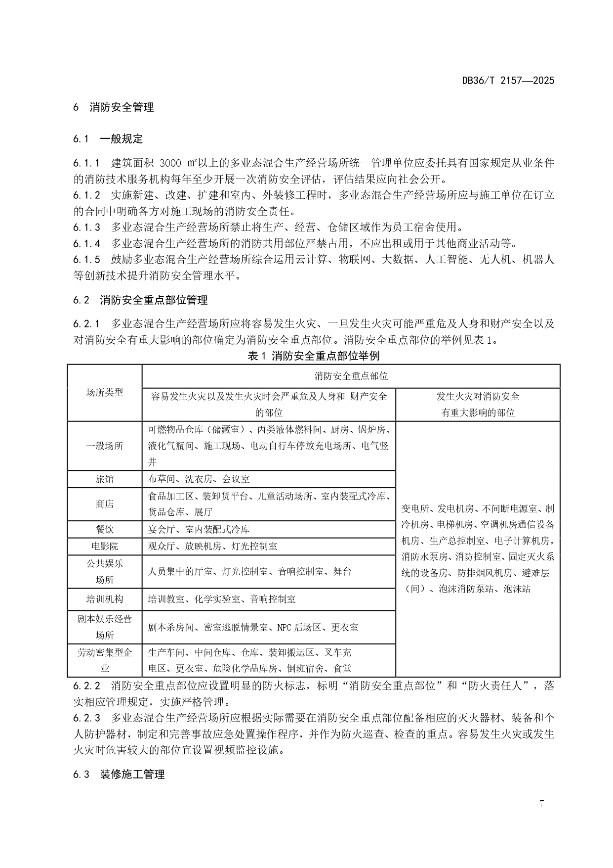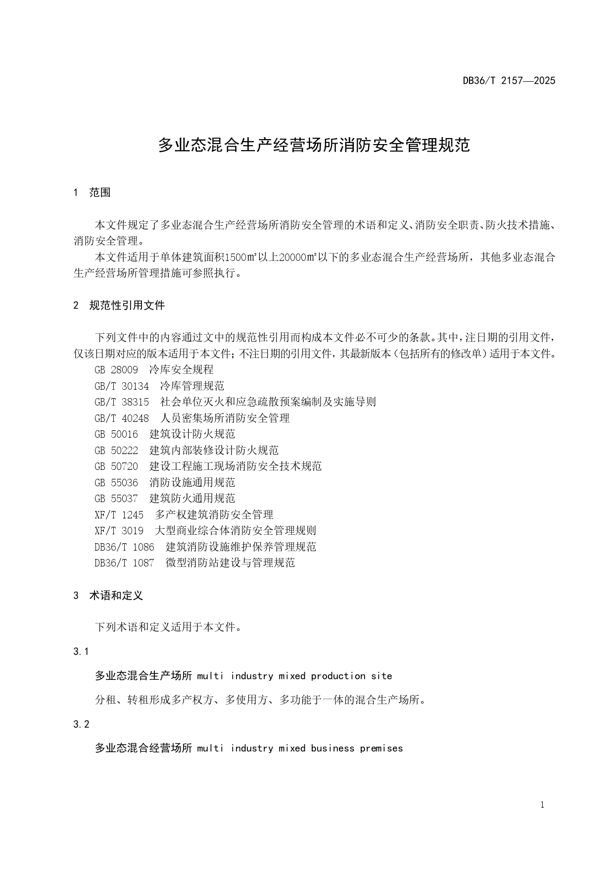 多业态混合生产经营场所消防安全管理规范DB36/T 2157-2025