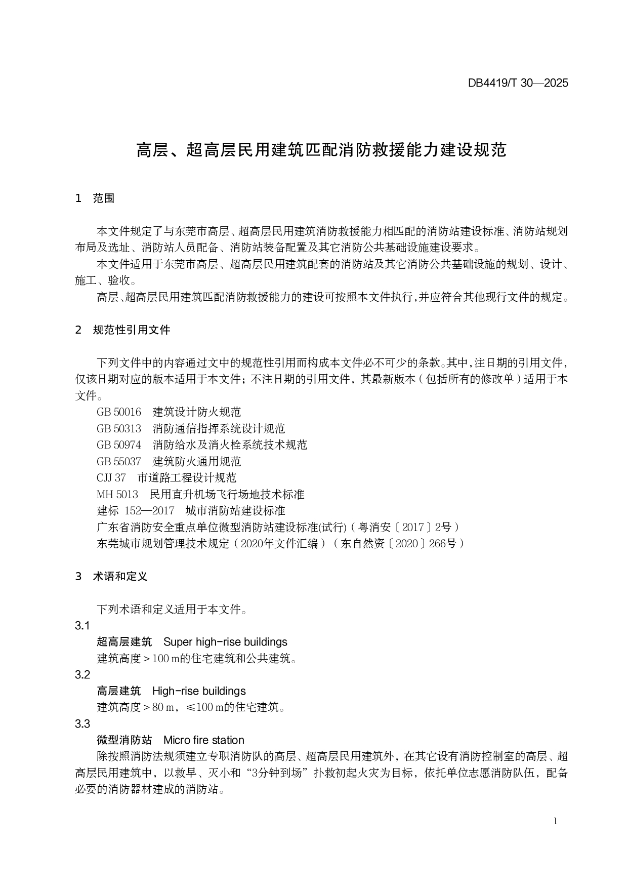 高层、超高层民用建筑匹配消防救援能力建设规范DB4419/T 30—2025