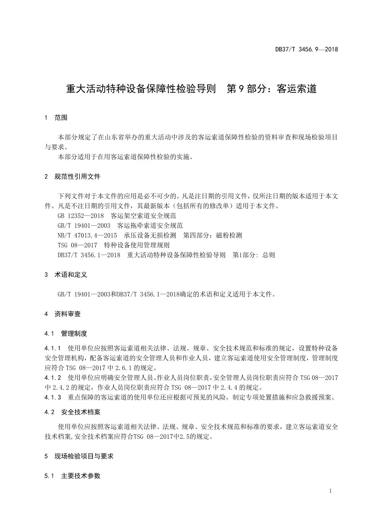 《重大活动特种设备保障性检验导则 第9部分:客运索道》(DB37/T 3456.9-2018)