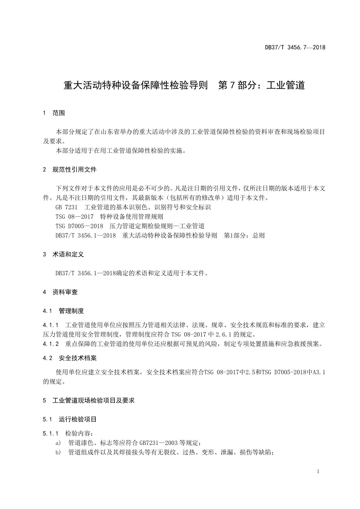 《重大活动特种设备保障性检验导则 第7部分:工业管道》(DB37/T 3456.7-2018)