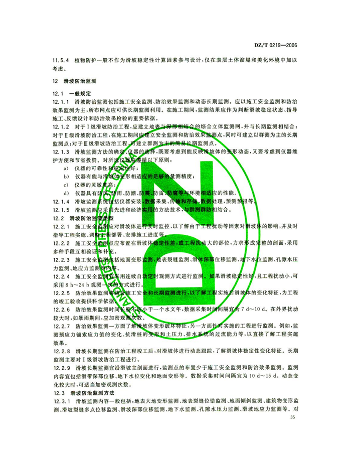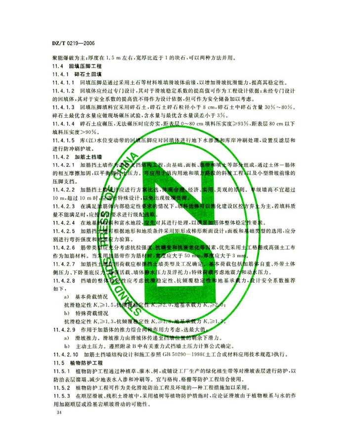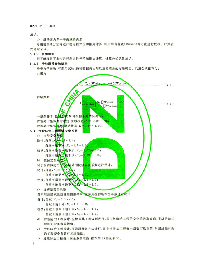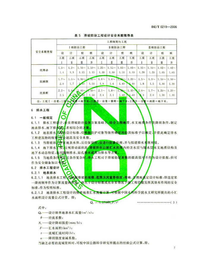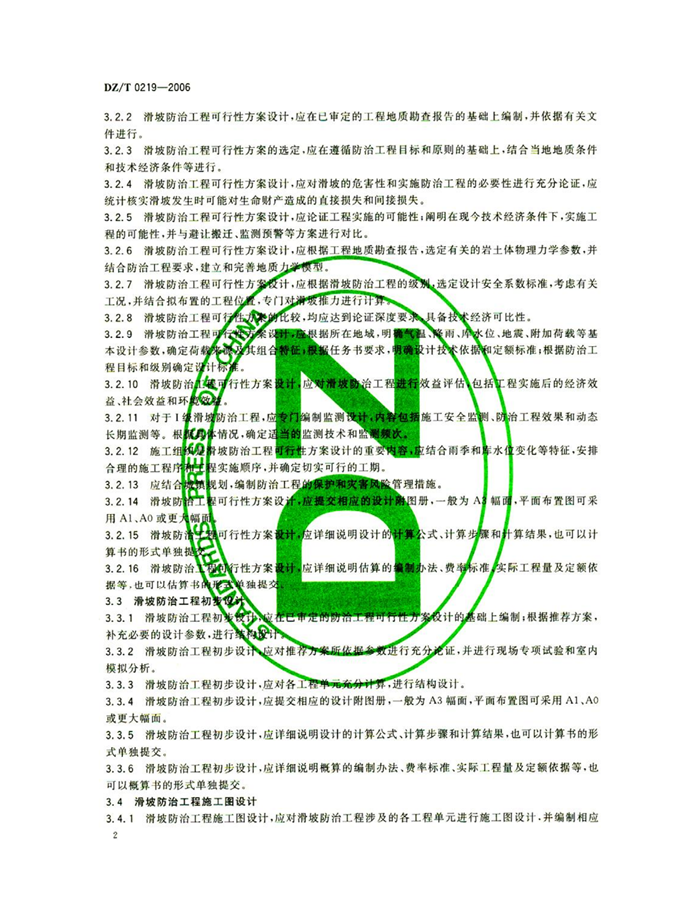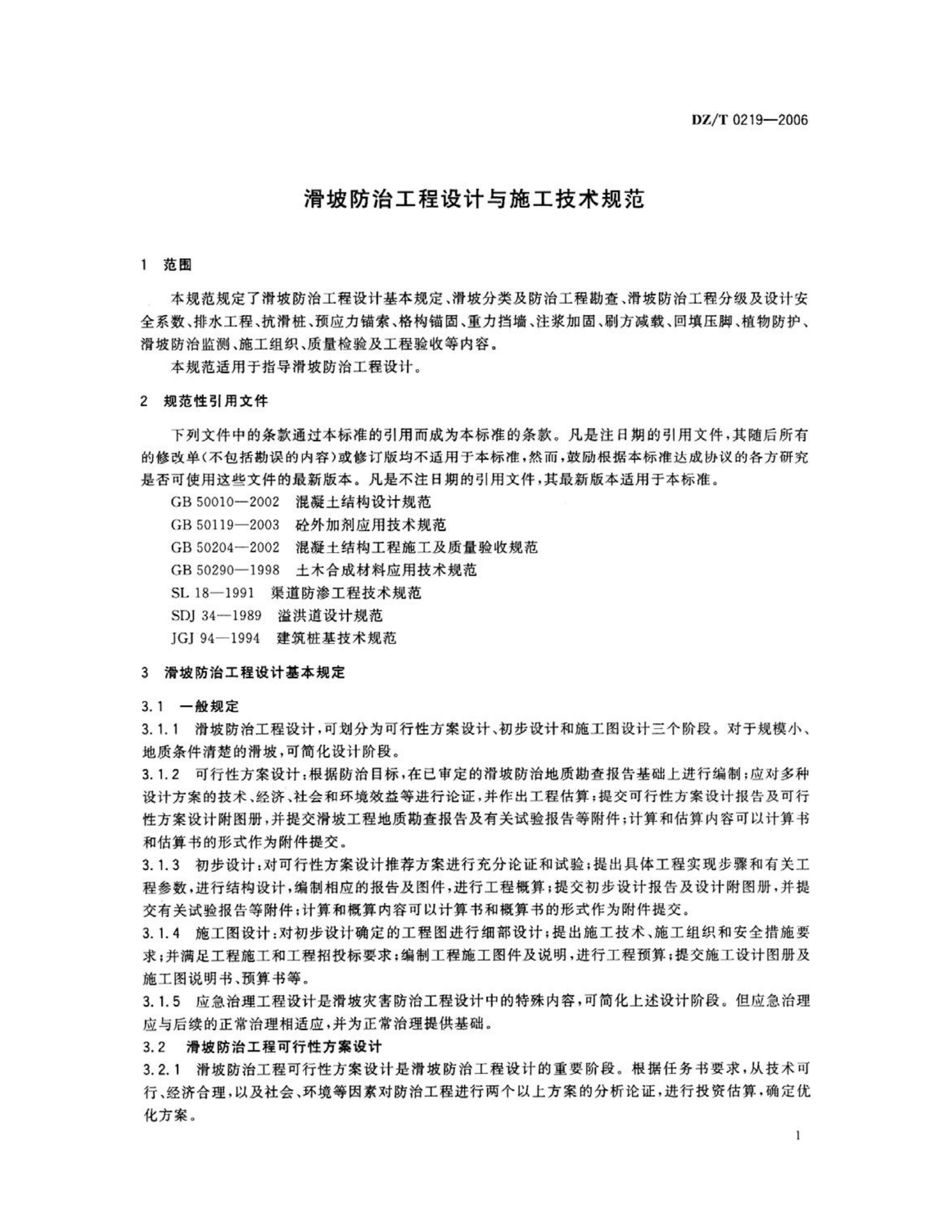 DZ/T0219-2006《滑坡防治工程设计与施工技术规范》