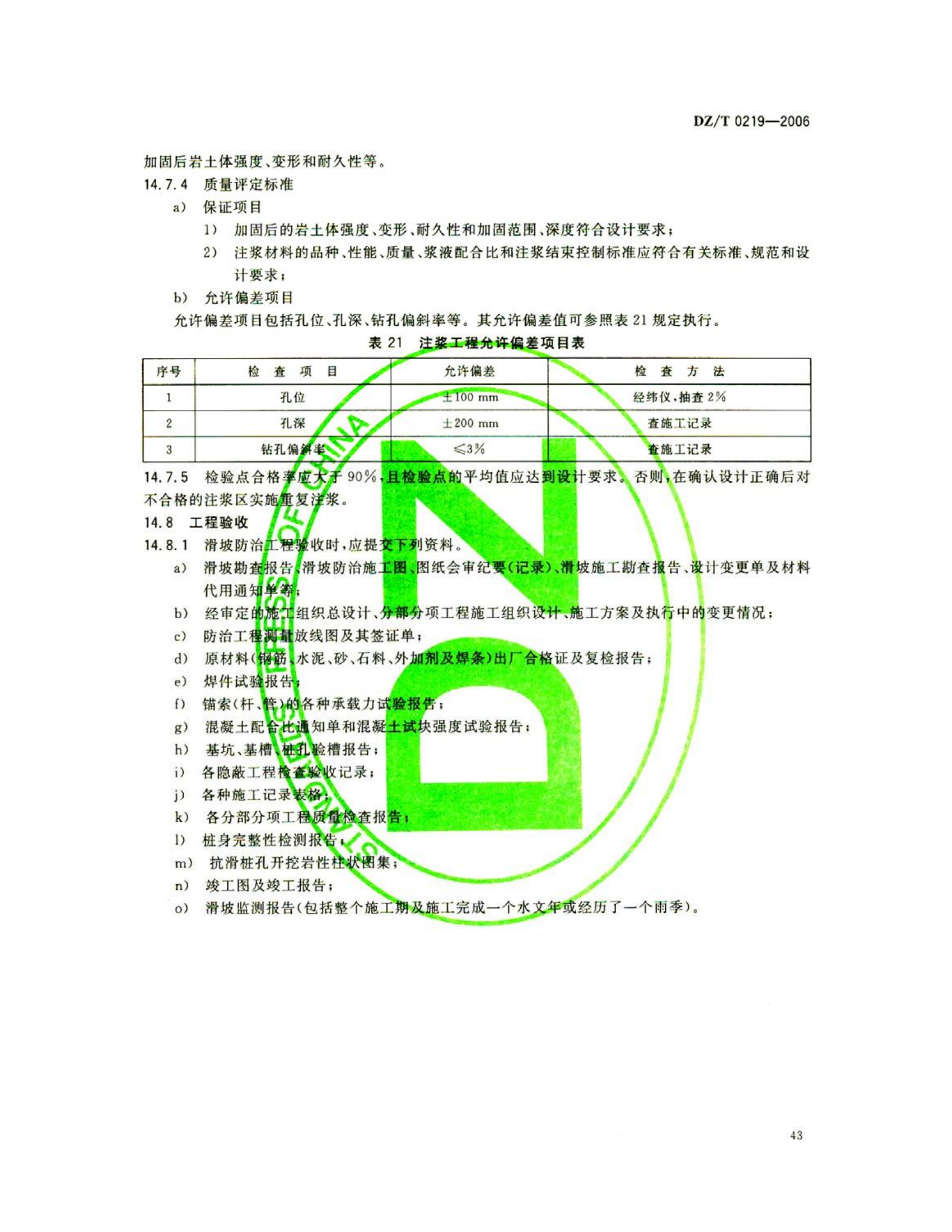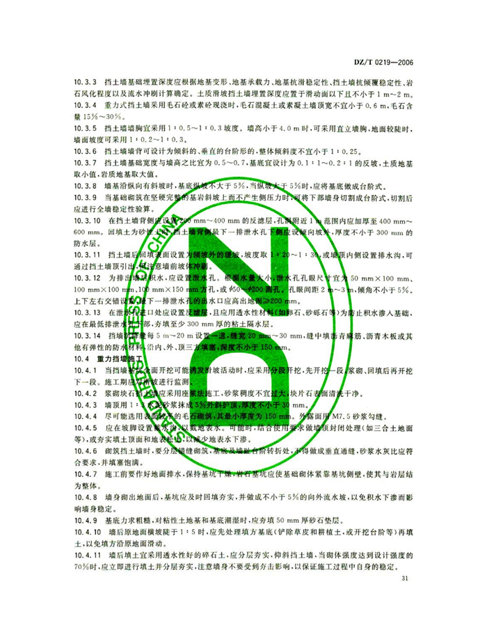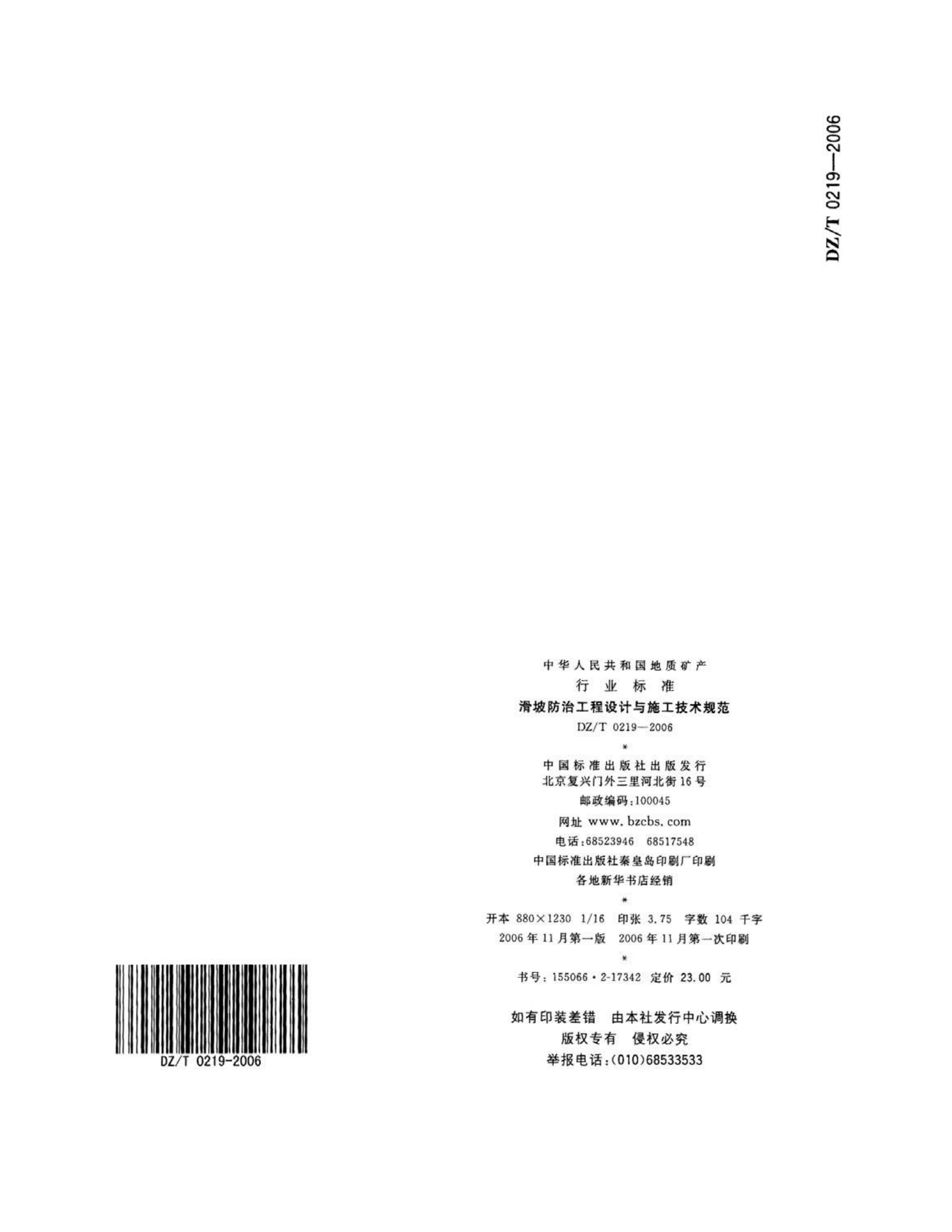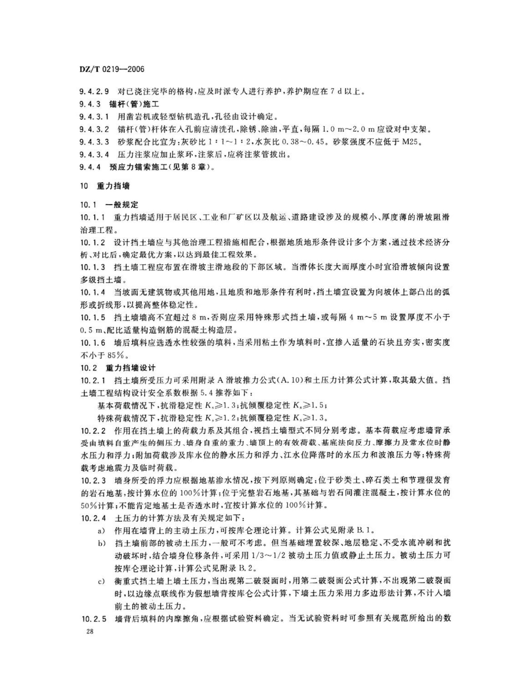 DZ/T0219-2006《滑坡防治工程设计与施工技术规范》