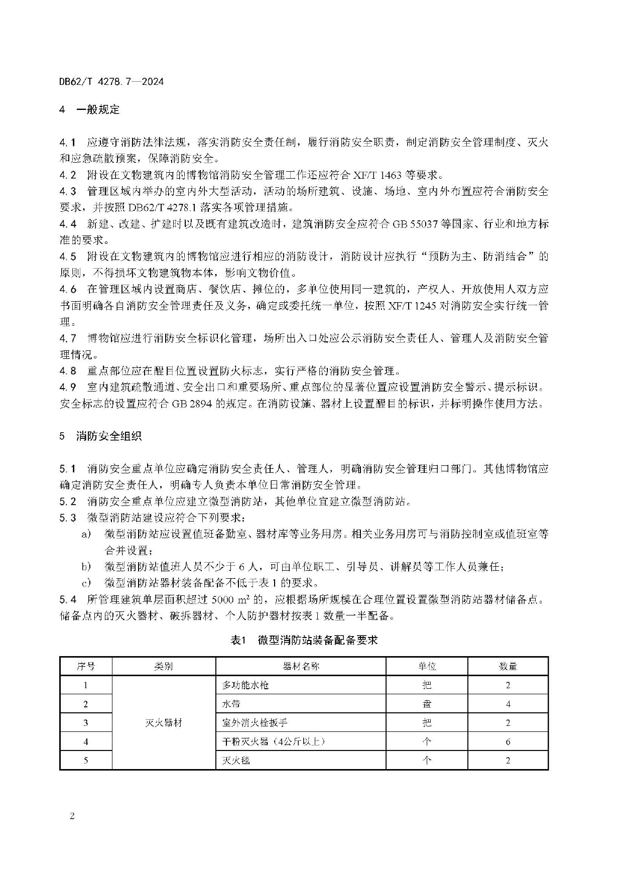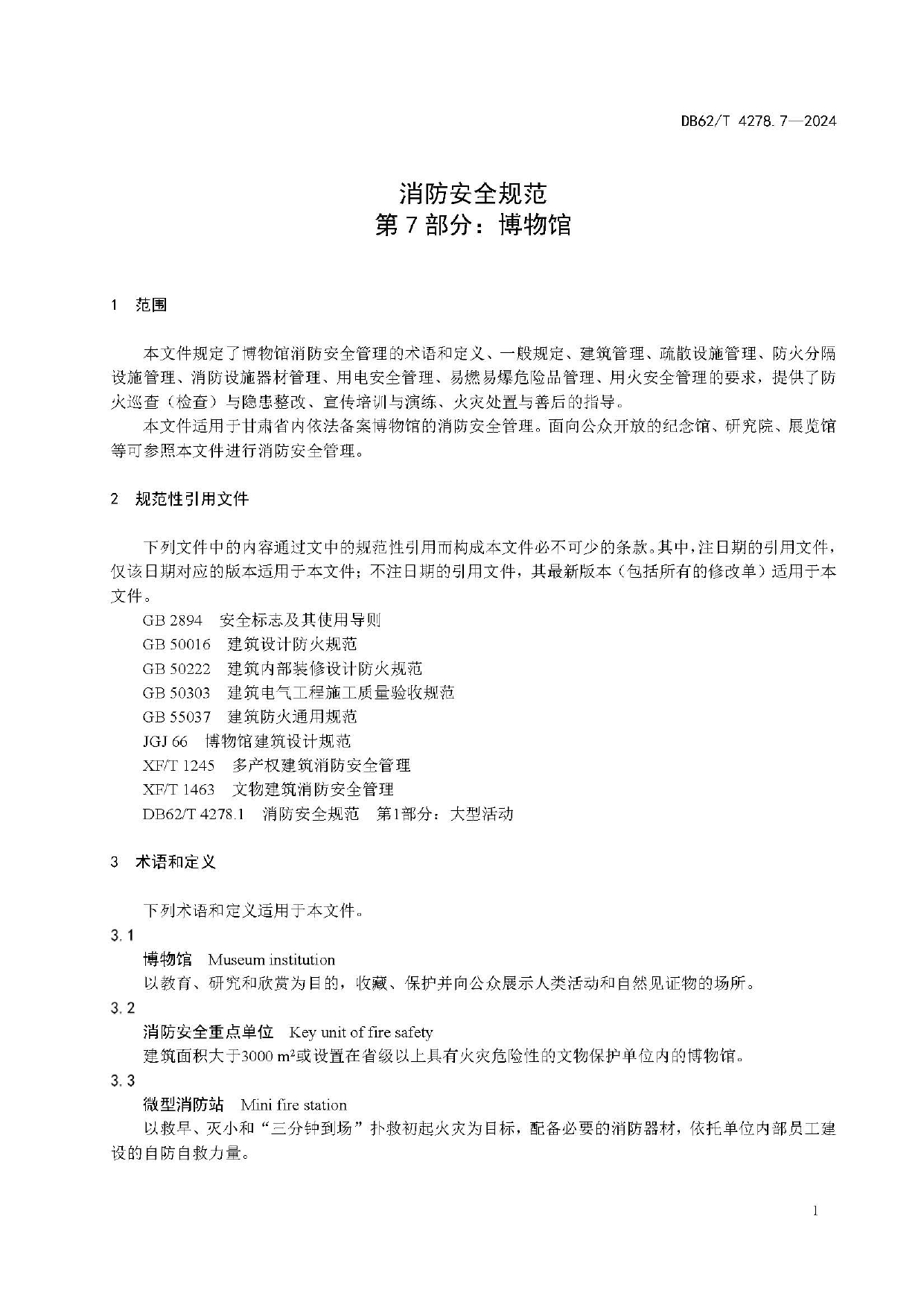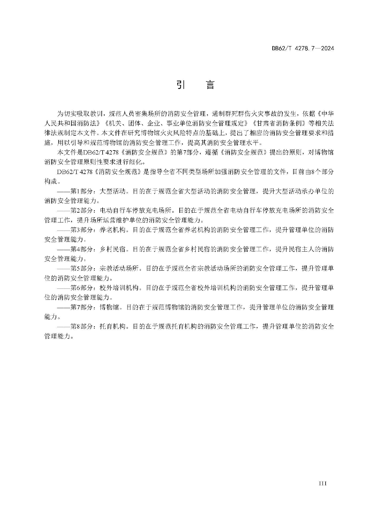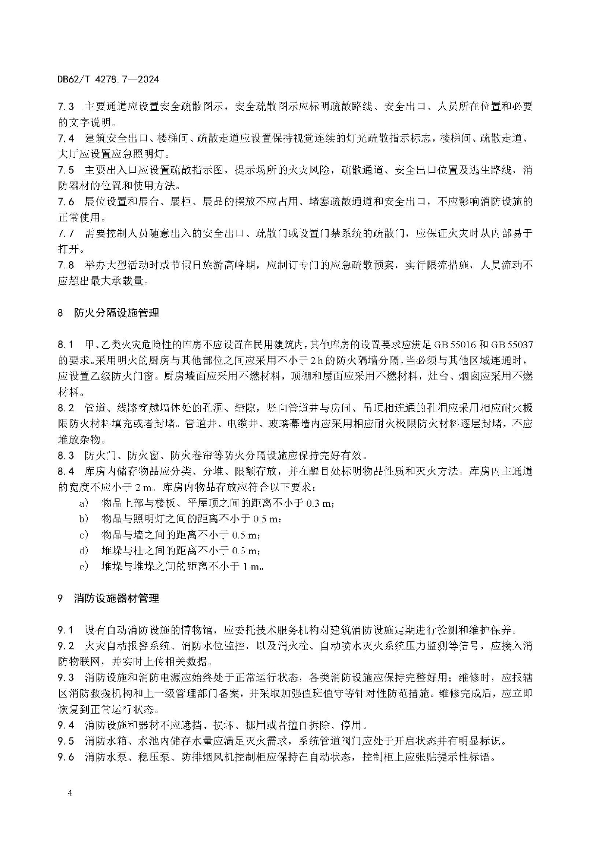 消防安全规范 第7部分:博物馆 DB62/T 4278.7-2024