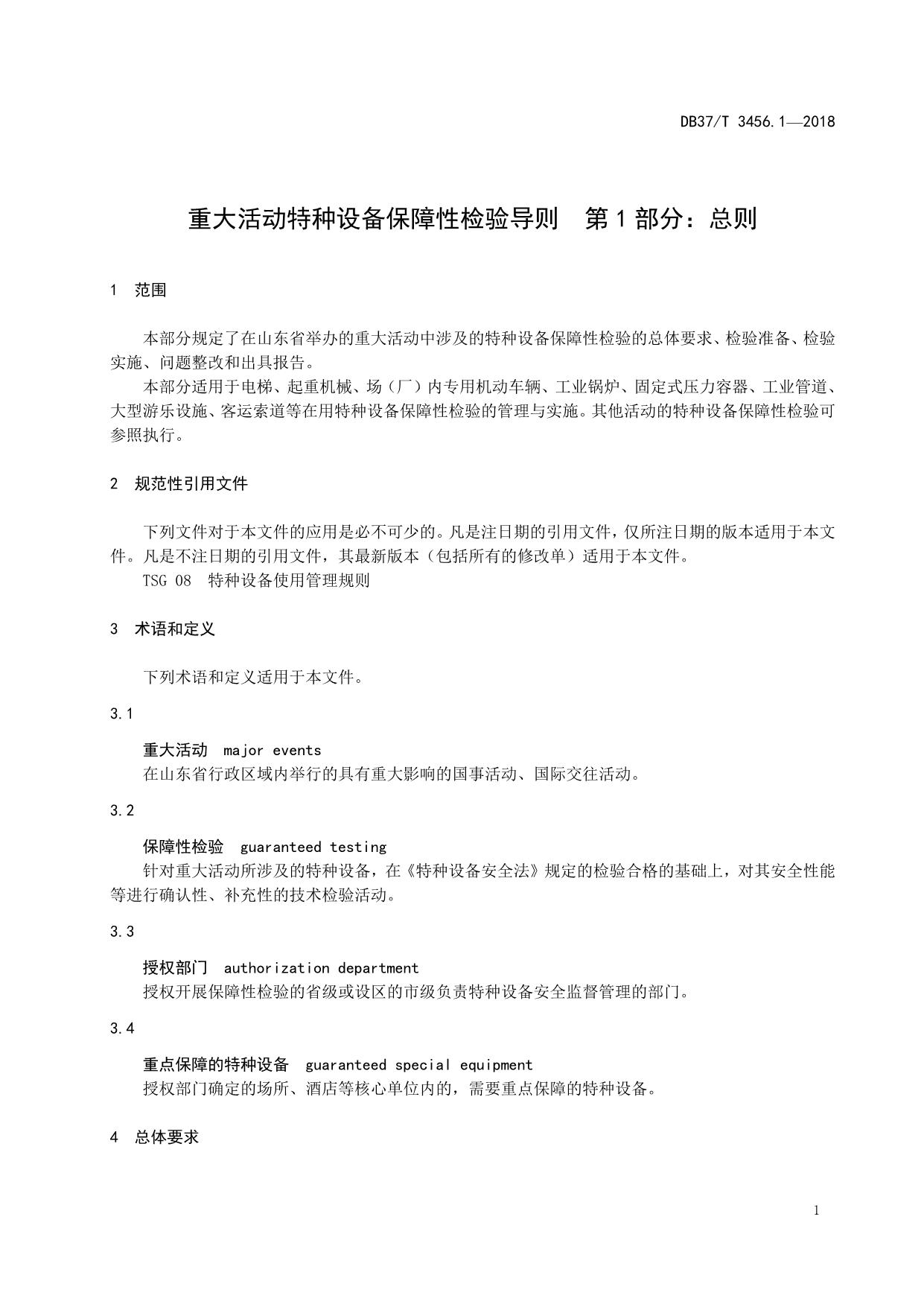 《重大活动特种设备保障性检验导则 第1部分:总则》(DB37/T 3456.1-2018 )
